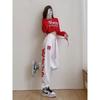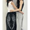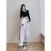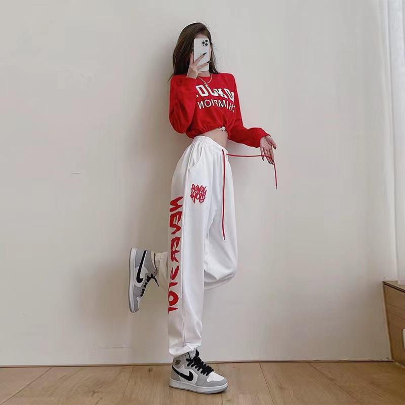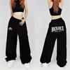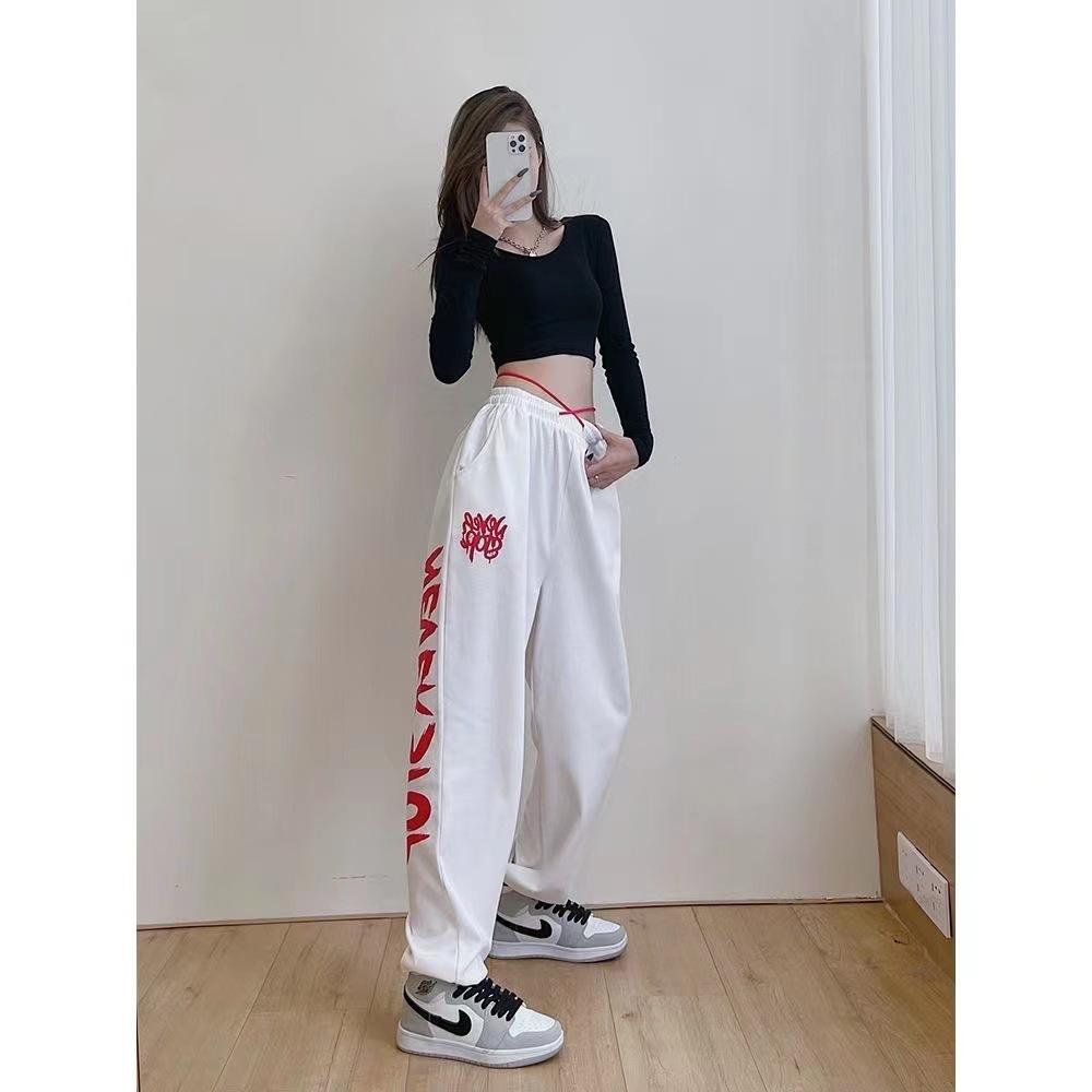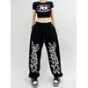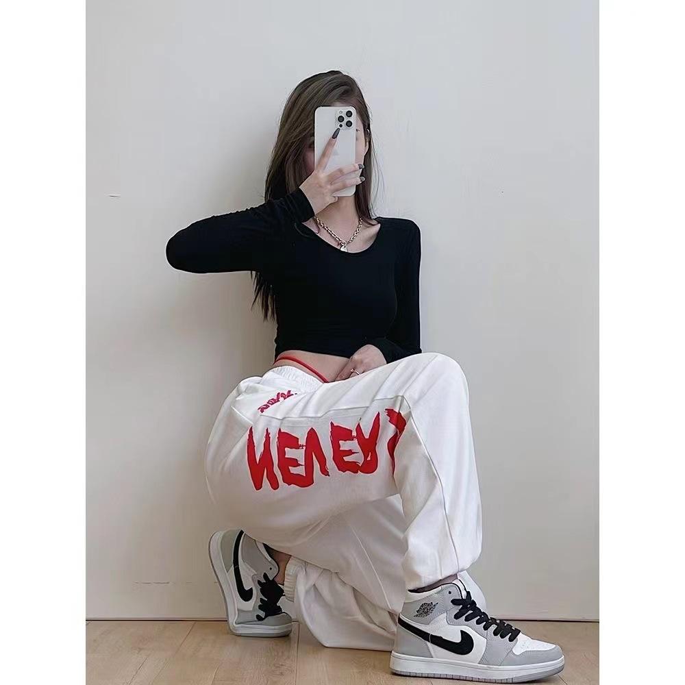 Pantalones deportivos de jazz hip hop para mujer 2023 Verano nuevo sueltos de cintura alta con estampado de letras blancos con tobillo atado moda