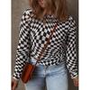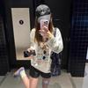 Camiseta de manga larga retro de estilo americano para mujer, camiseta holgada blanca con estampado pintado a mano de otoño de gran tamaño, top de cuello redondo de moda