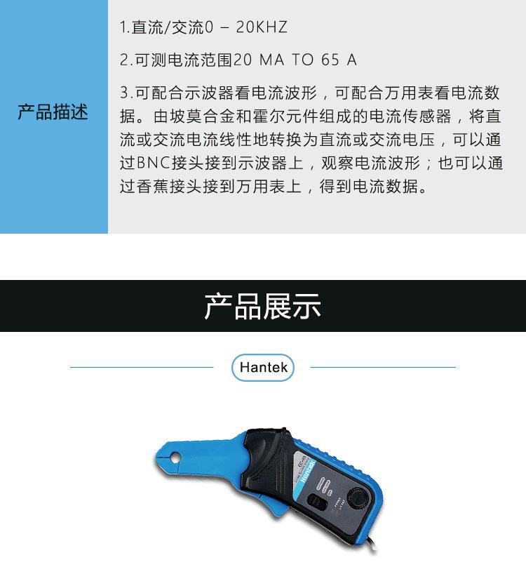 HANTEK CC-65 Pinza de corriente CA y CC Interfaz BNC Osciloscopio Amperímetro universal 65A20KHZ