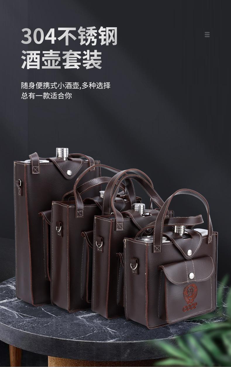 Venta al por mayor nuevo juego de regalo de petaca de acero inoxidable 304 para exteriores petaca de cuero portátil comercial portátil petaca