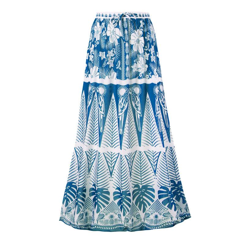 Nuevo traje de baño de bikini de tres piezas con abertura retro francés para mujer, estilo europeo y americano, con falda de malla y hombros descubiertos.