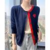 Cárdigan para mujer estilo coreano nuevo otoño e invierno 2025 con bordado de corazón, cuello redondo, tejido simple, manga larga, chaqueta de punto, top