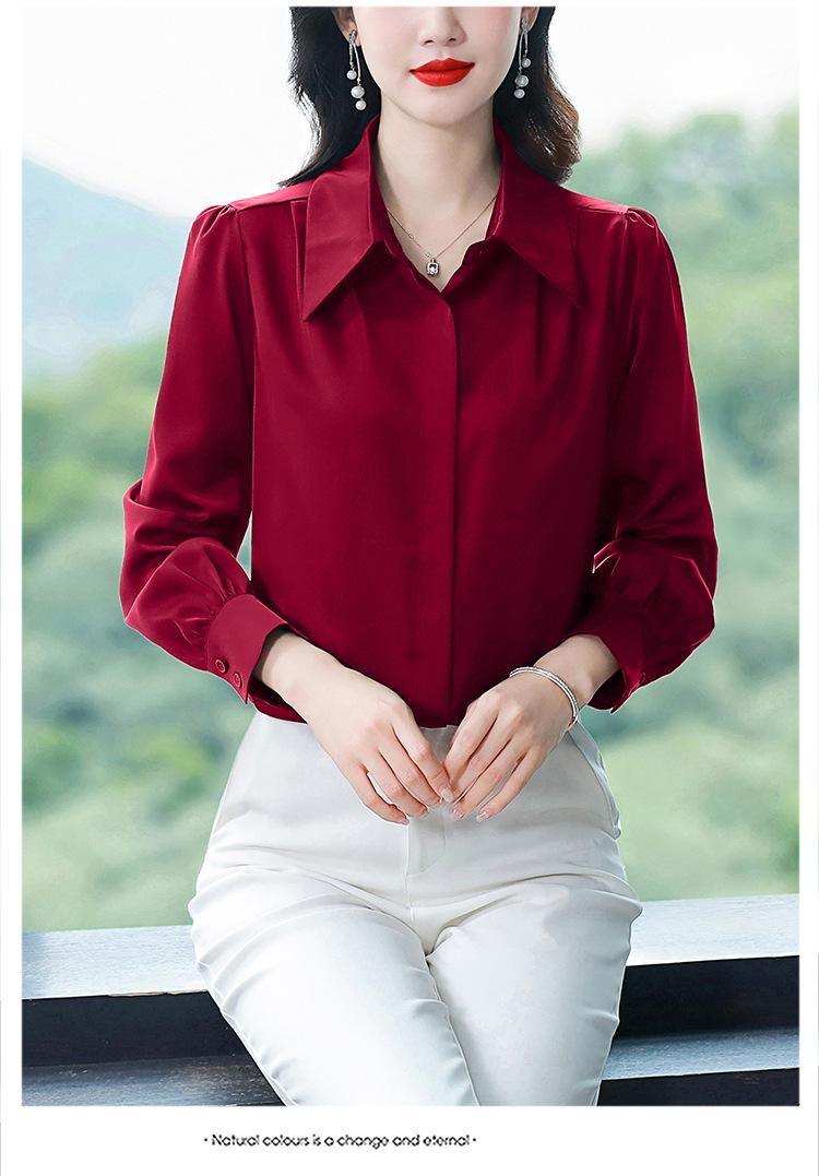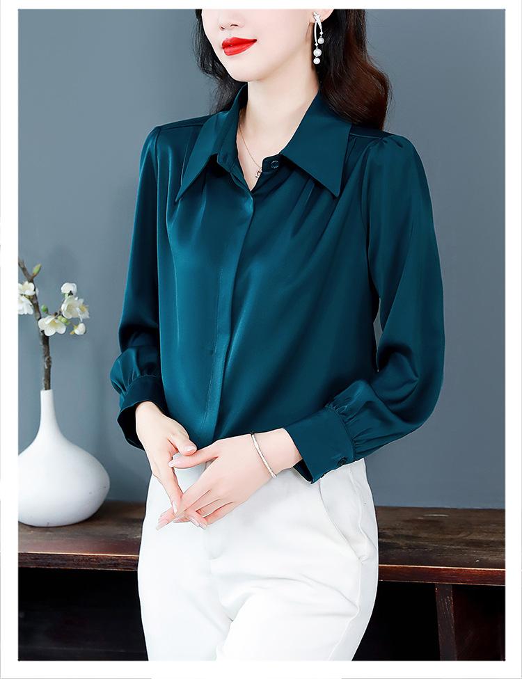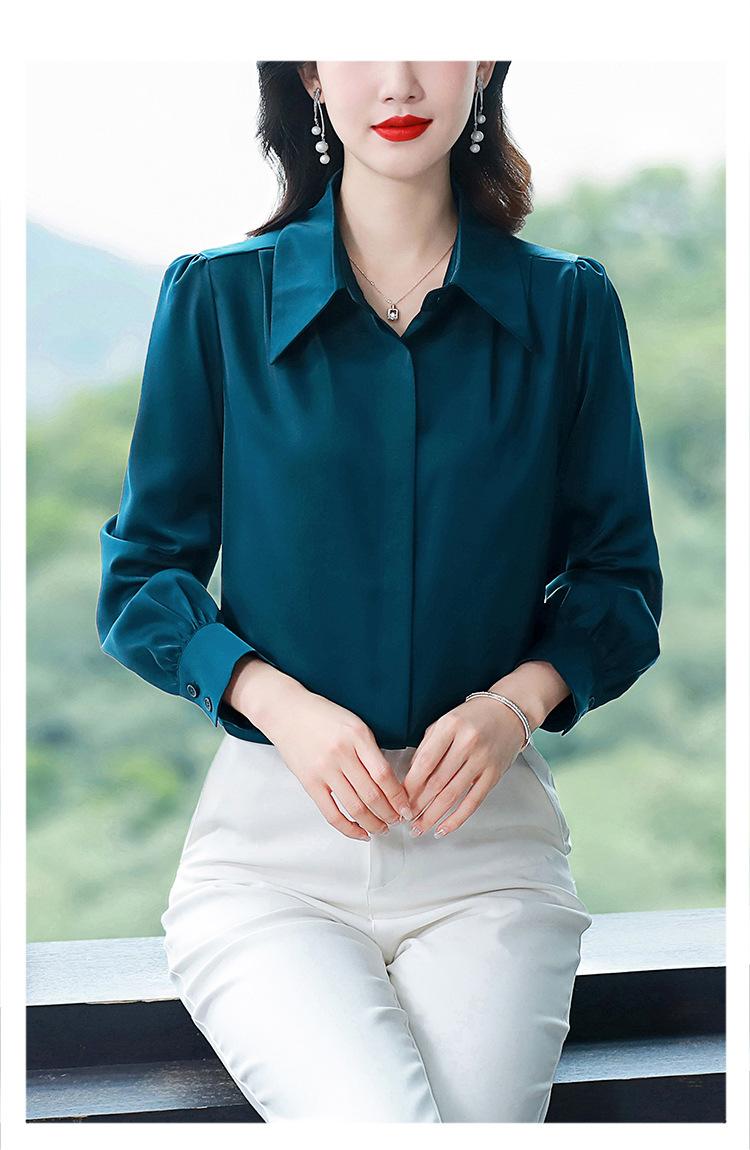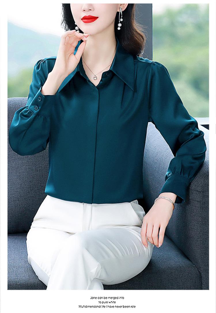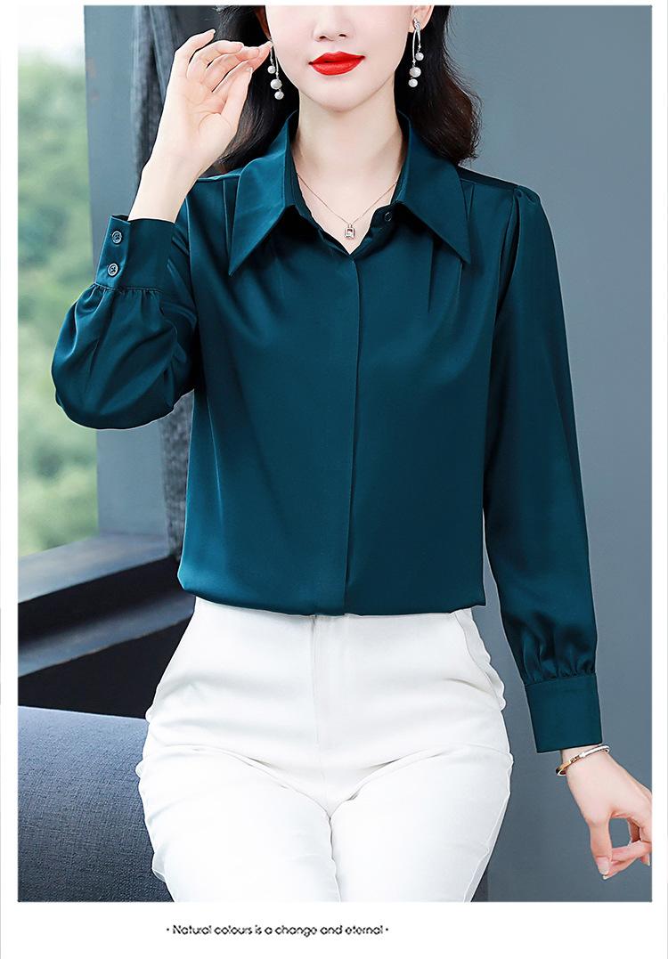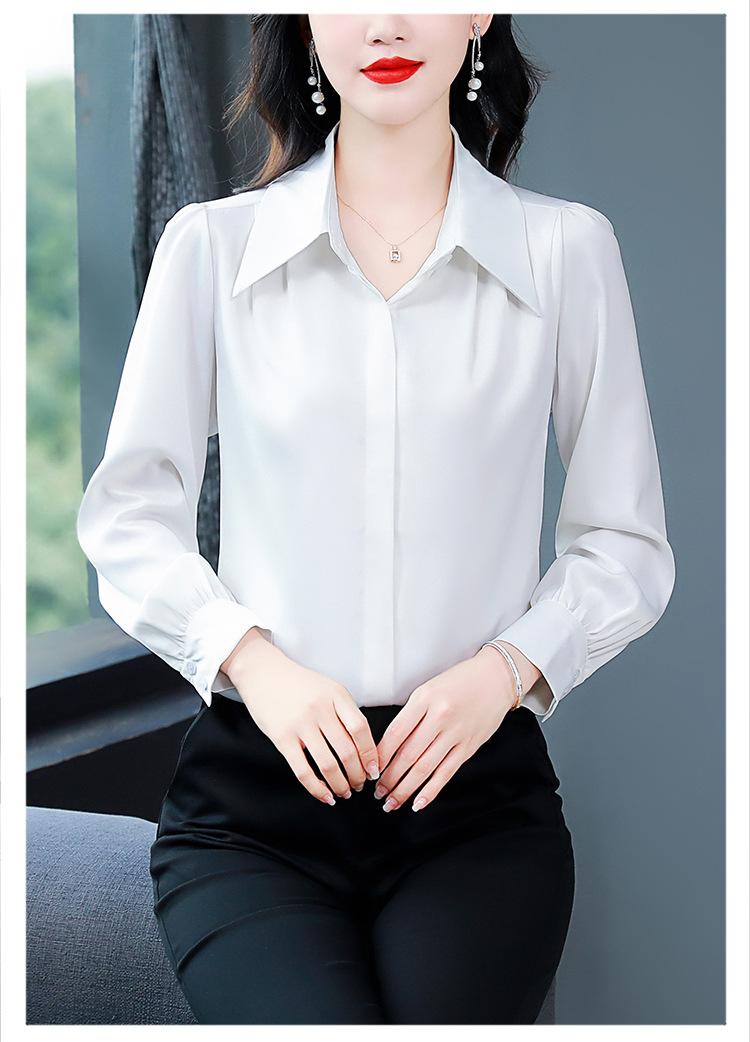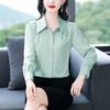 Camisa de seda de marca para mujer, blusa de manga larga de seda morera, estilo nuevo de primavera 2025, elegante camisa de color liso para mujer.