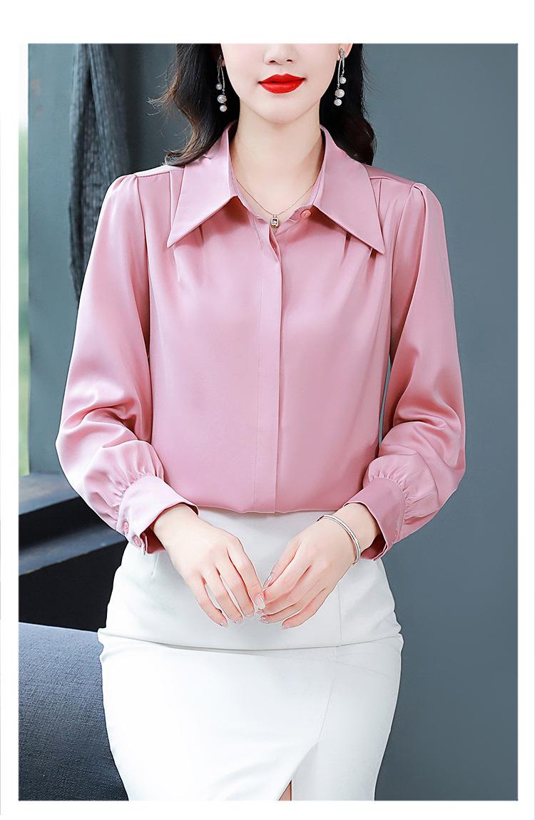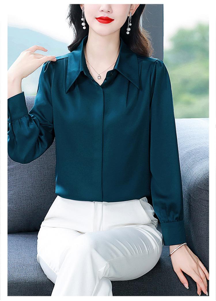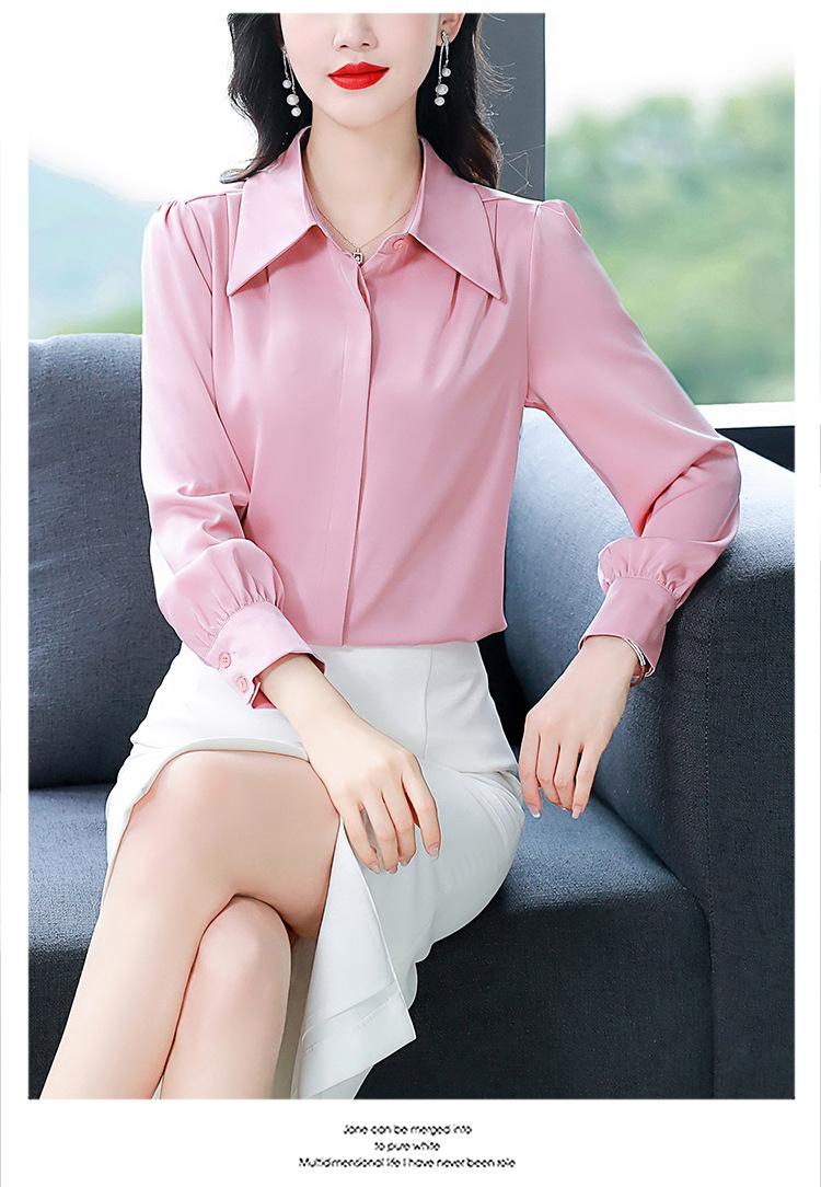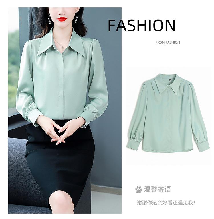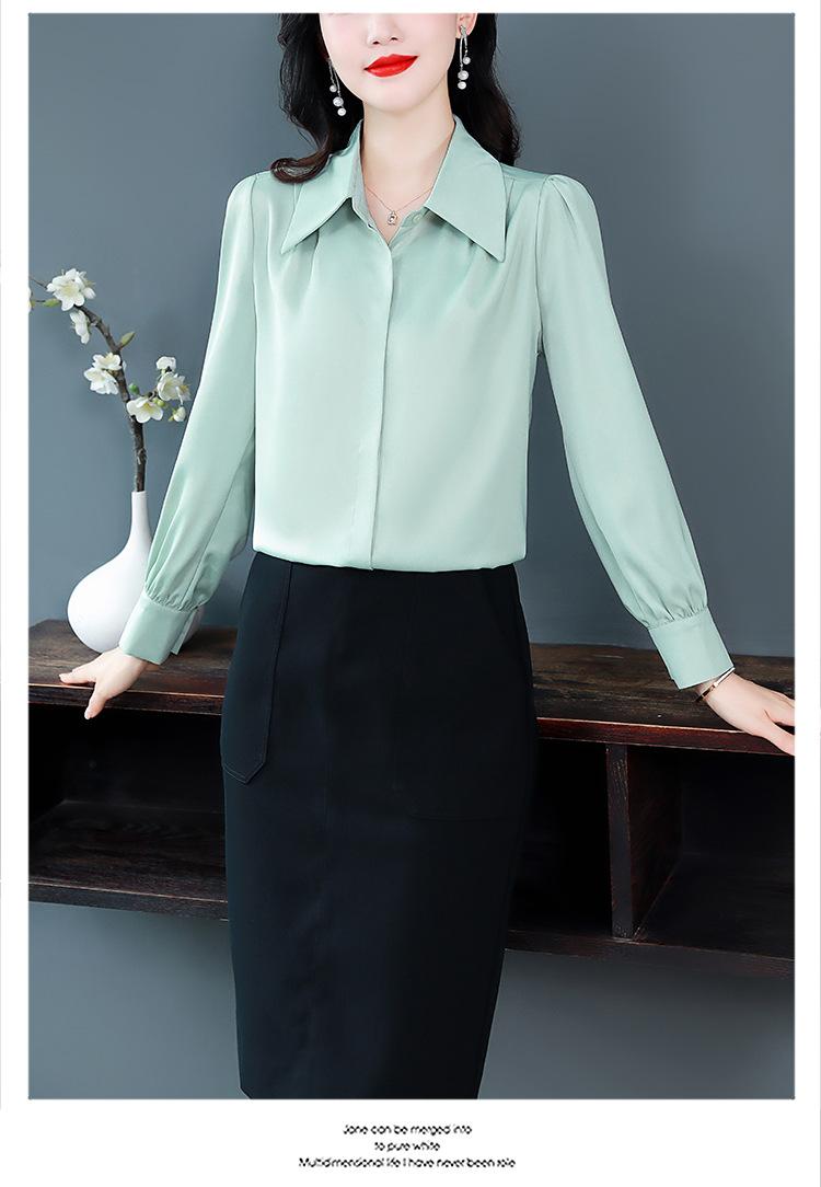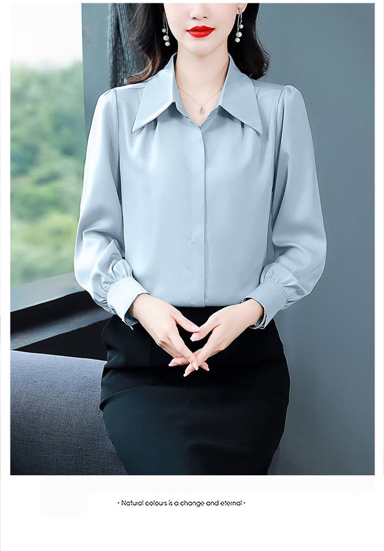 Camisa de seda de marca para mujer, blusa de manga larga de seda morera, estilo nuevo de primavera 2025, elegante camisa de color liso para mujer.