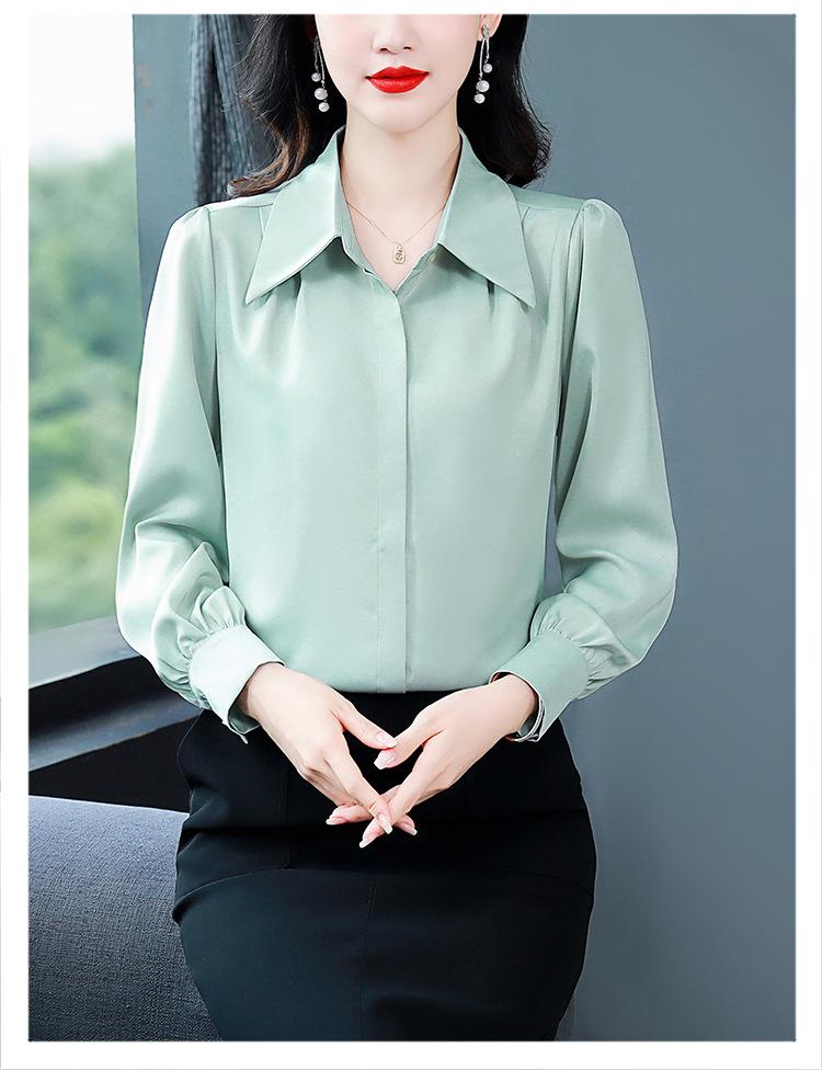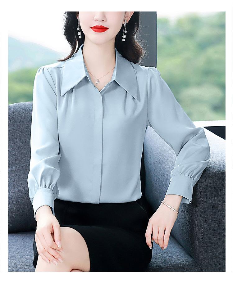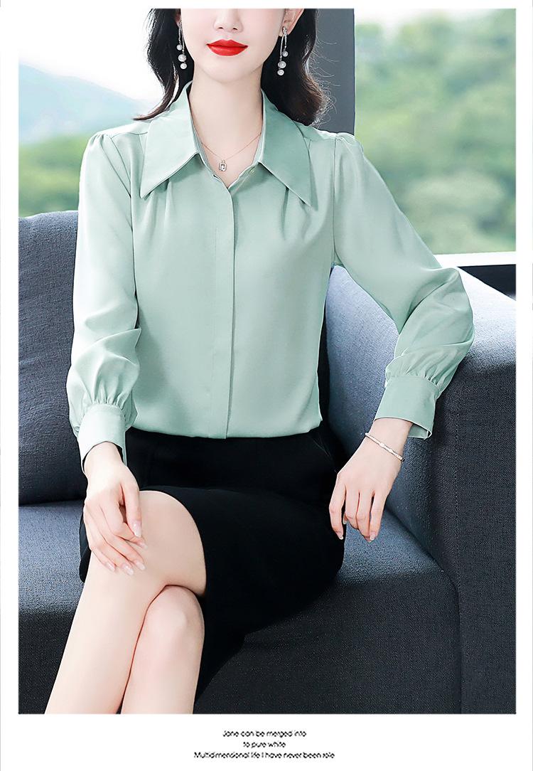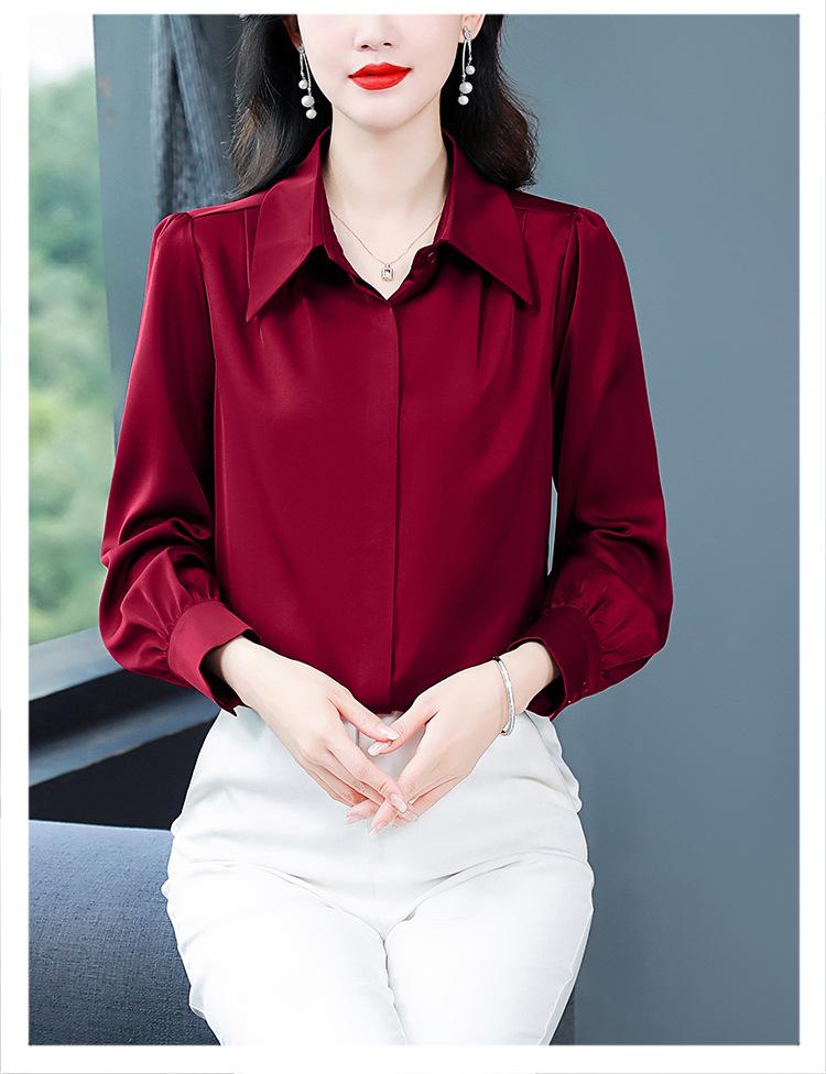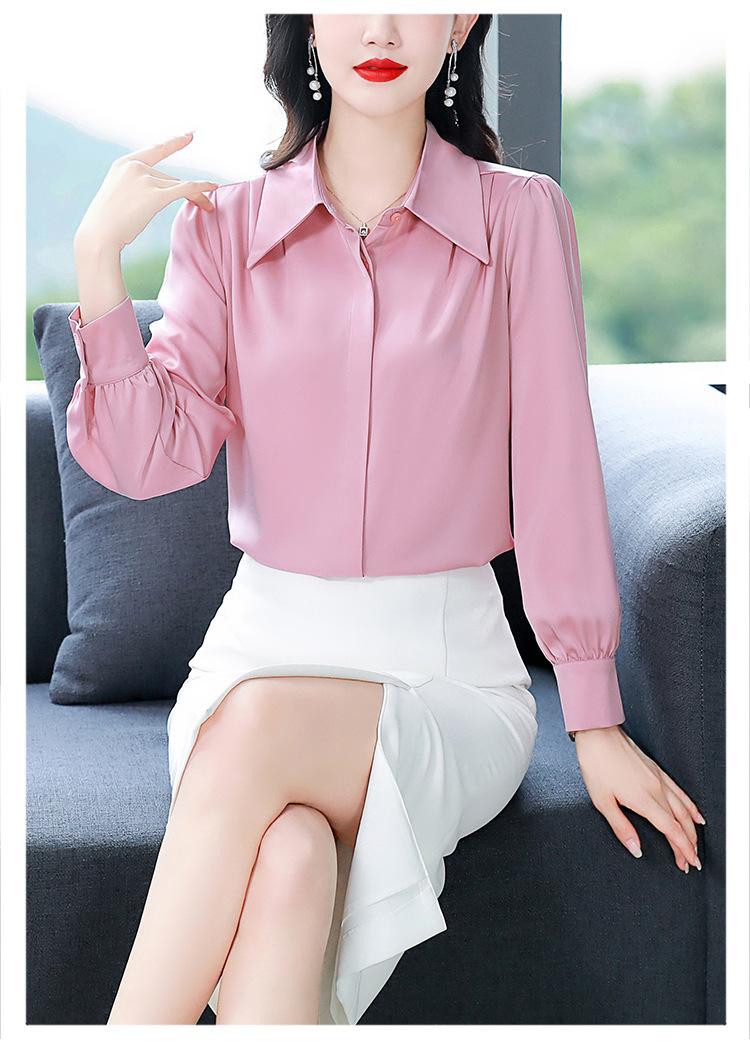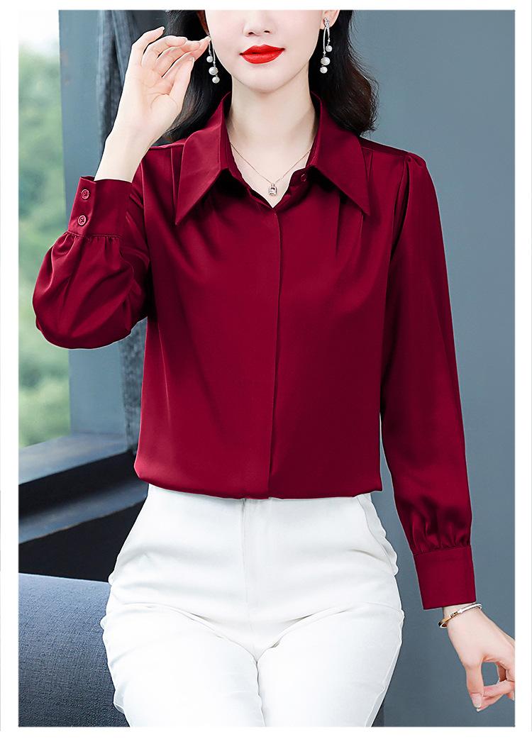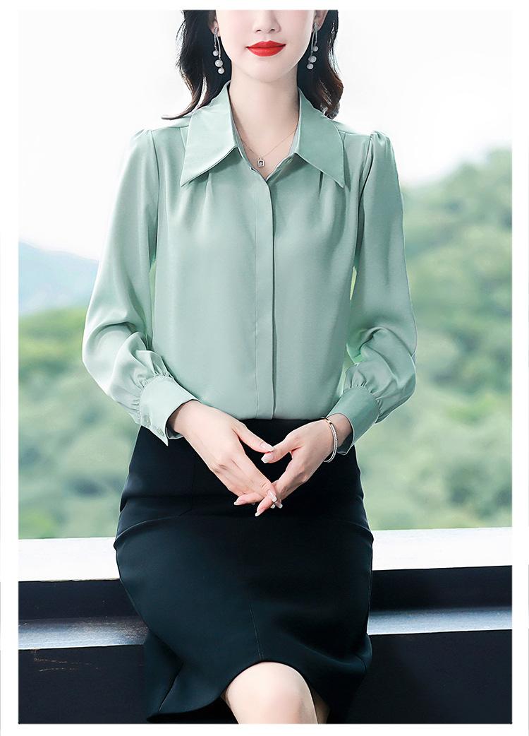 Camisa de seda de marca para mujer, blusa de manga larga de seda morera, estilo nuevo de primavera 2025, elegante camisa de color liso para mujer.