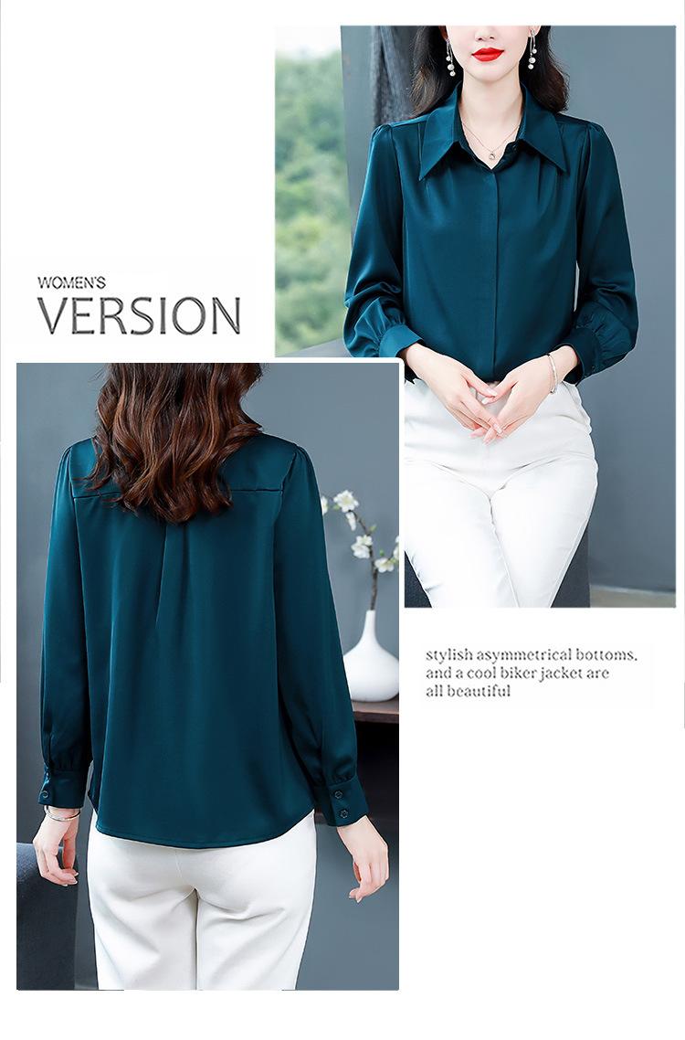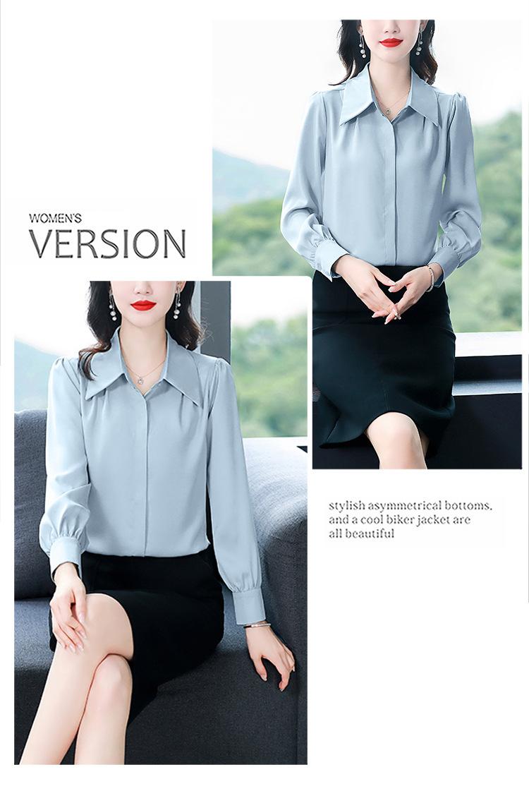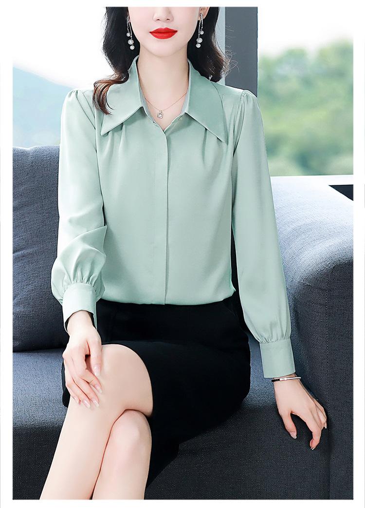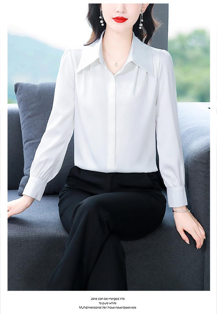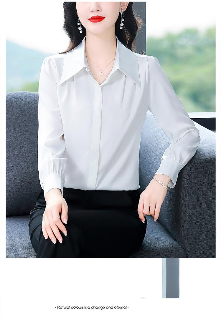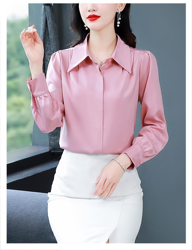 Camisa de seda de marca para mujer, blusa de manga larga de seda morera, estilo nuevo de primavera 2025, elegante camisa de color liso para mujer.