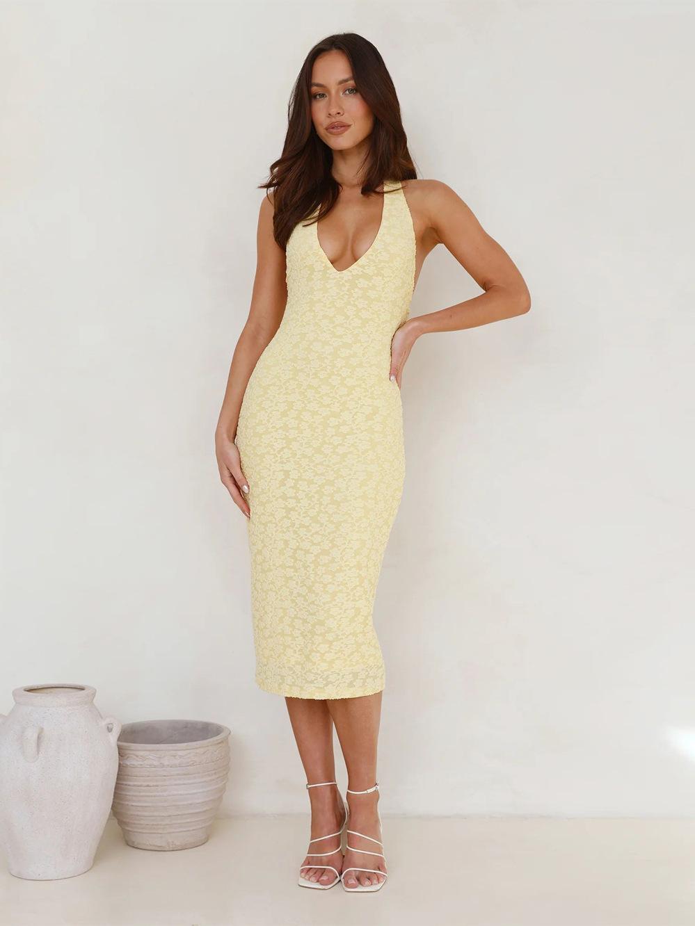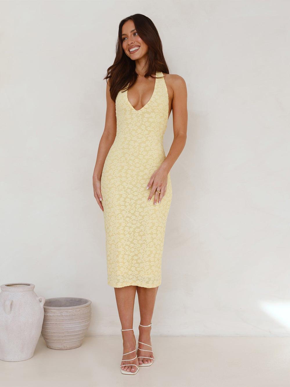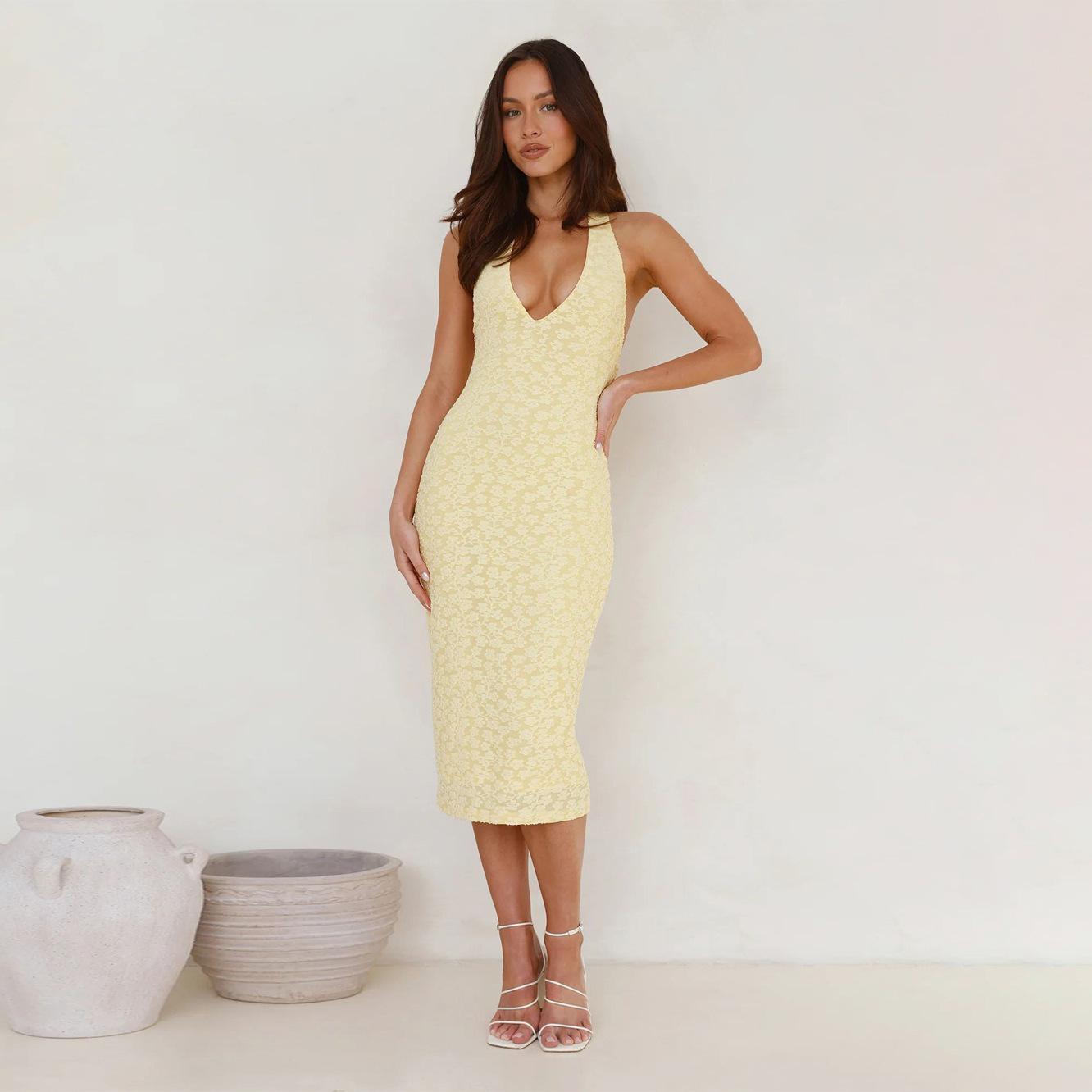 Comercio Exterior Nuevo 2025 Transfronterizo Caliente Ropa de Mujer Francés Entallado Cintura Alta Cuello en V Sin Espalda Elegante Vestido Sexy Mujeres