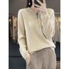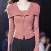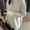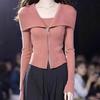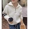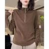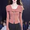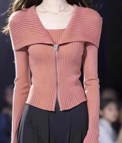 Suéter de solapa con cremallera para otoño e invierno de 2024, camisa de punto con parte inferior, diseño interior para mujer, top de manga larga ajustado súper bonito