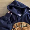 Suéter holgado con forro polar de estilo coreano para mujer, otoño e invierno 2023, nuevo top con capucha fina de primavera y otoño de gran tamaño en azul oscuro