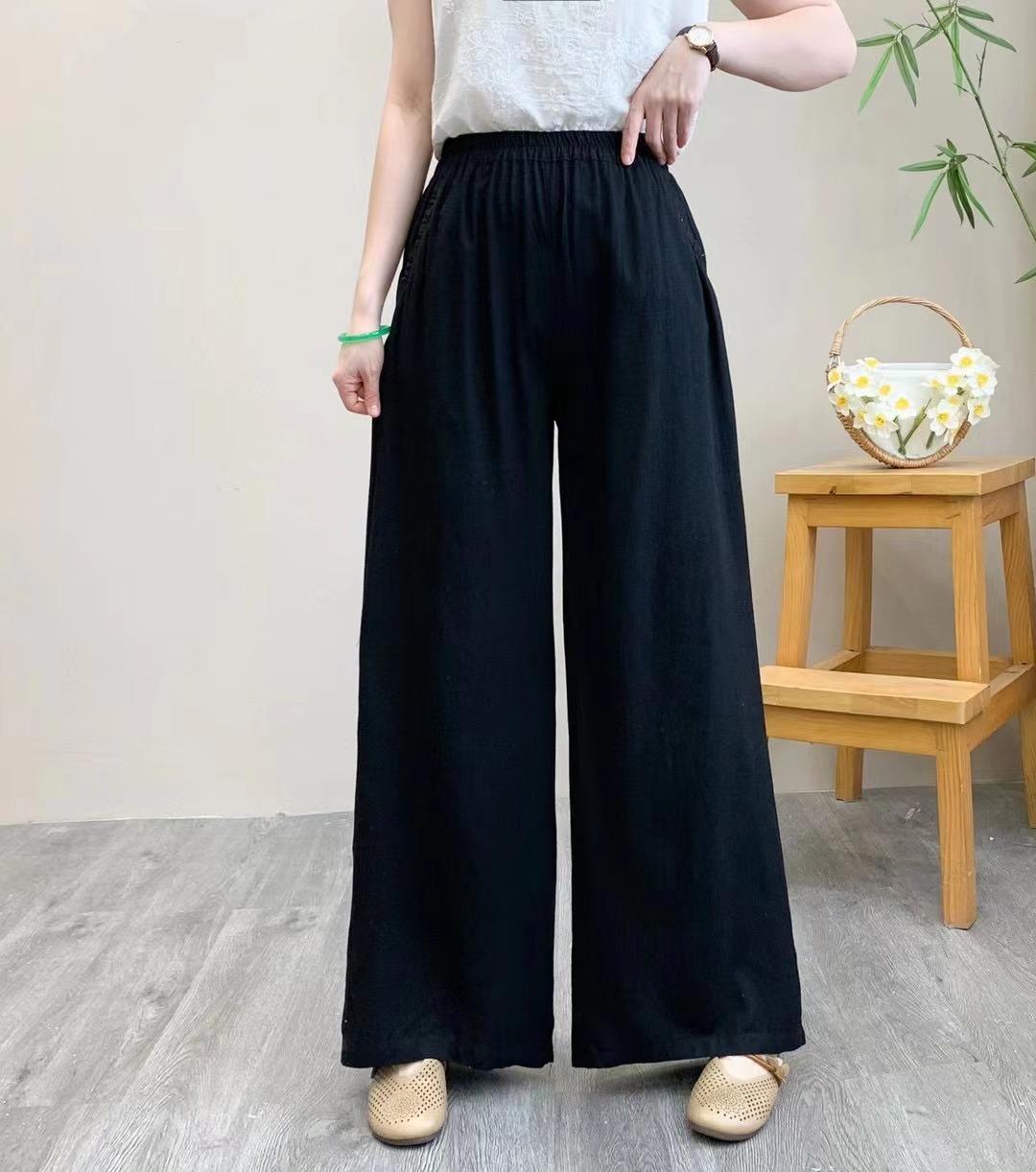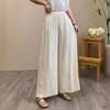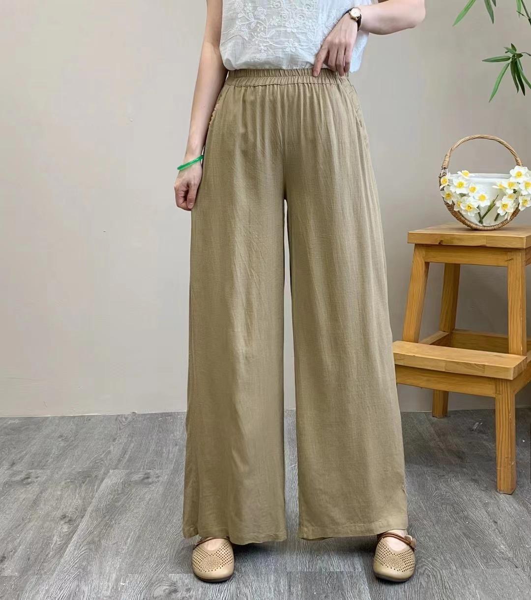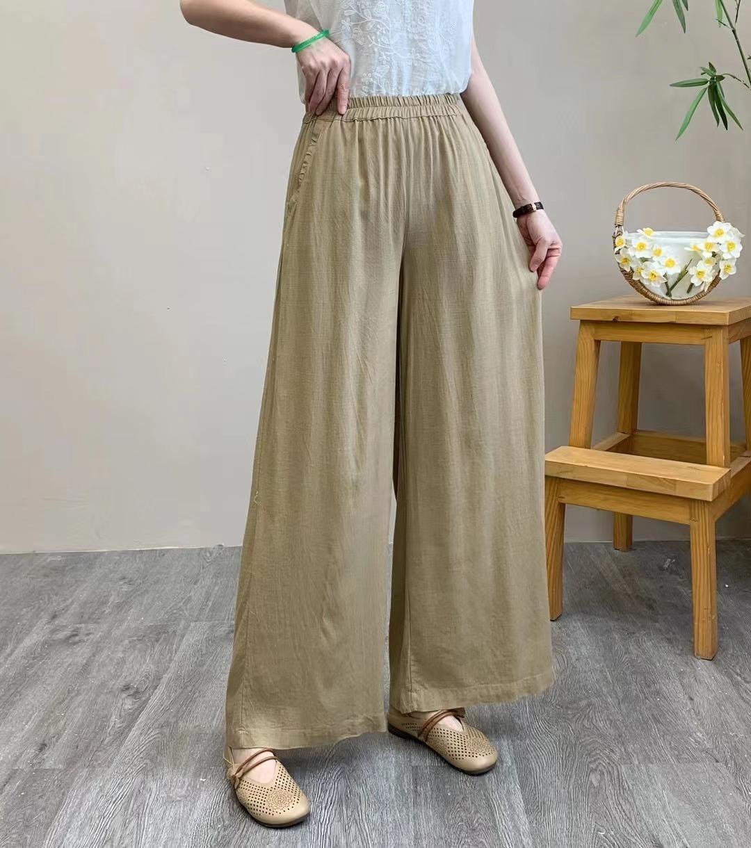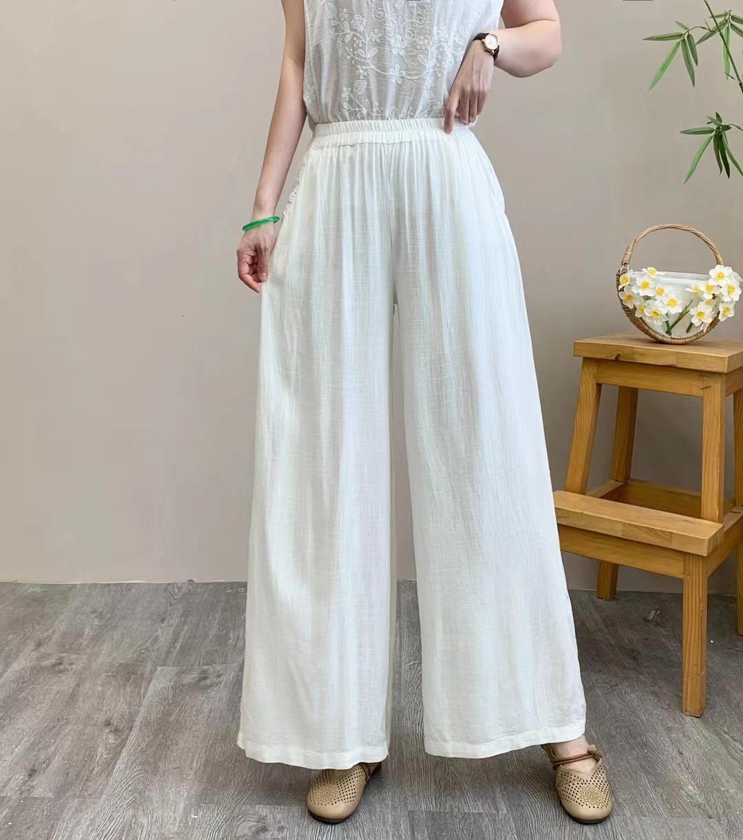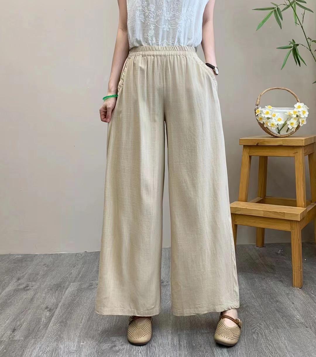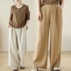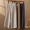 Pantalones anchos drapeados para mujer, primavera y verano, nuevos pantalones de algodón y lino de cintura alta, casuales, sueltos, combinables, rectos de moda.