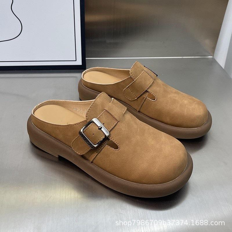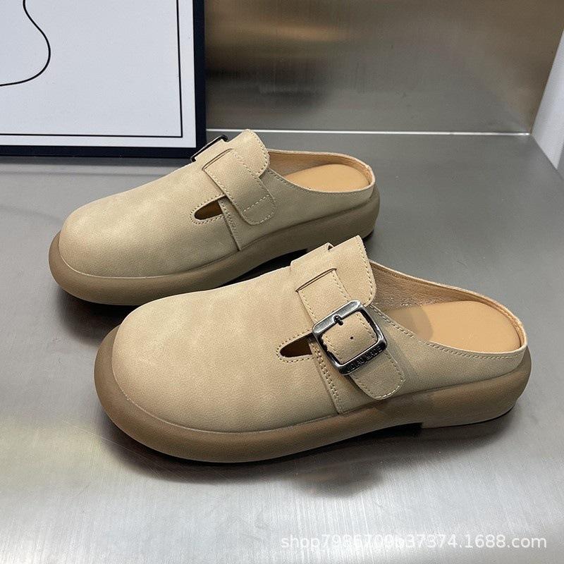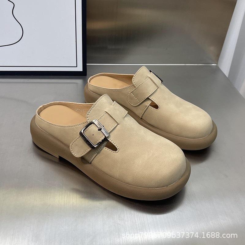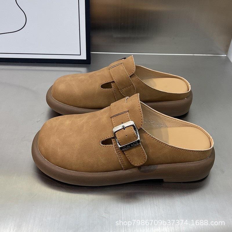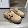 Zapatos de Mujer de Tacón Medio 2025 Primavera Nuevo Estilo Punta Redonda Correa con Hebilla Suela Blanda Cómodos Mocasines Slip-On Zapatos de Mujer