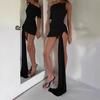 Vestido asimétrico con tirantes y cordones, ajustado, sexy, de color liso, para primavera y verano de 2025, para mujer, transfronterizo europeo y americano