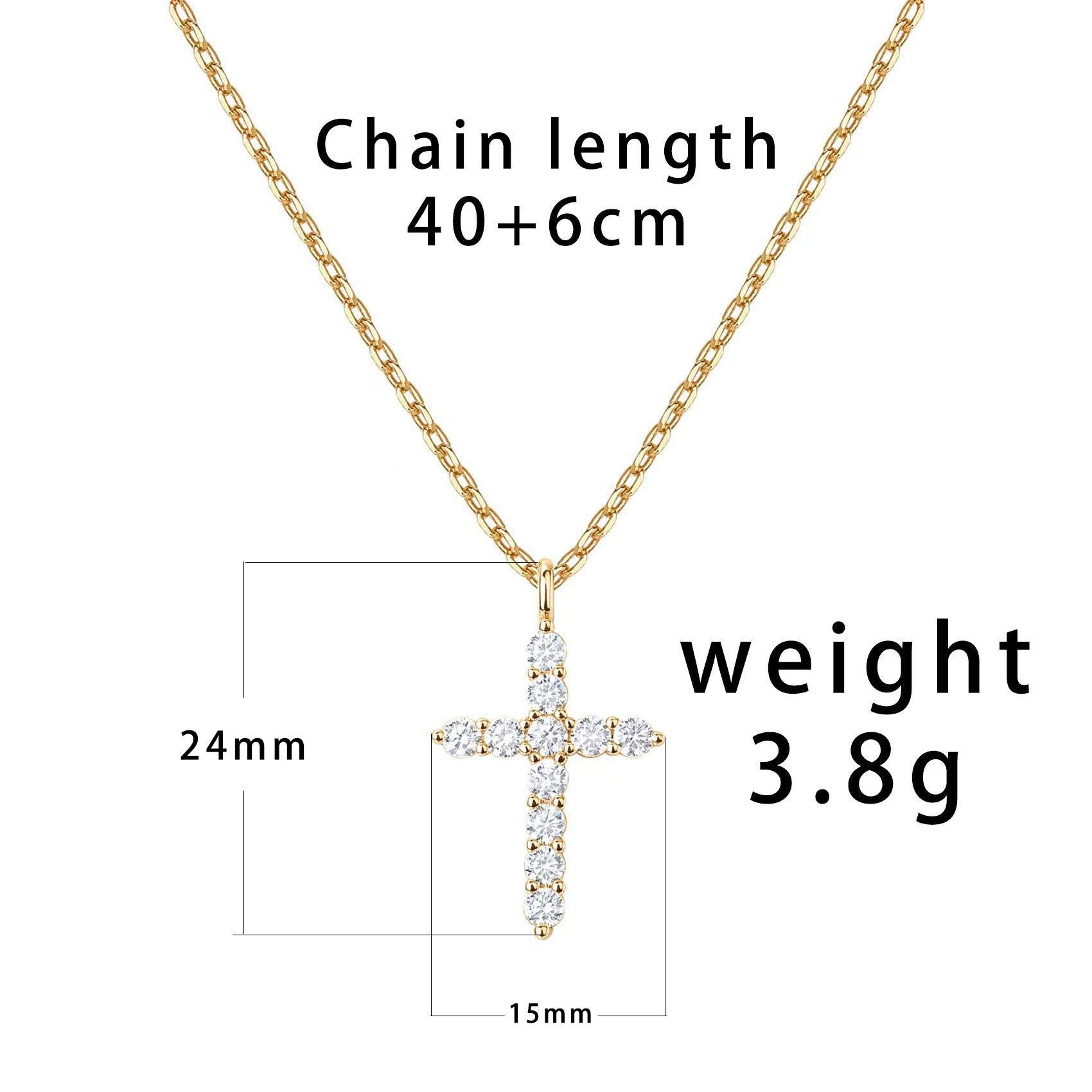 Collar de Cruz Transfronterizo Europeo y Americano de Lujo Ligero Moda Simple Cobre Diamante Collar de Cruz Pequeña Cadena o para Mujer