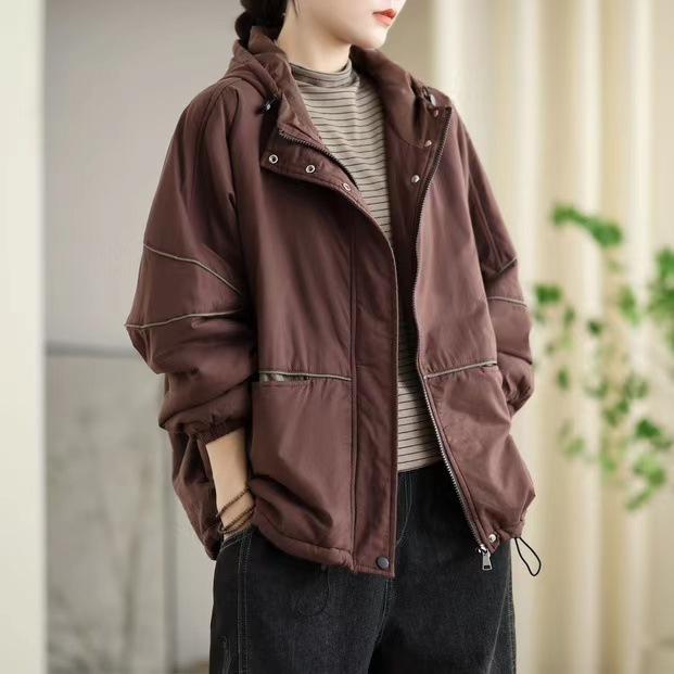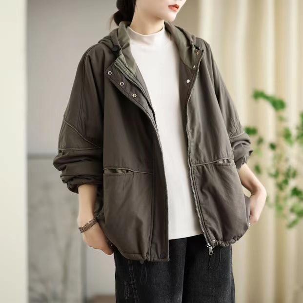 Abrigo de Algodón Cálido Ligero con Capucha de Nuevo Estilo Otoño e Invierno para Mujer, Corte Holgado, Adelgazante, Moderno, Versátil, Chaqueta Gruesa al por Mayor