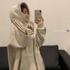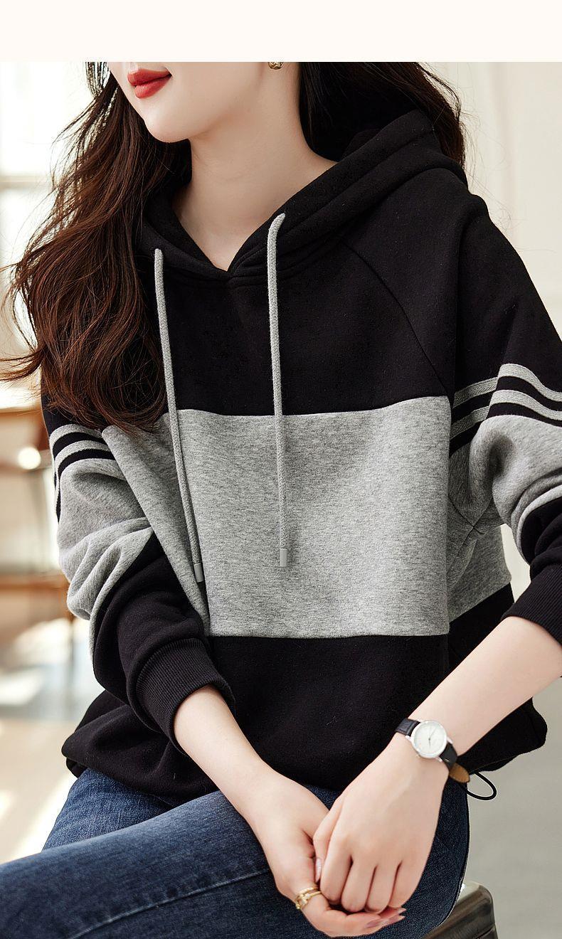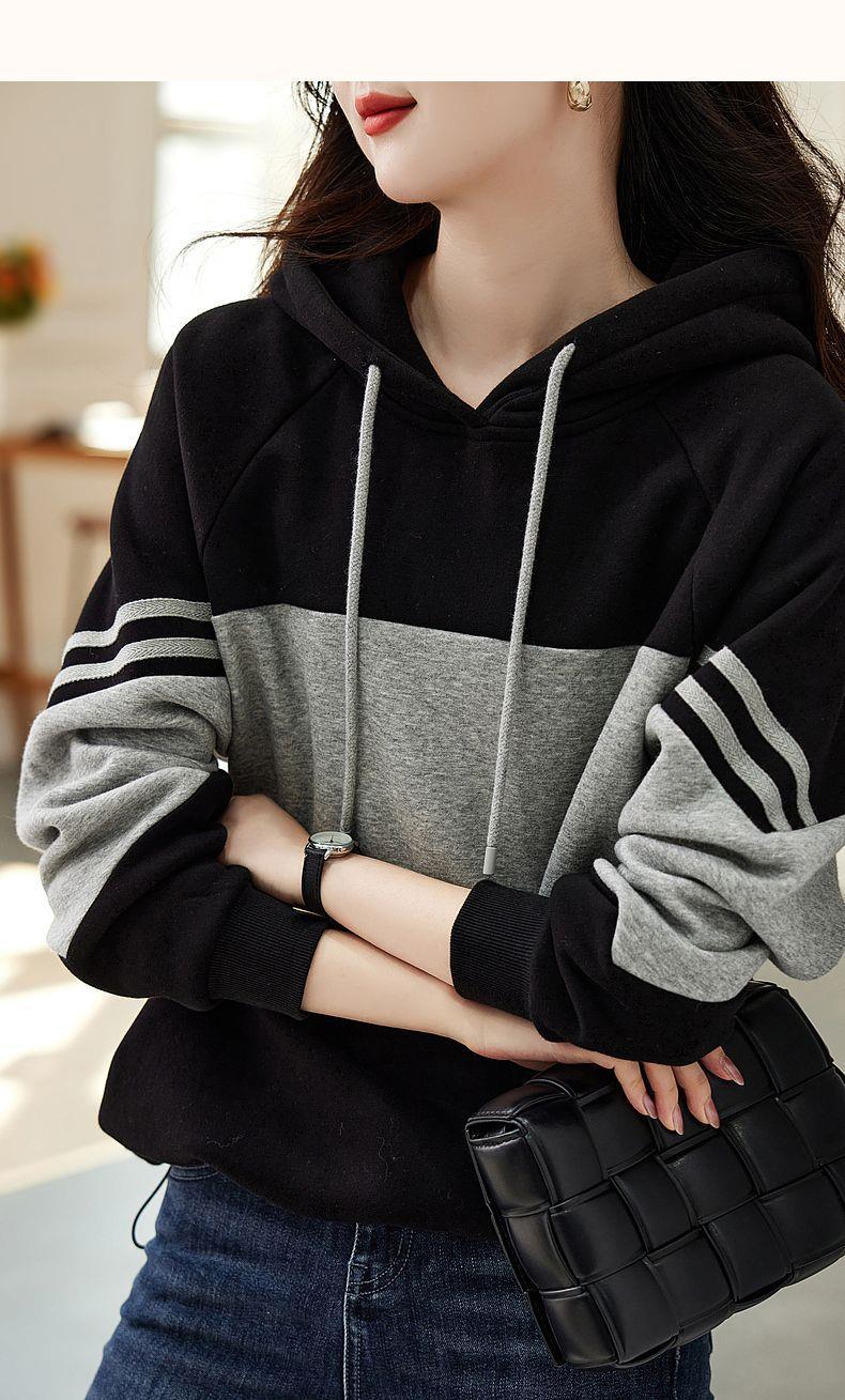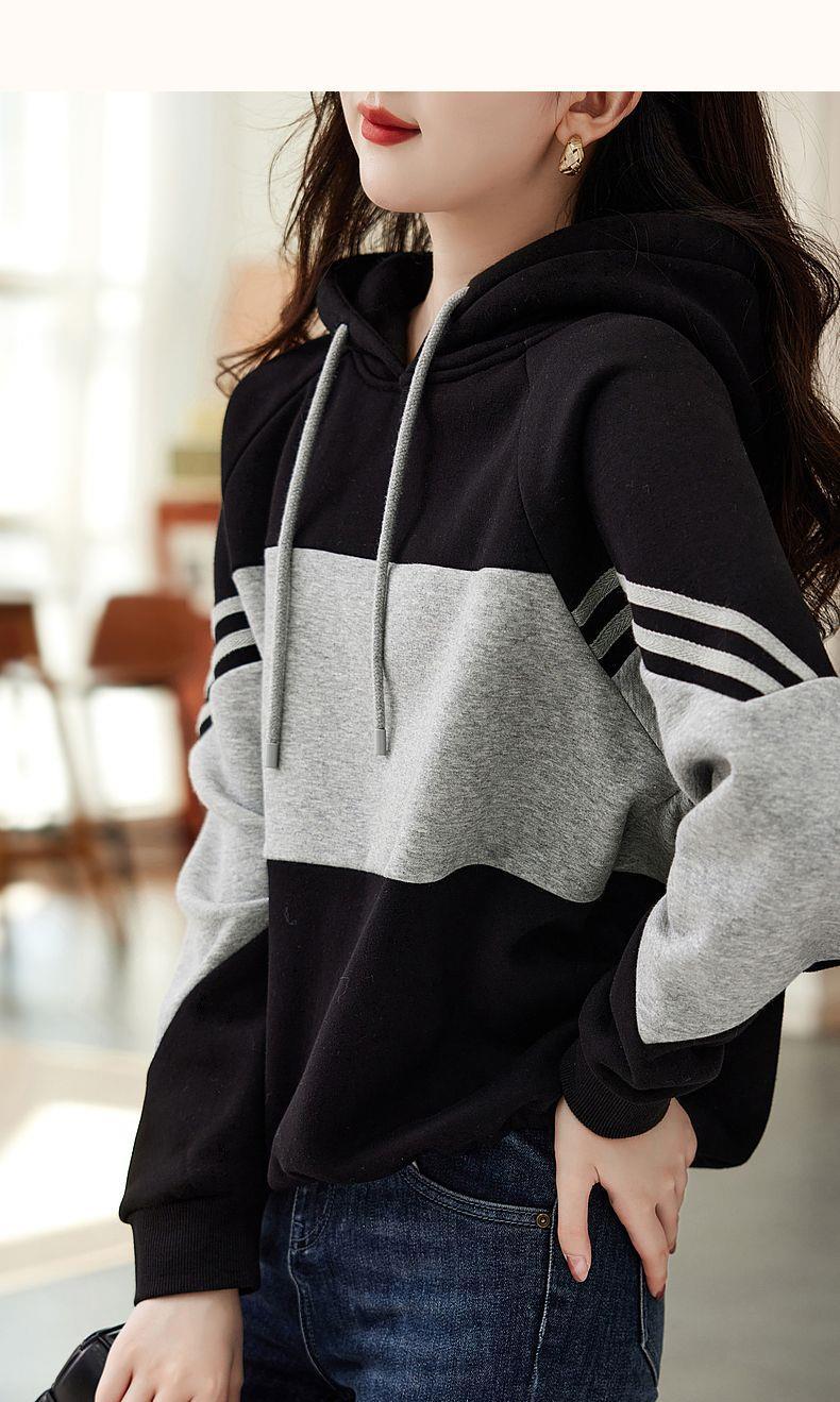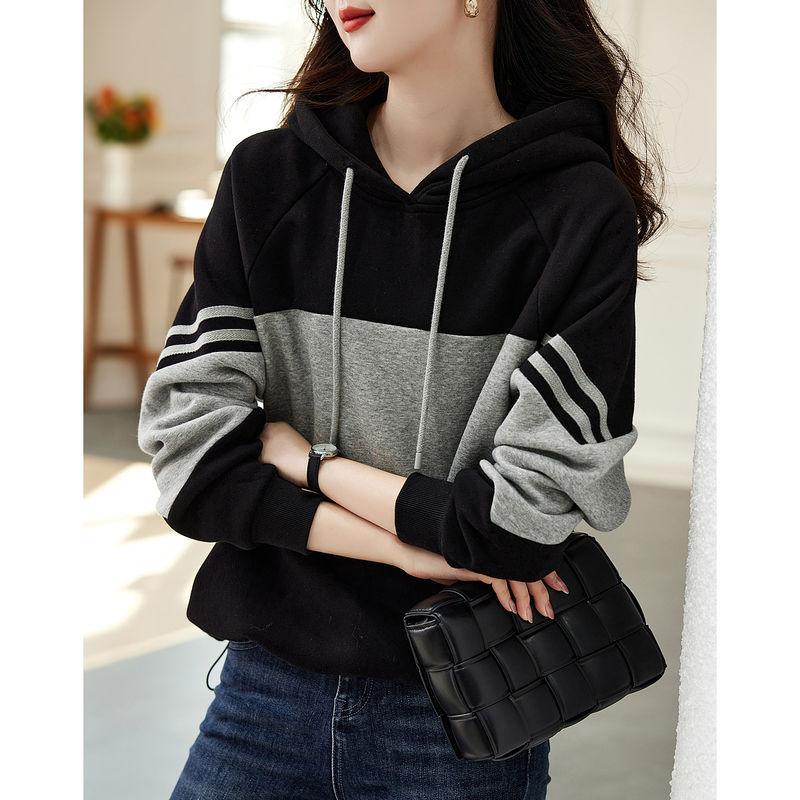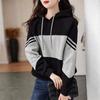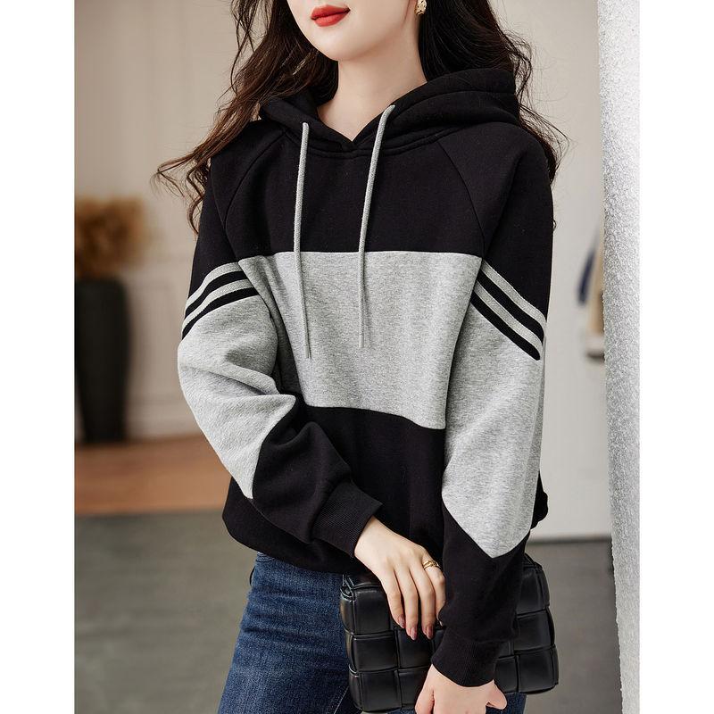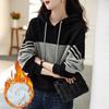 [Regular/Forrado de Felpa] Sudadera con Capucha para Mujer para Primavera, Otoño e Invierno, Nuevo Estilo Ins, Jersey Holgado con Parche a Rayas, Chaqueta con Capucha