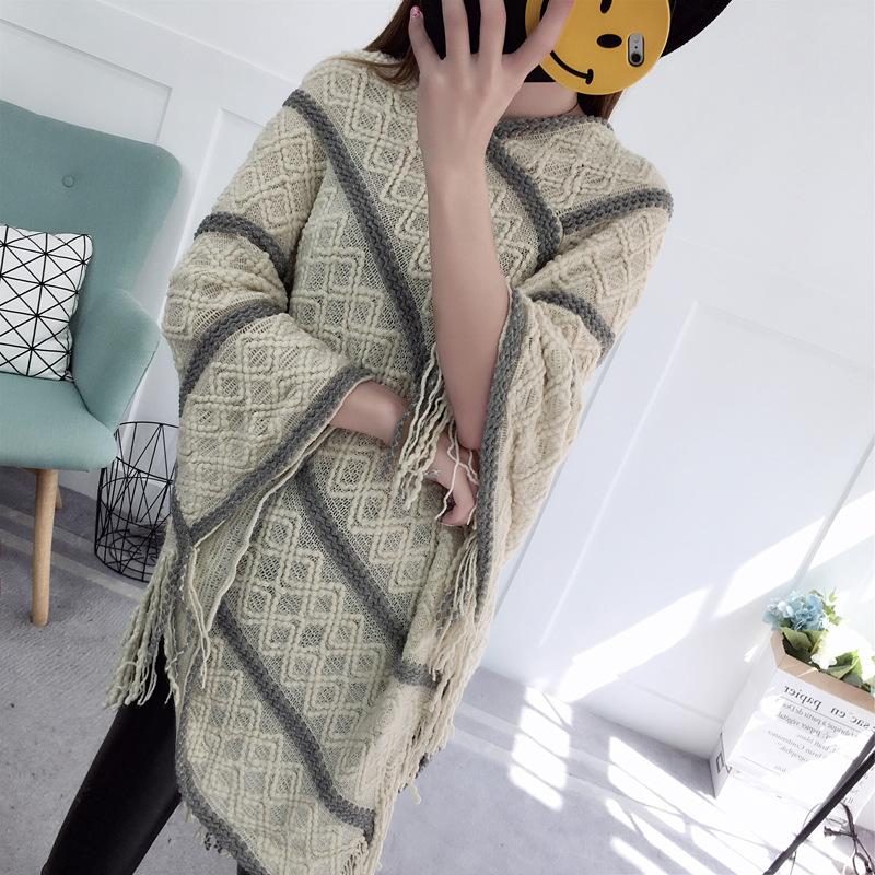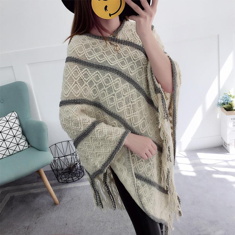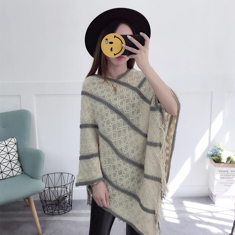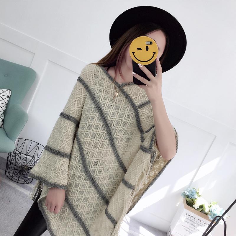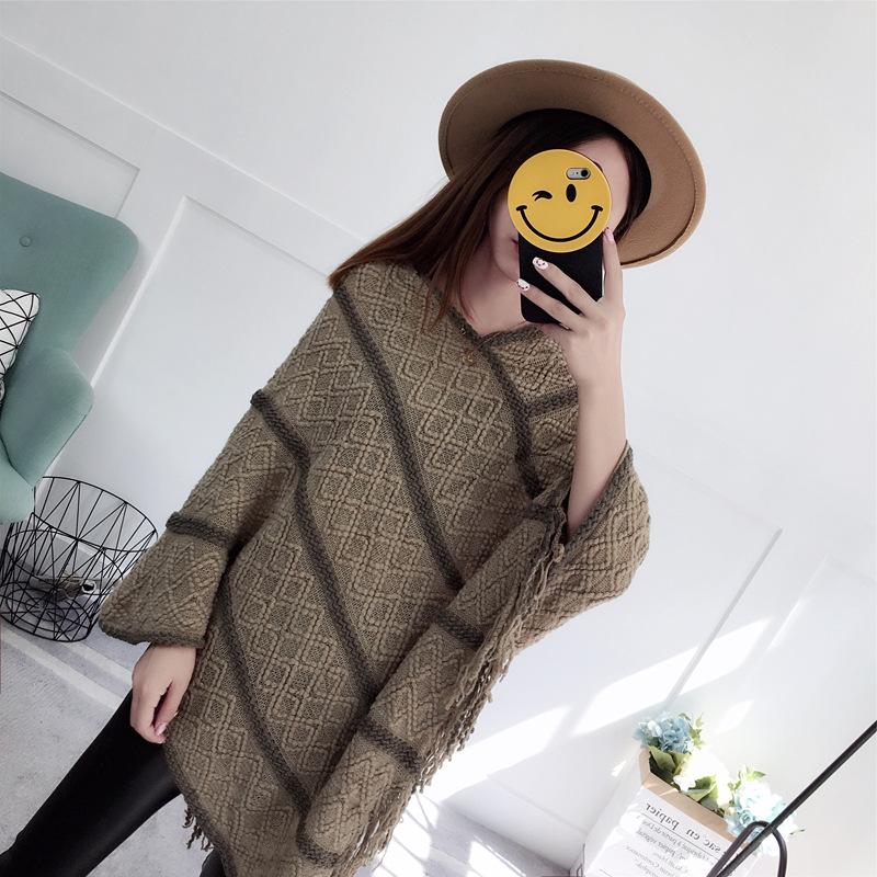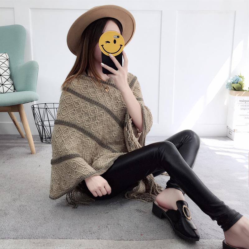 Ropa Nueva de Otoño 2024 Estilo Coreano Tejido de Punto Largo Medio Versátil Suéter de Mujer Borla Manga Murciélago Capa Chaleco Chaqueta
