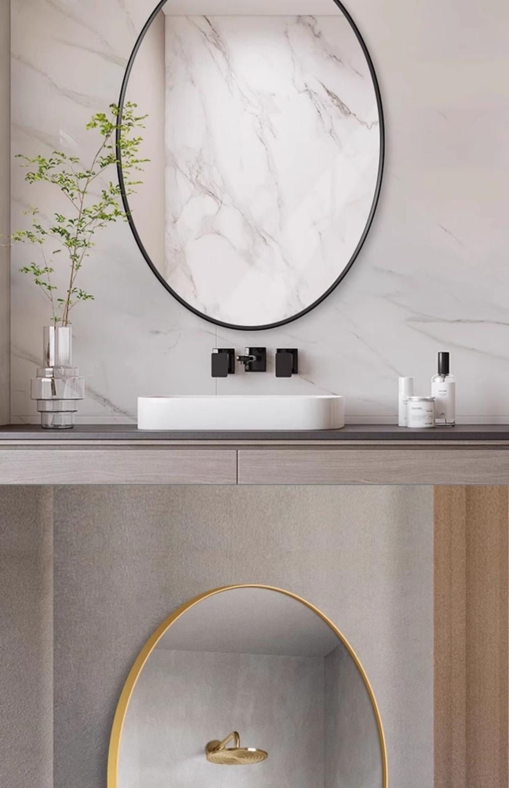 Compra R* Espejo de Baño de Alta Definición Espejo de Baño Ovalado Marco de Aleación de Aluminio Montado en la Pared Hogar Baño Lavabo Espejo de Cristal al por mayor en Joom.pro