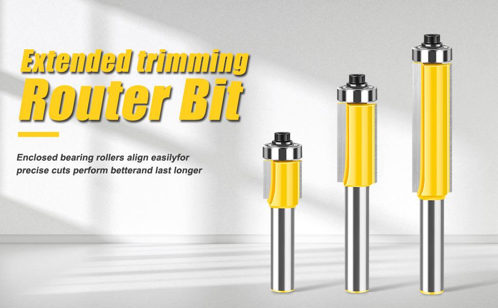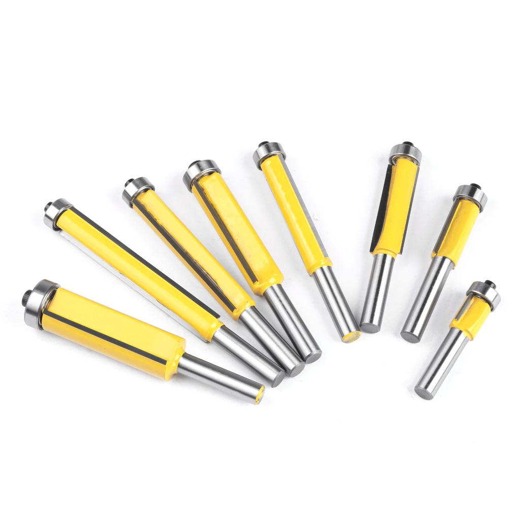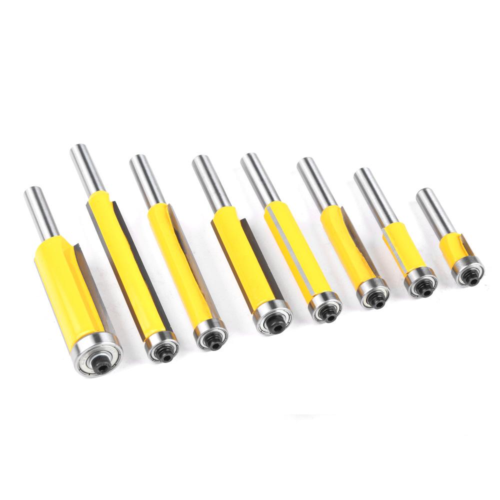 Fresa de corte extendida de 8 mangos con rodamiento, fresa de corte recta de doble filo, fresa de corte para carpintería, fresa de corte para copiar y ranurar