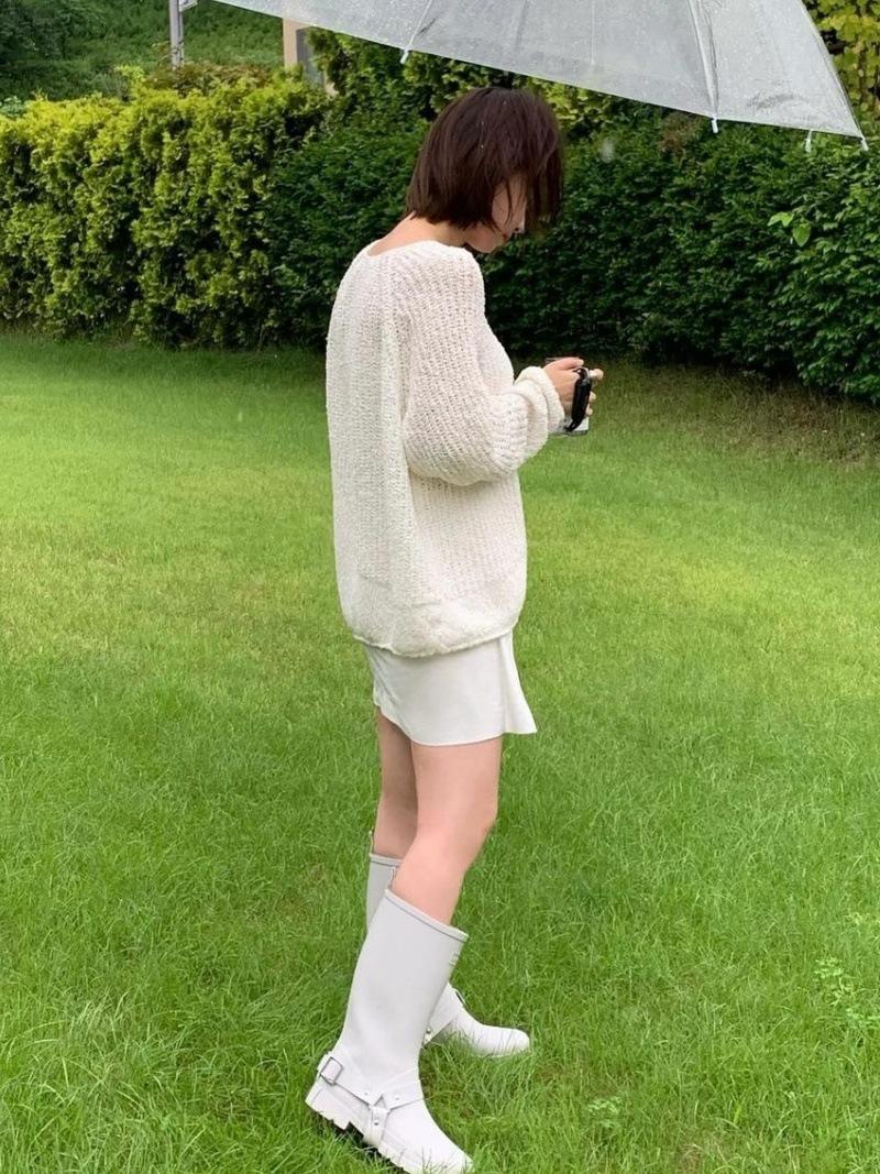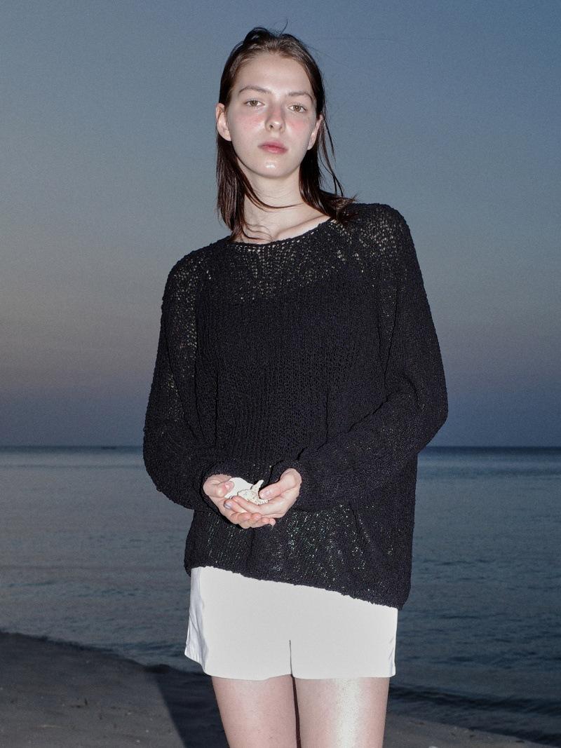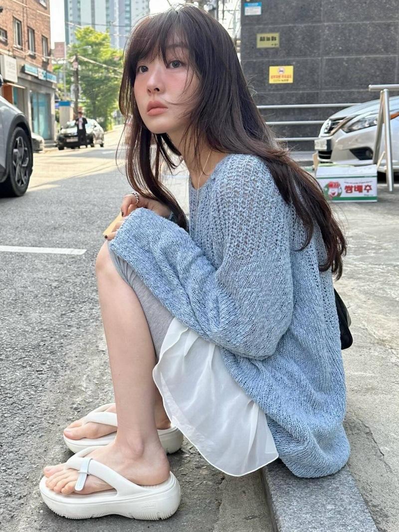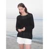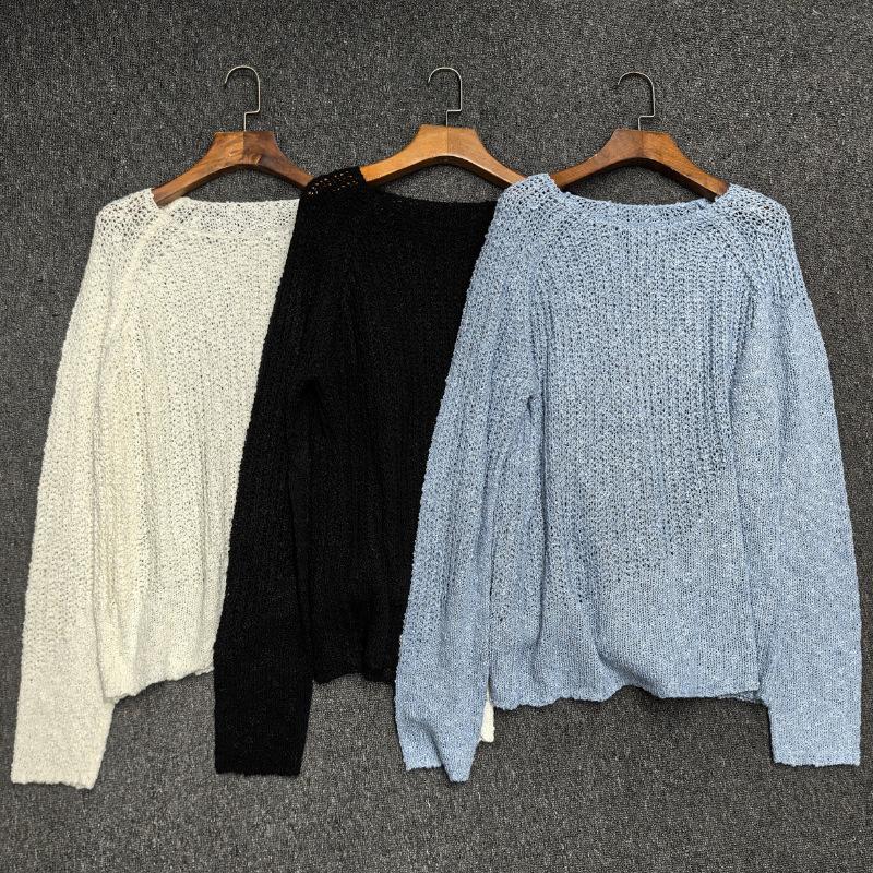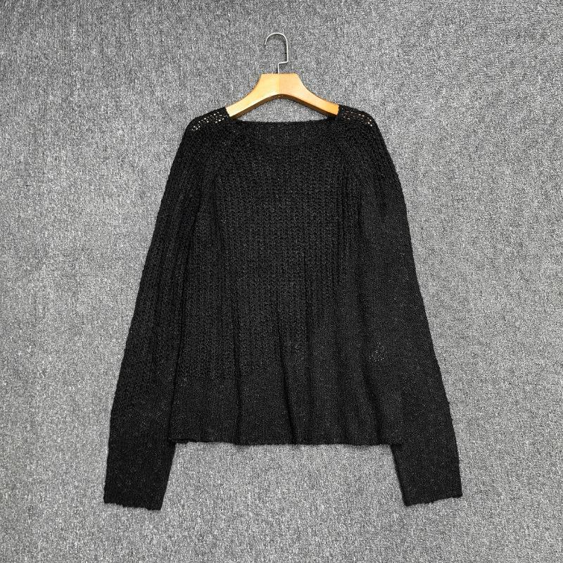 Longmei Cool Coreano Lc Calado Tejido para Mujer Principios de Otoño 2025 Invierno Nuevo Top de Manga Larga con Cuello Redondo