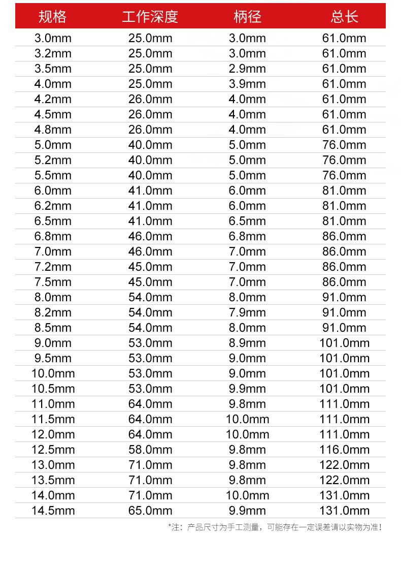 3mm (5 pieces), 3.2mm (5 pieces), 3.5mm (5 pieces), 4.0mm (5 pieces), 4.2mm (5 pieces), 4.5mm (5 pieces), 4.8m...