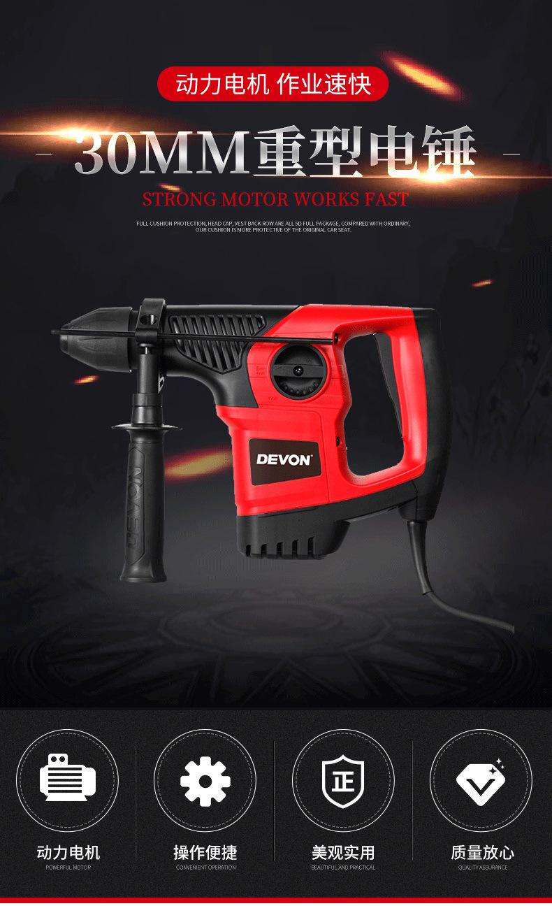 Serie de herramientas de CA grandes martillo eléctrico de servicio pesado de 30 mm serie 1104 El mandril se puede quitar sin herramientas