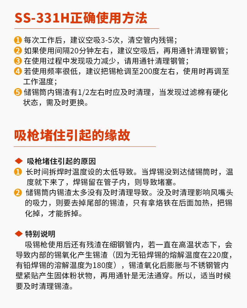 Ss-331h standard configuration, Ss-331h heating core, 331h special glass tube for suction gun, Ss-331h solder ...