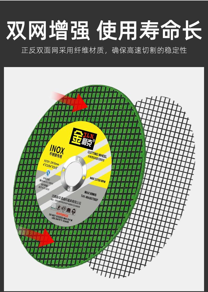 Pieza de corte Jinlik de dos colores, de acero inoxidable 107, de malla simple y doble, ultrafina, afilada y duradera, pieza de muela abrasiva para amoladora angular