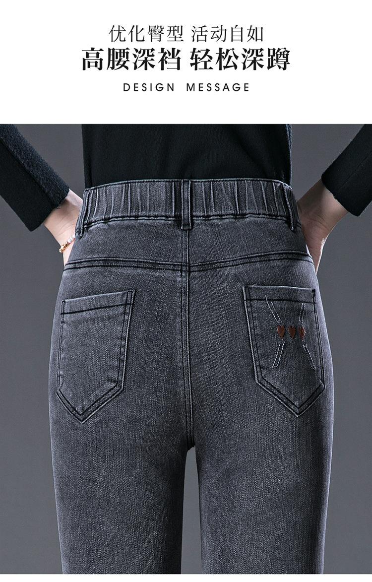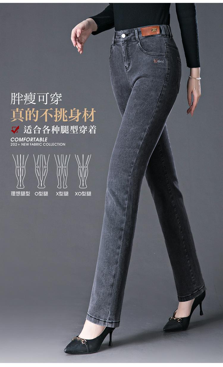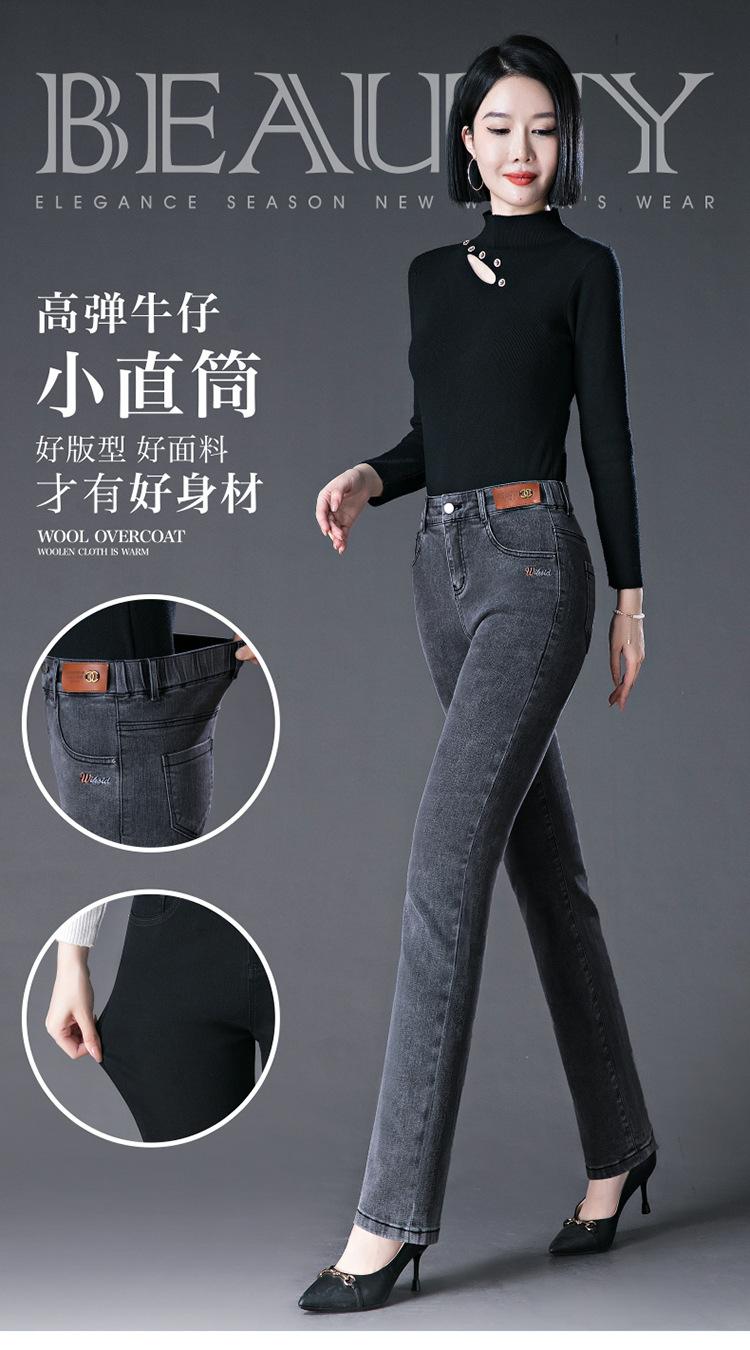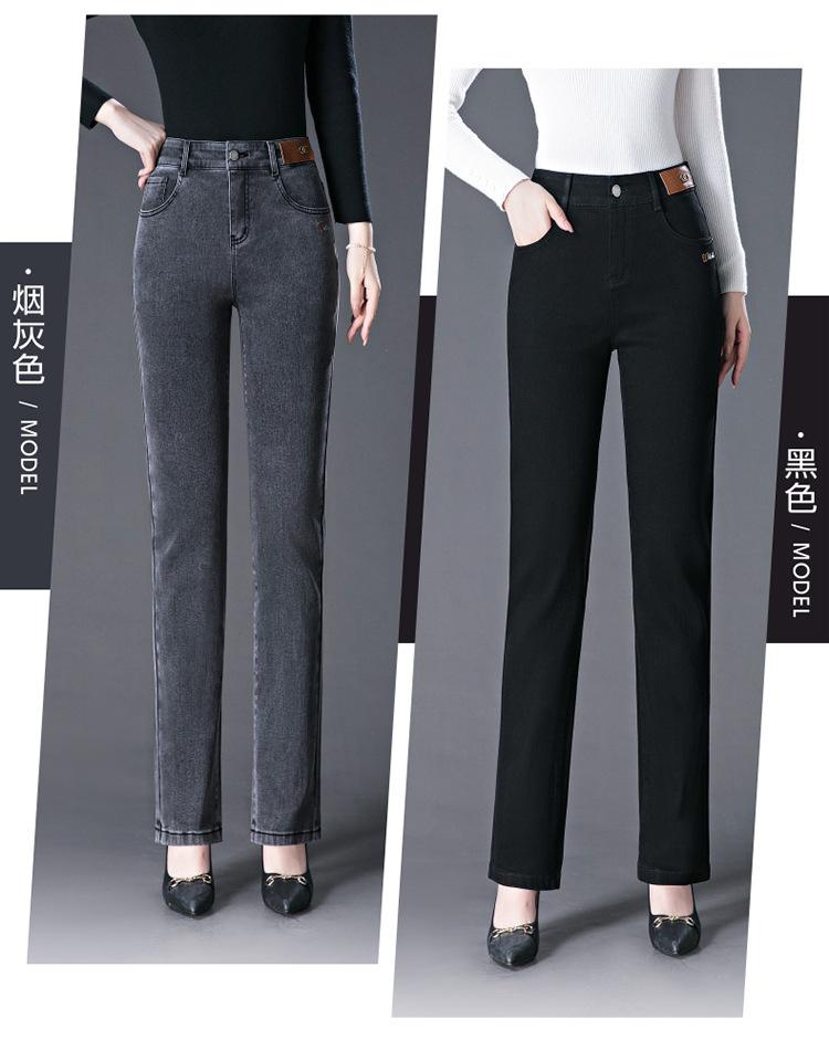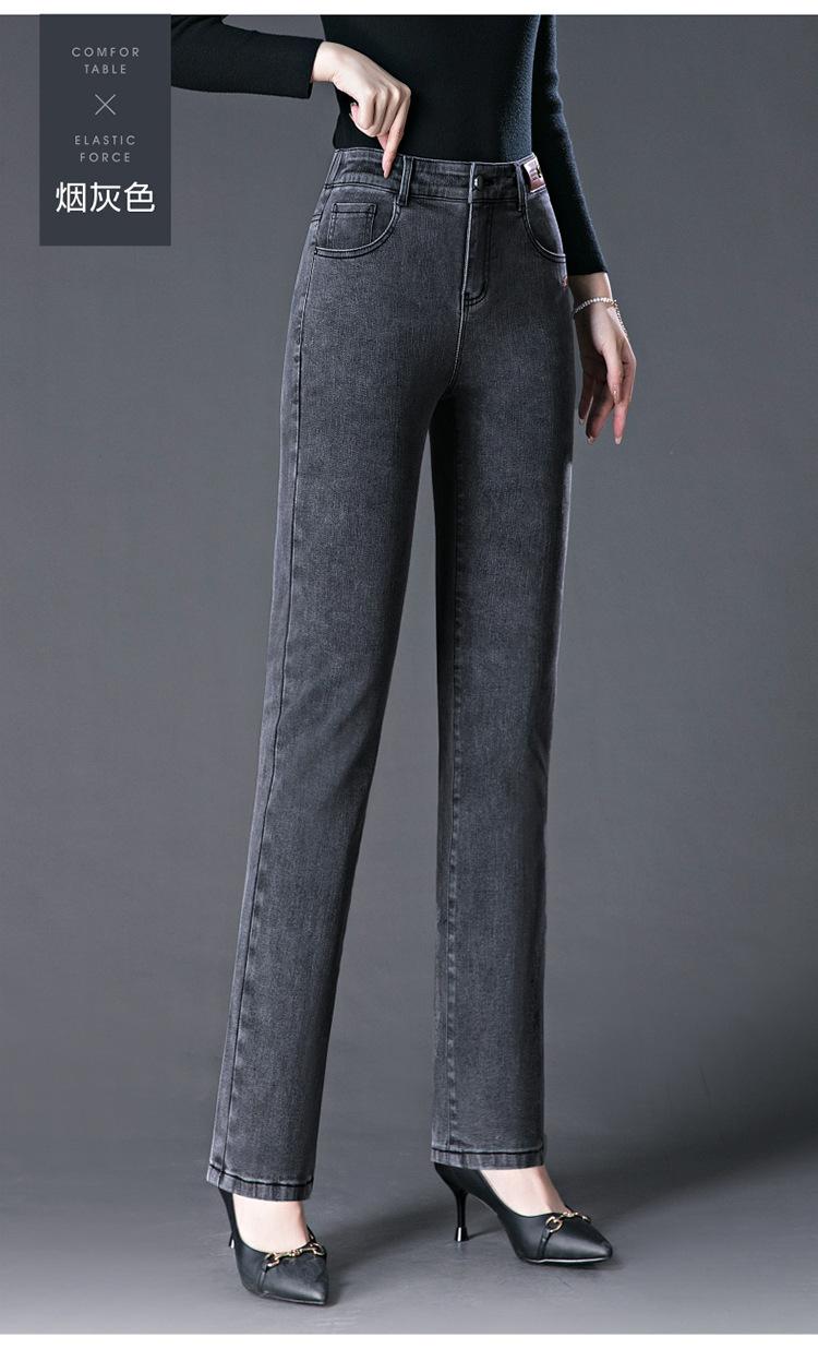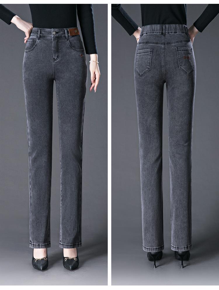 2023 Otoño Nuevos pantalones vaqueros de cintura alta para mujer Pantalones rectos pequeños elásticos adelgazantes gris ahumado mamá pantalones de mujer de mediana edad