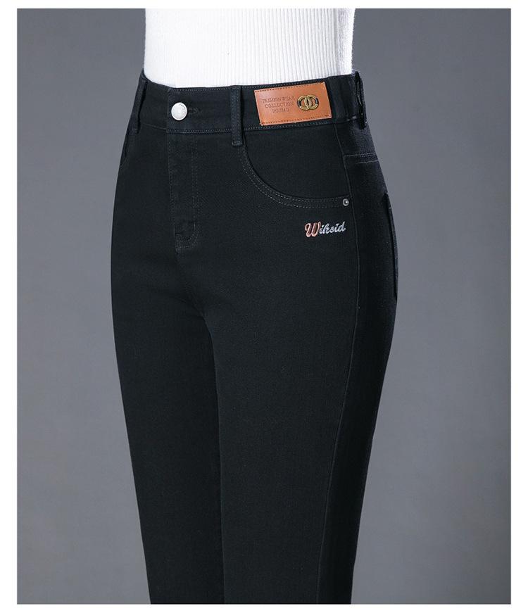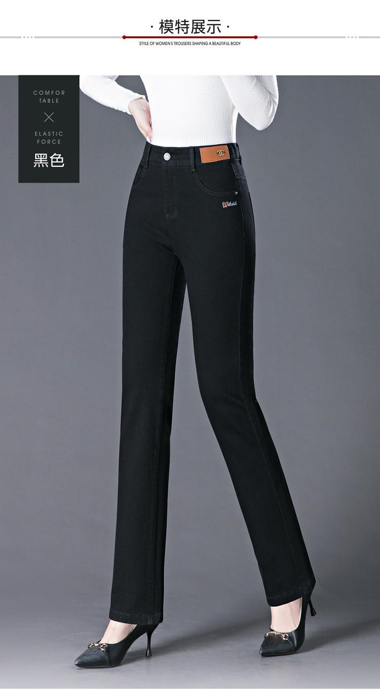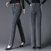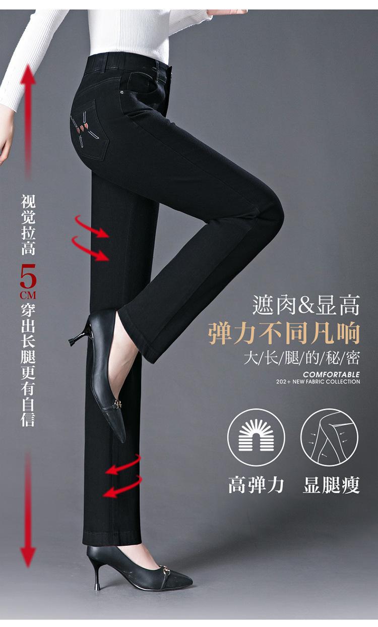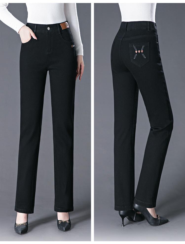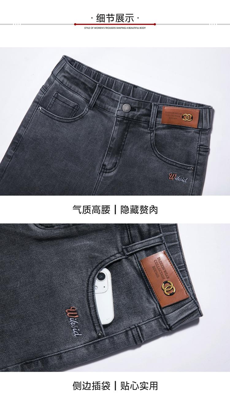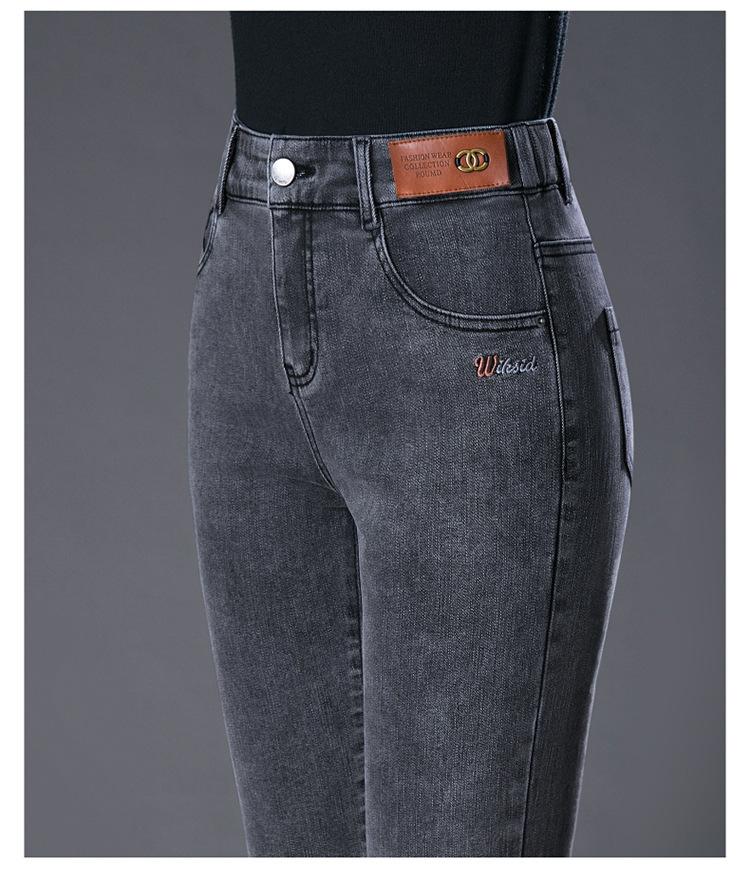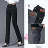 2023 Otoño Nuevos pantalones vaqueros de cintura alta para mujer Pantalones rectos pequeños elásticos adelgazantes gris ahumado mamá pantalones de mujer de mediana edad