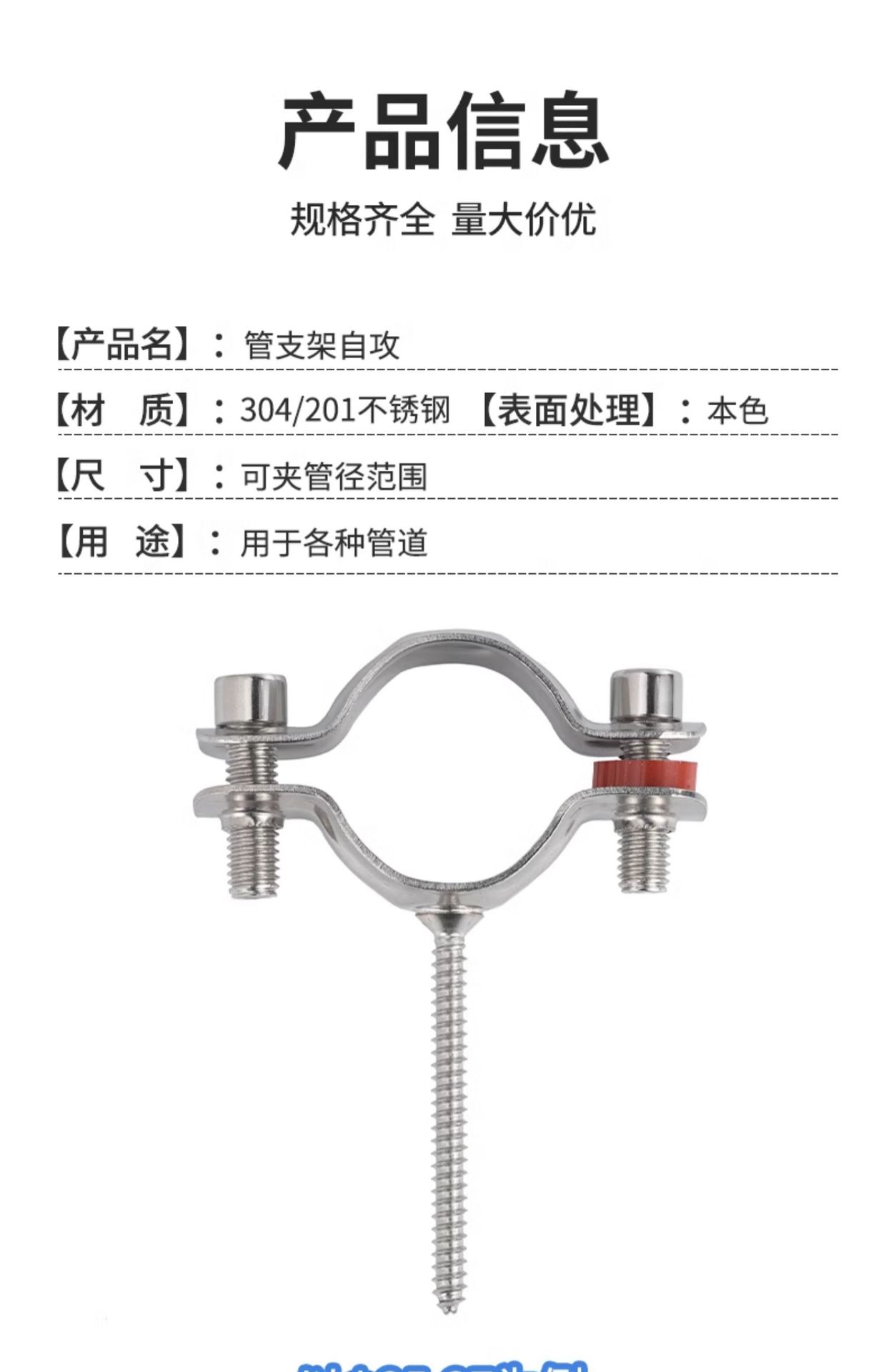 Abrazadera para tubo de acero inoxidable 304, soporte para fijación de tubería, tornillo de expansión, tornillo autorroscante, aro de sujeción, abrazadera para tubería de agua, abrazadera de hebilla