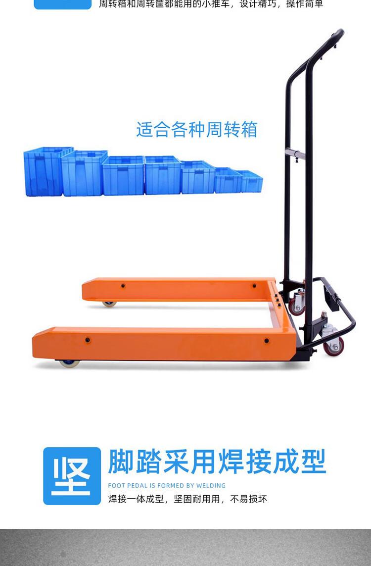Caja Contenedor Camión Pedal Manual Carretilla Elevadora Herramienta de Transporte Carro con Cesta de Plástico Carro Especial Elevador de Caja de Plástico