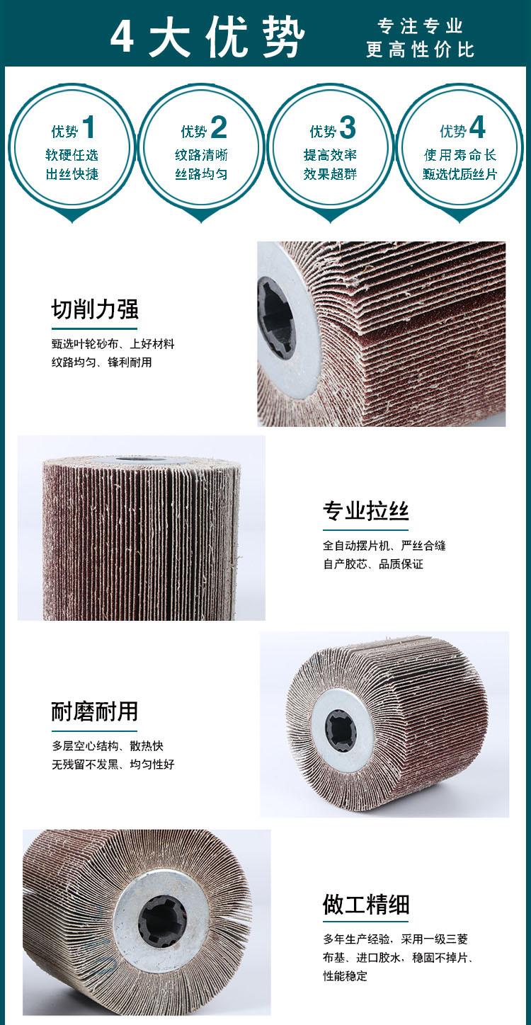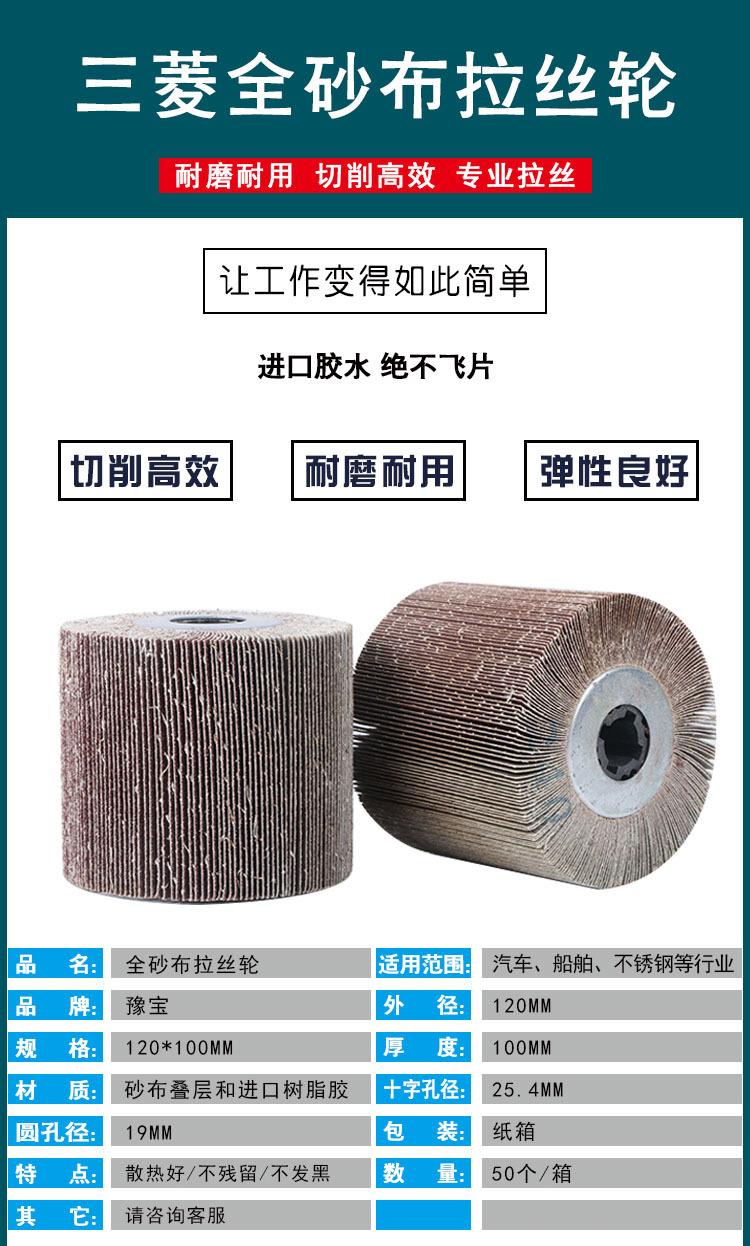 Características del producto:La superficie de los productos de acero inoxidable se puede soldar y reparar después de rayarse, lo que puede restaurar eficazmente la textura cepillada y es conveniente y rápido de usar. Especialmente adecuado para procesar piezas de trabajo de forma irregular, sin quemaduras en la superficie de la pieza de trabajo, duradero, eficiente, autoafilable (antibloqueo), alto acabado,El producto tiene una fuerte fuerza de corte, una larga vida útil y líneas claras.