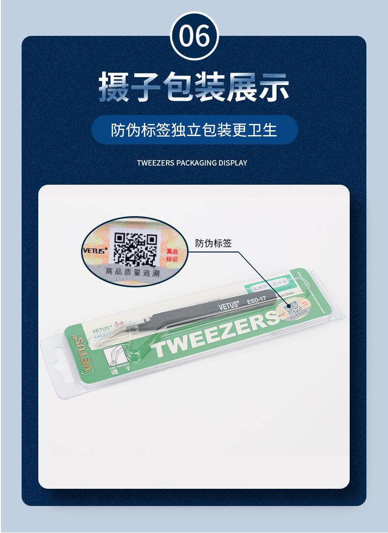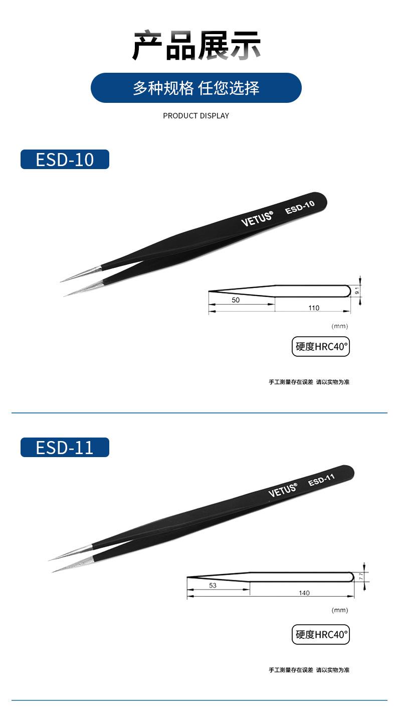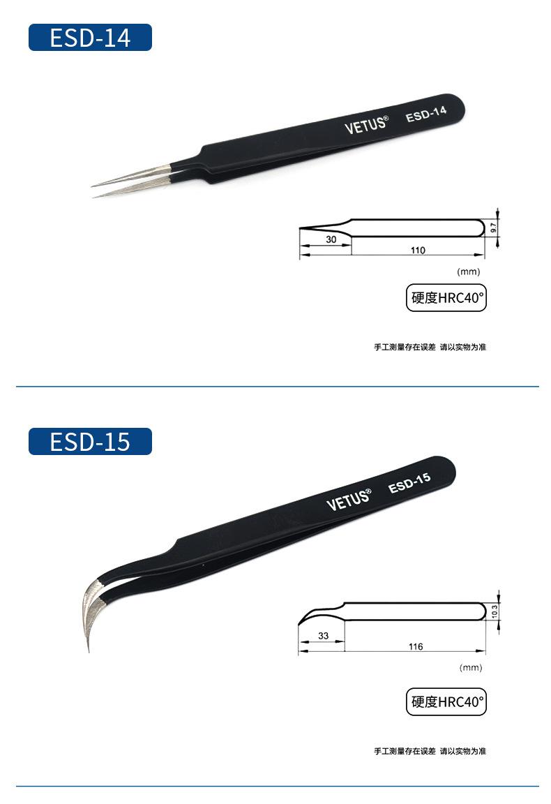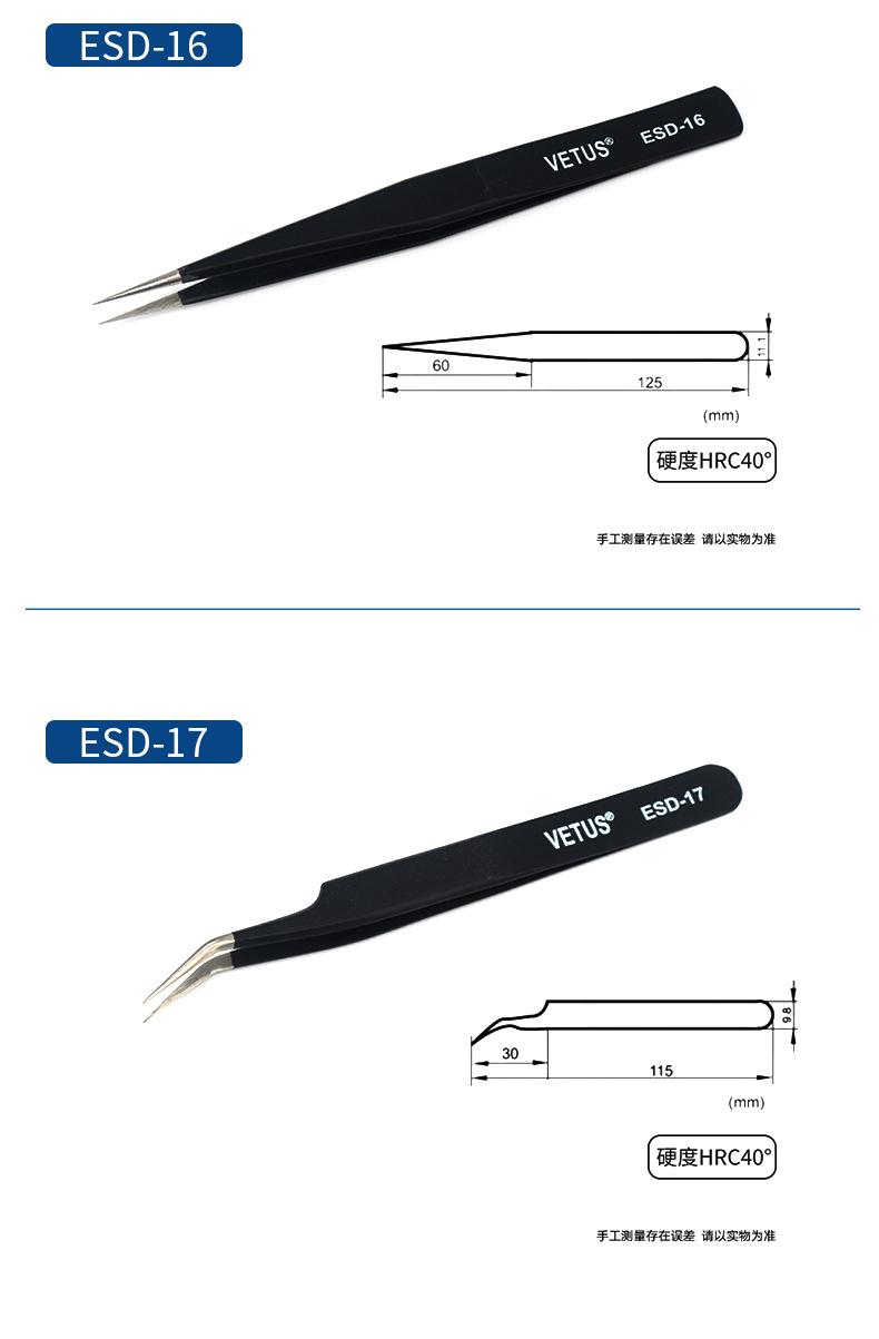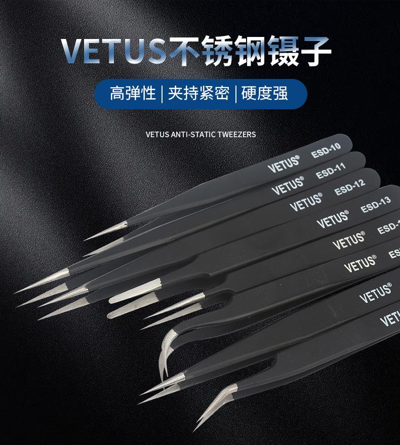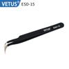 Pinzas VETUS de acero inoxidable de precisión con punta en forma de codo, color negro, para reparación de teléfonos móviles, herramienta para cortar cabello y uñas ESD-15