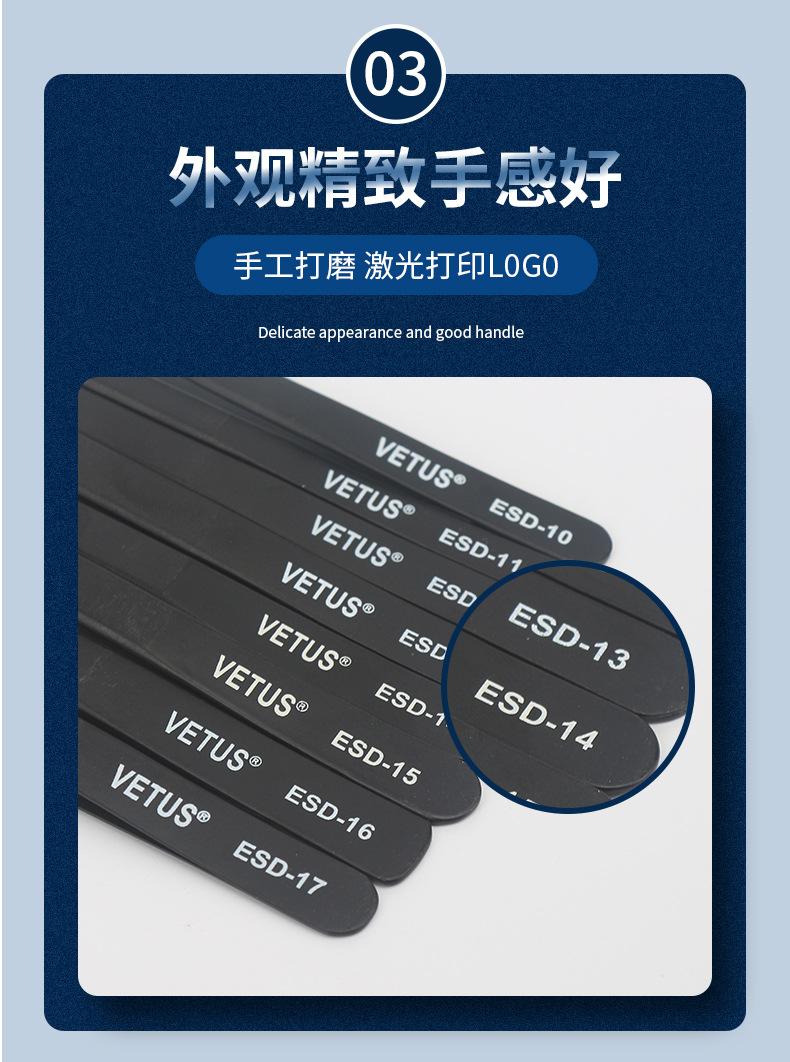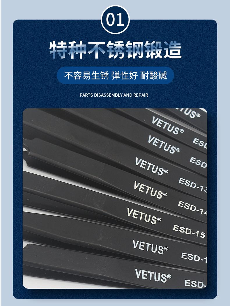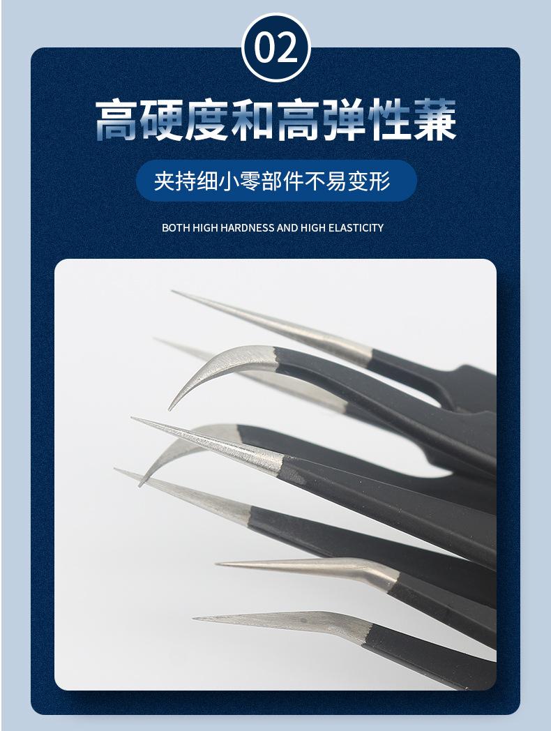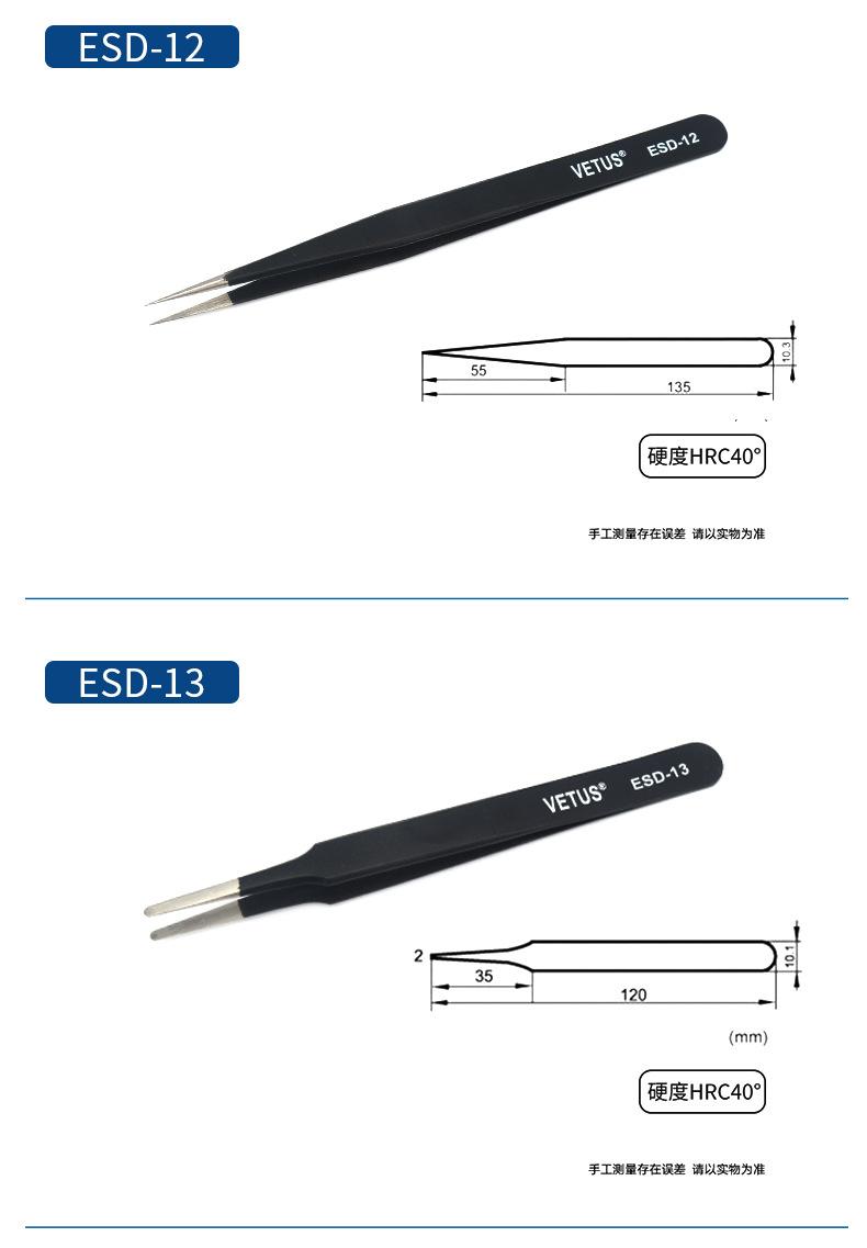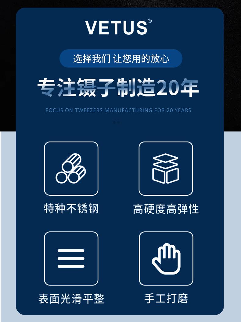 Pinzas VETUS de acero inoxidable de precisión con punta en forma de codo, color negro, para reparación de teléfonos móviles, herramienta para cortar cabello y uñas ESD-15