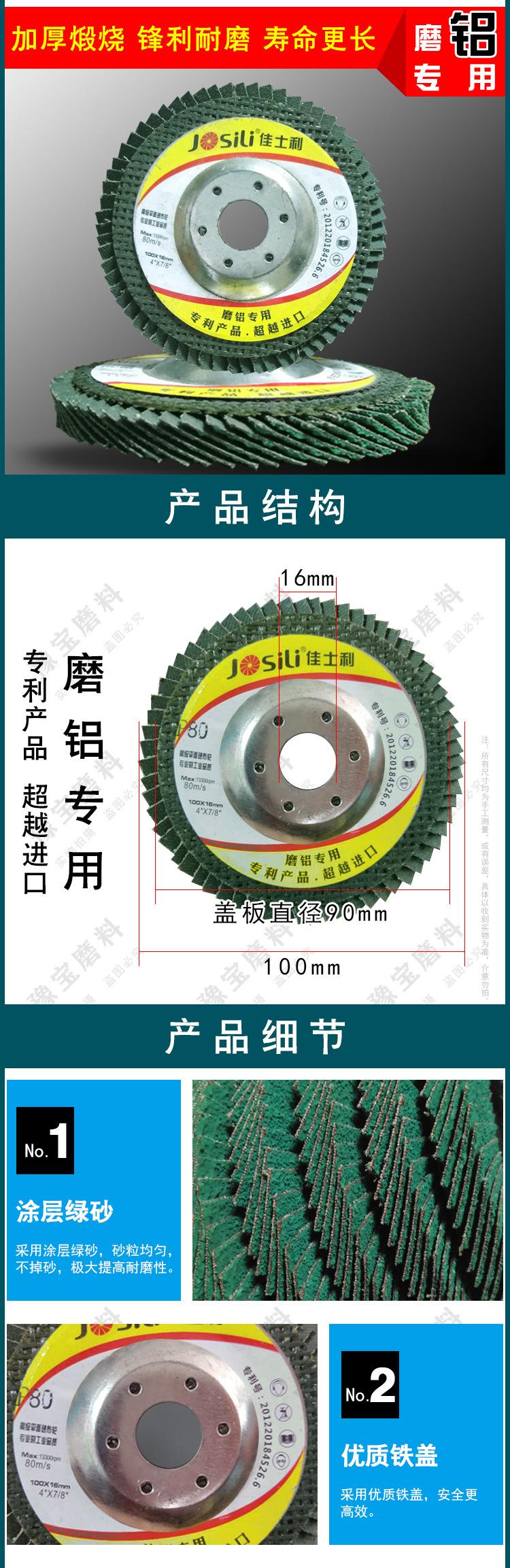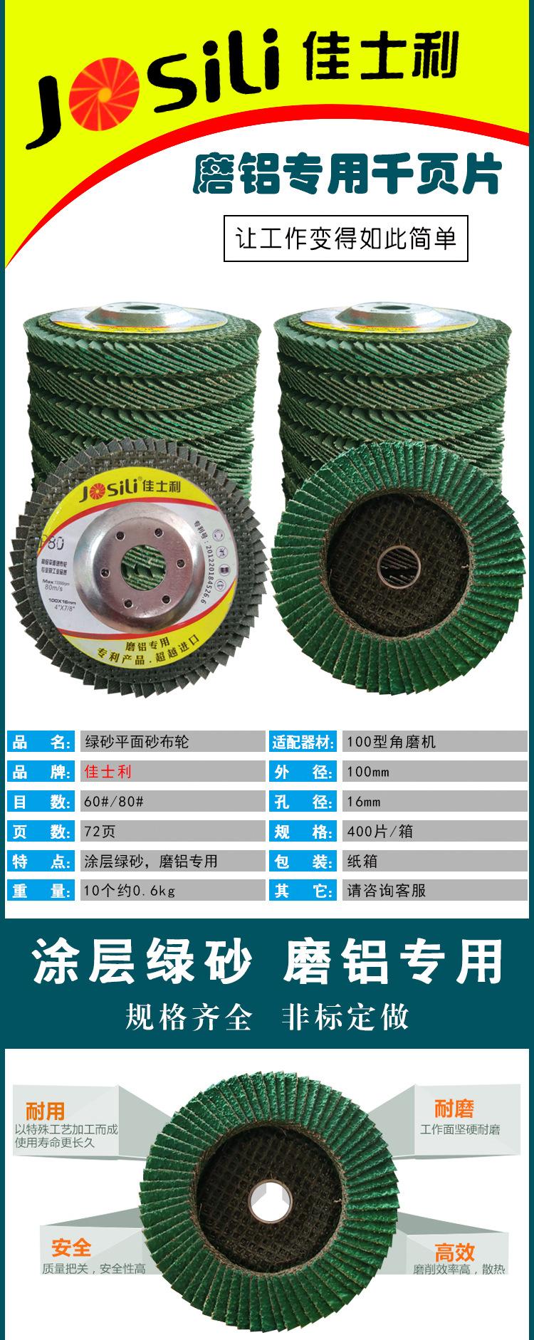 Hoja de pulido de mil páginas de arena verde con cubierta de malla de hierro, rueda de tela de lija plana engrosada, especial para pulido de aluminio, malla 60 # 80