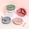 Plato de Cena de Silicona Plato con Ventosa Múltiple Tazón con Divisiones Vajilla para Alimentación Infantil Plato de Cena Separado para Bebé Juego de Tazón para Suplementación de Bebé