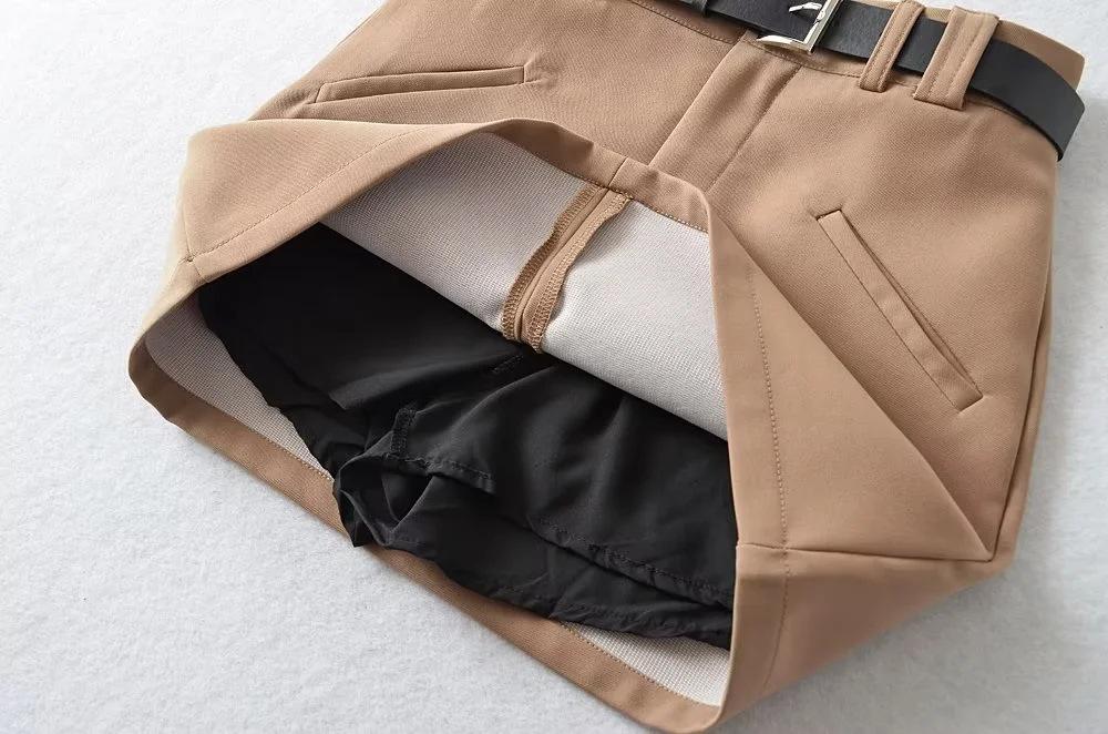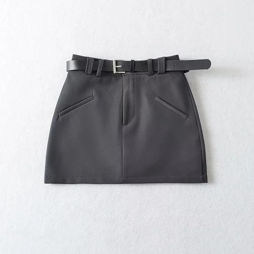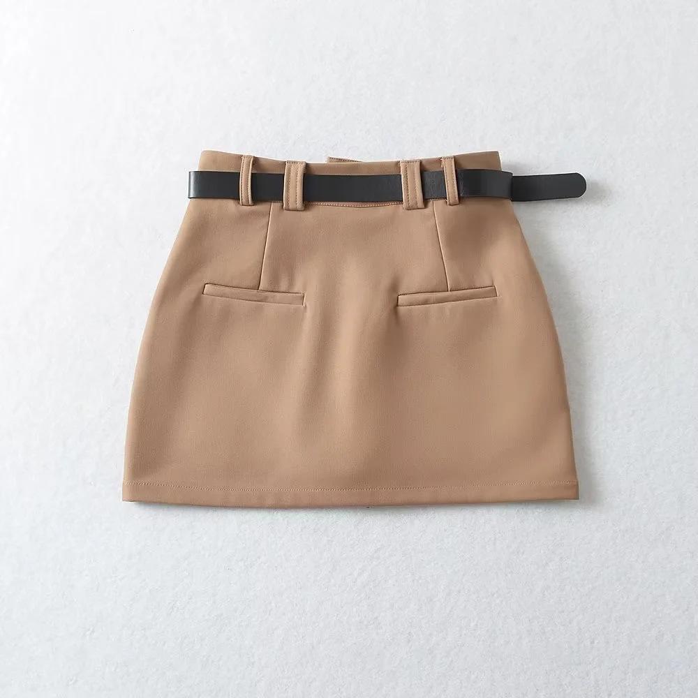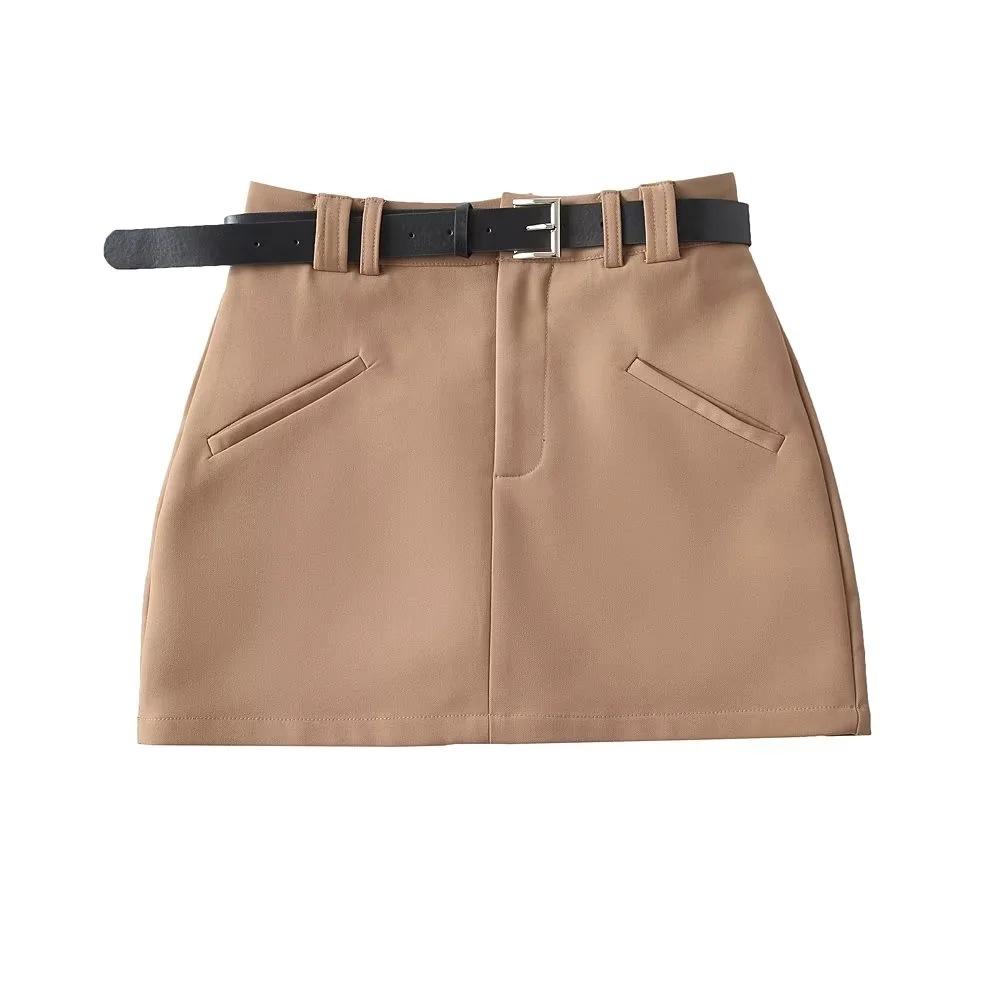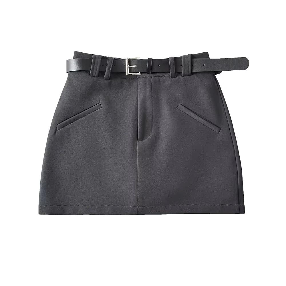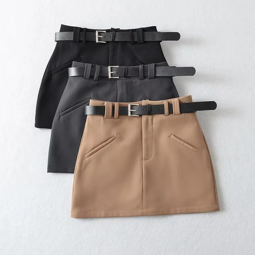 Falda cruzada ajustada a la cadera con bolsillo inclinado sexy para mujer de estilo europeo y americano, falda corta de tres colores con cinturón