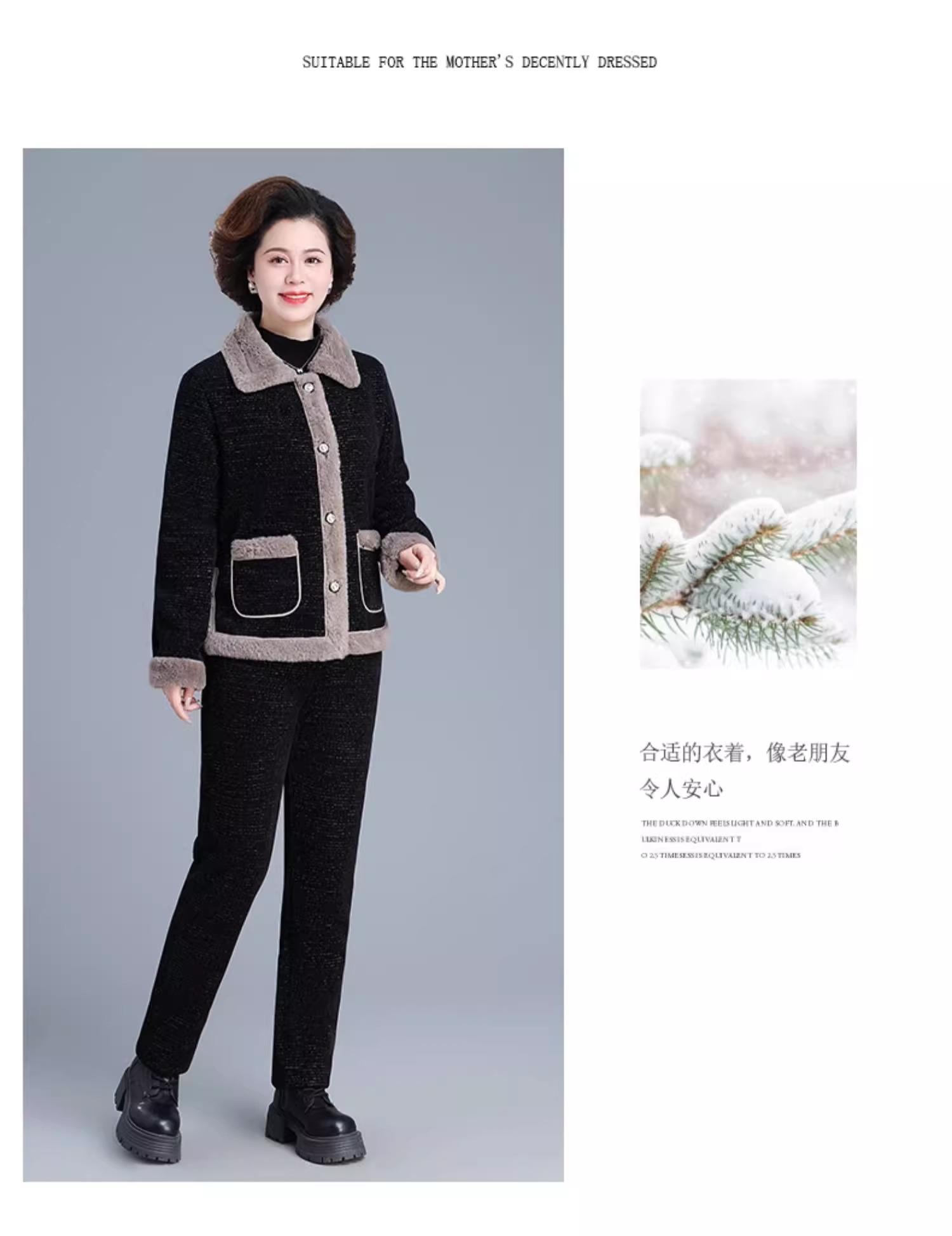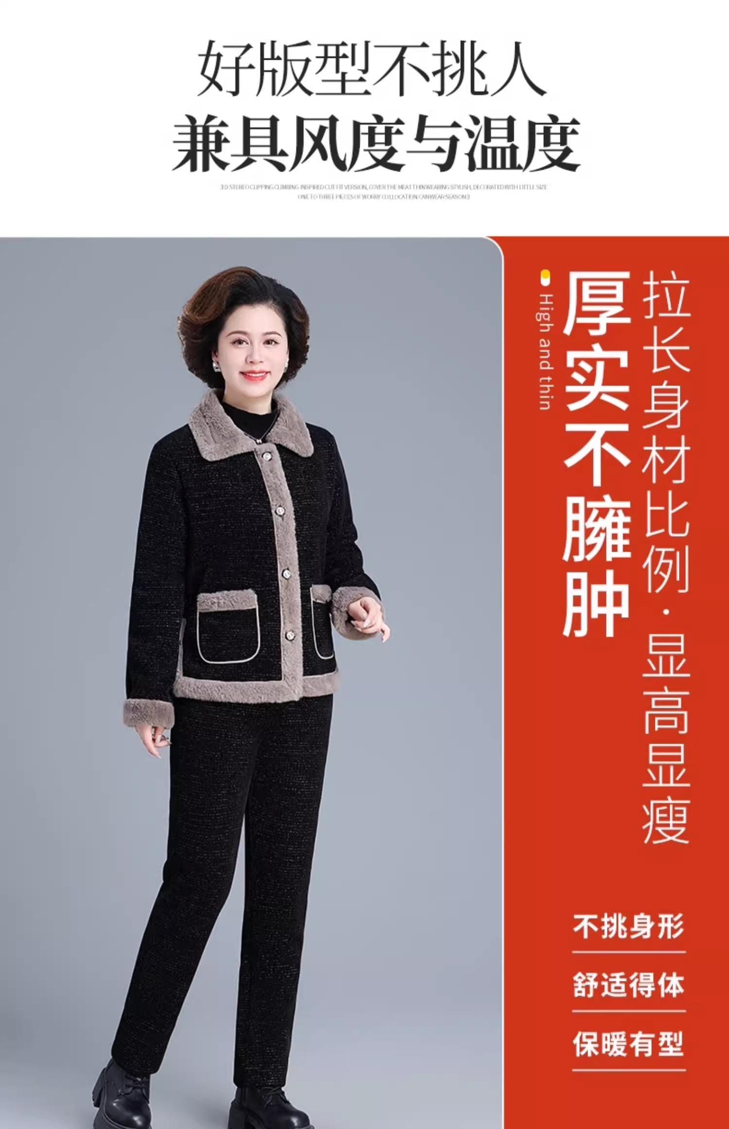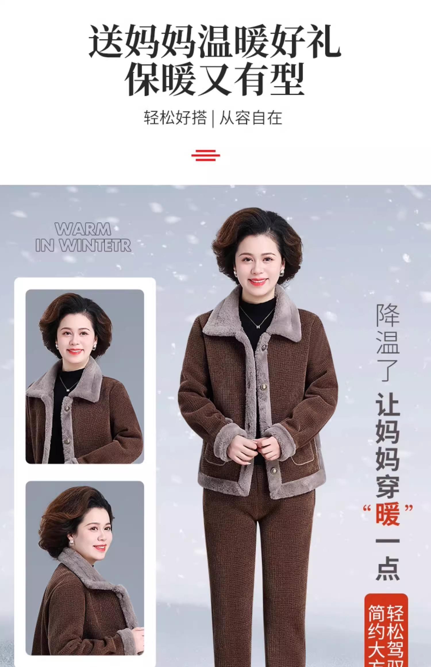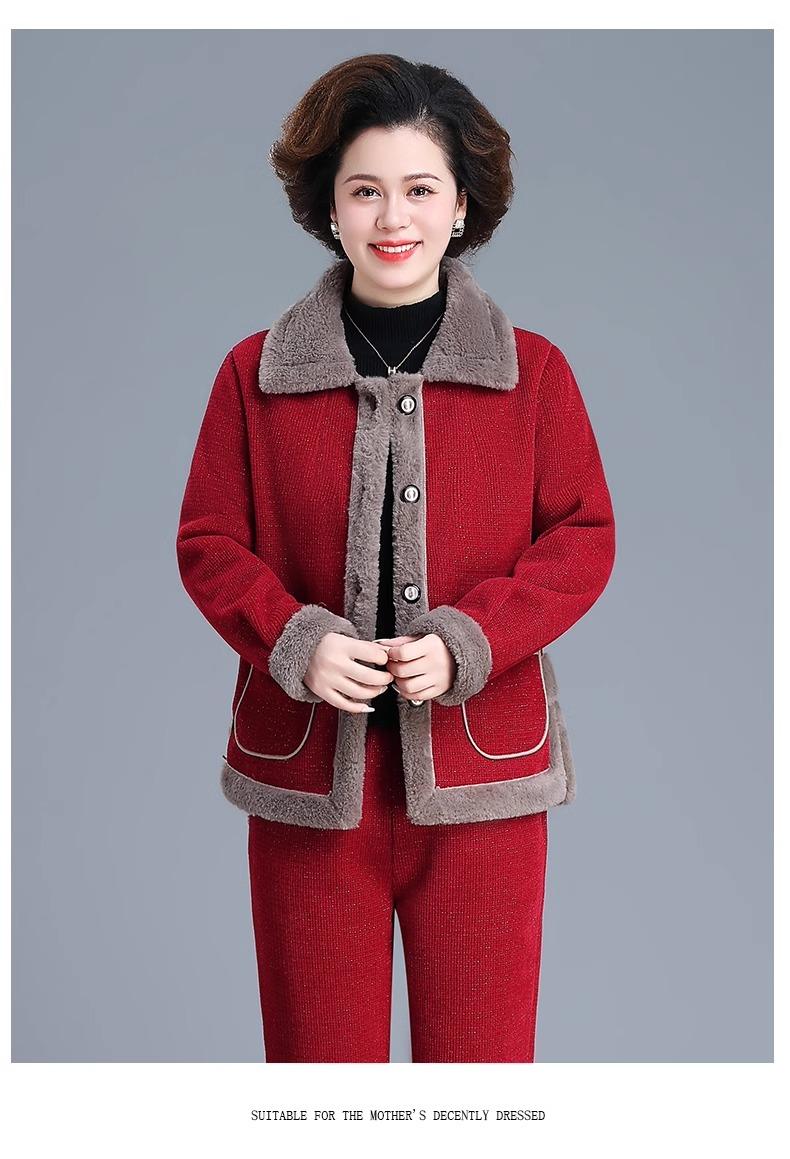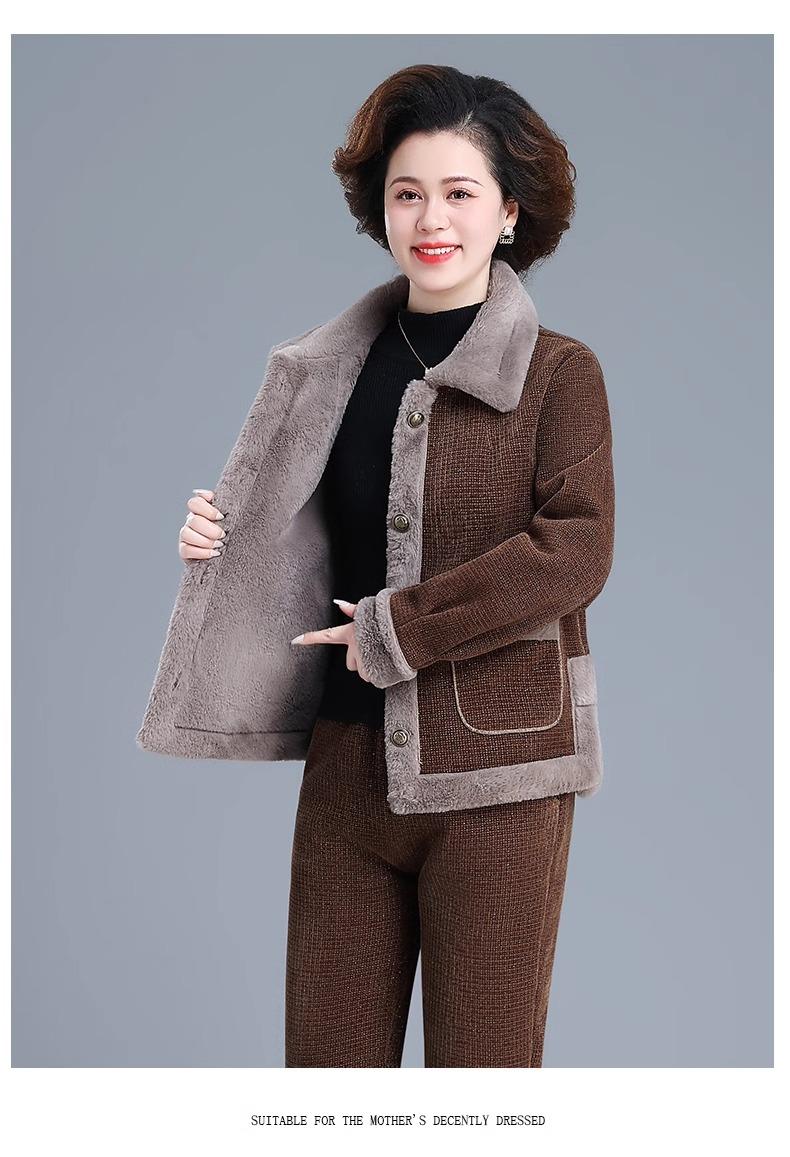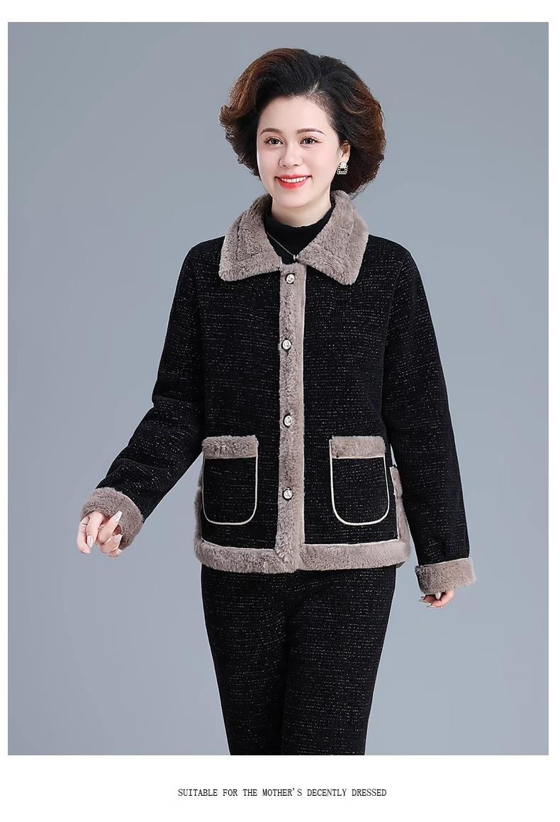 Chaqueta acolchada de algodón con forro polar de dos piezas de invierno para madres de mediana edad, para mujeres de mediana edad y mayores, chaqueta cálida acolchada de algodón de otoño e invierno