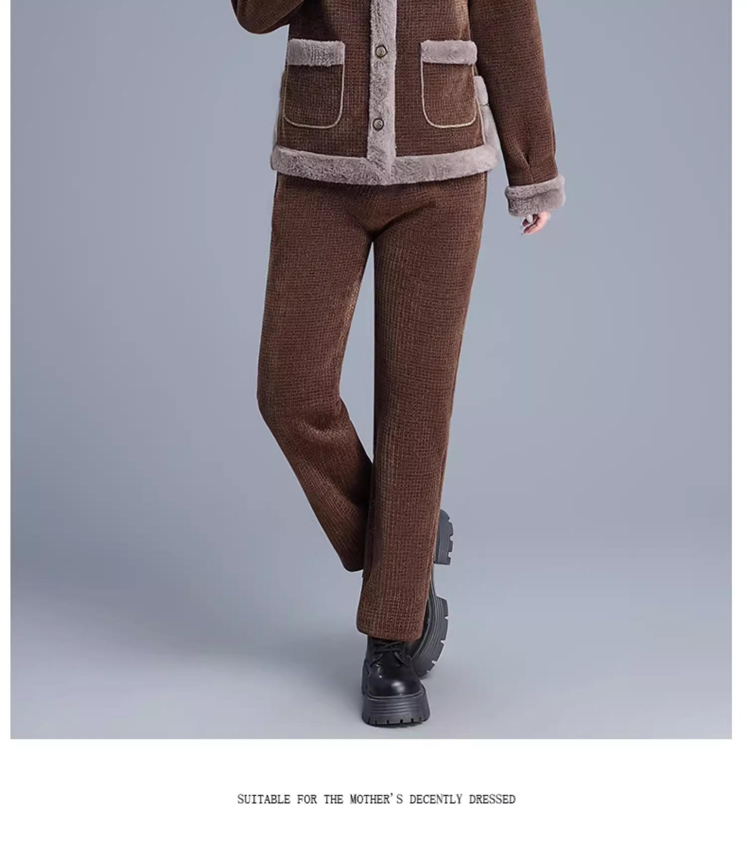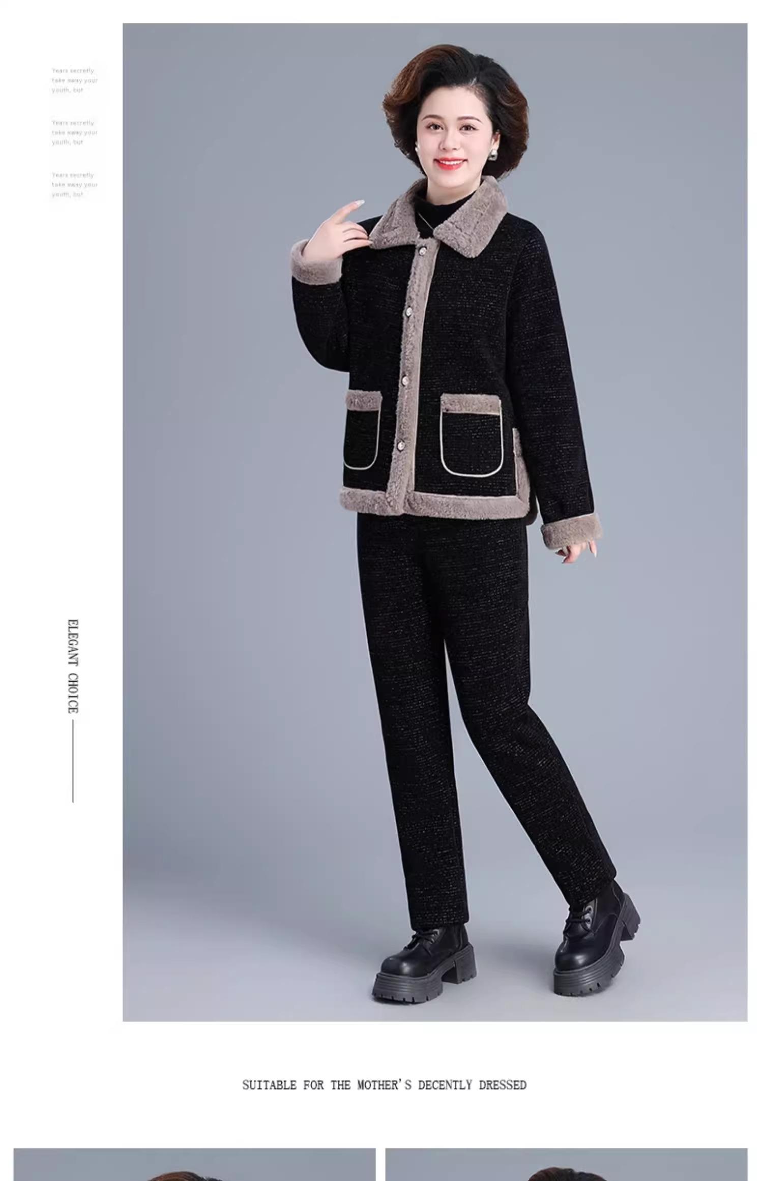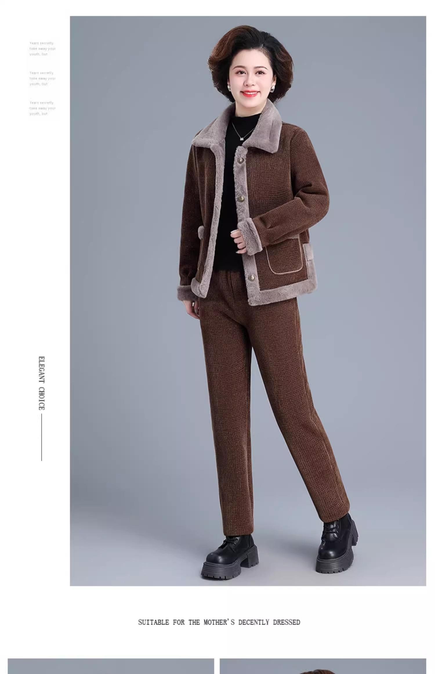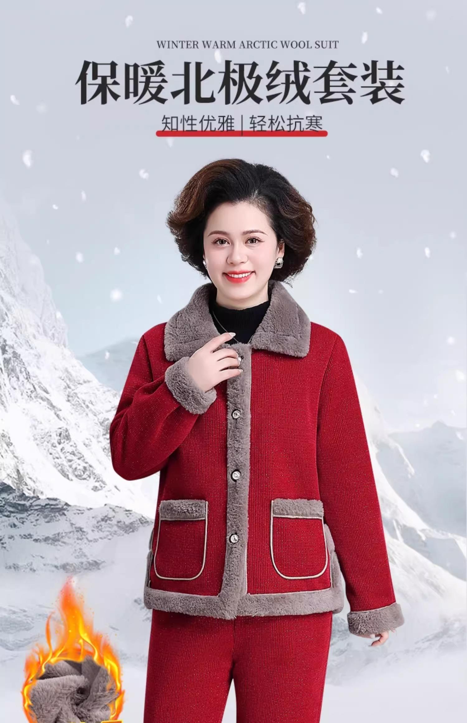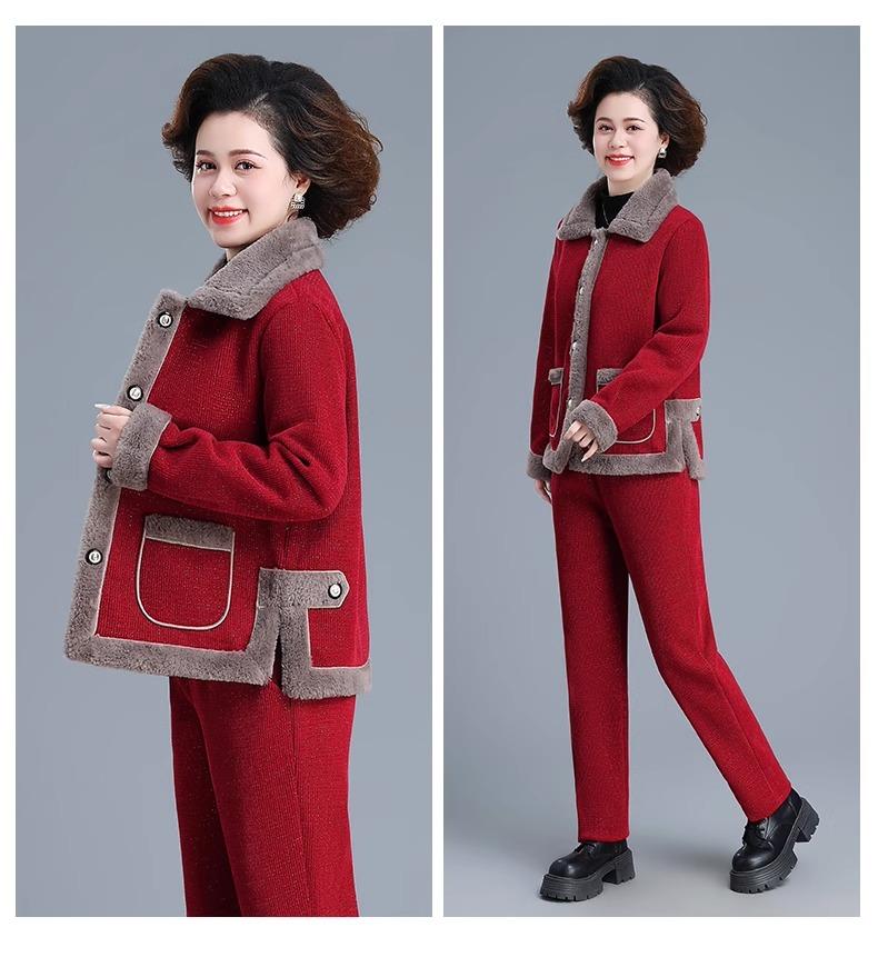 Chaqueta acolchada de algodón con forro polar de dos piezas de invierno para madres de mediana edad, para mujeres de mediana edad y mayores, chaqueta cálida acolchada de algodón de otoño e invierno