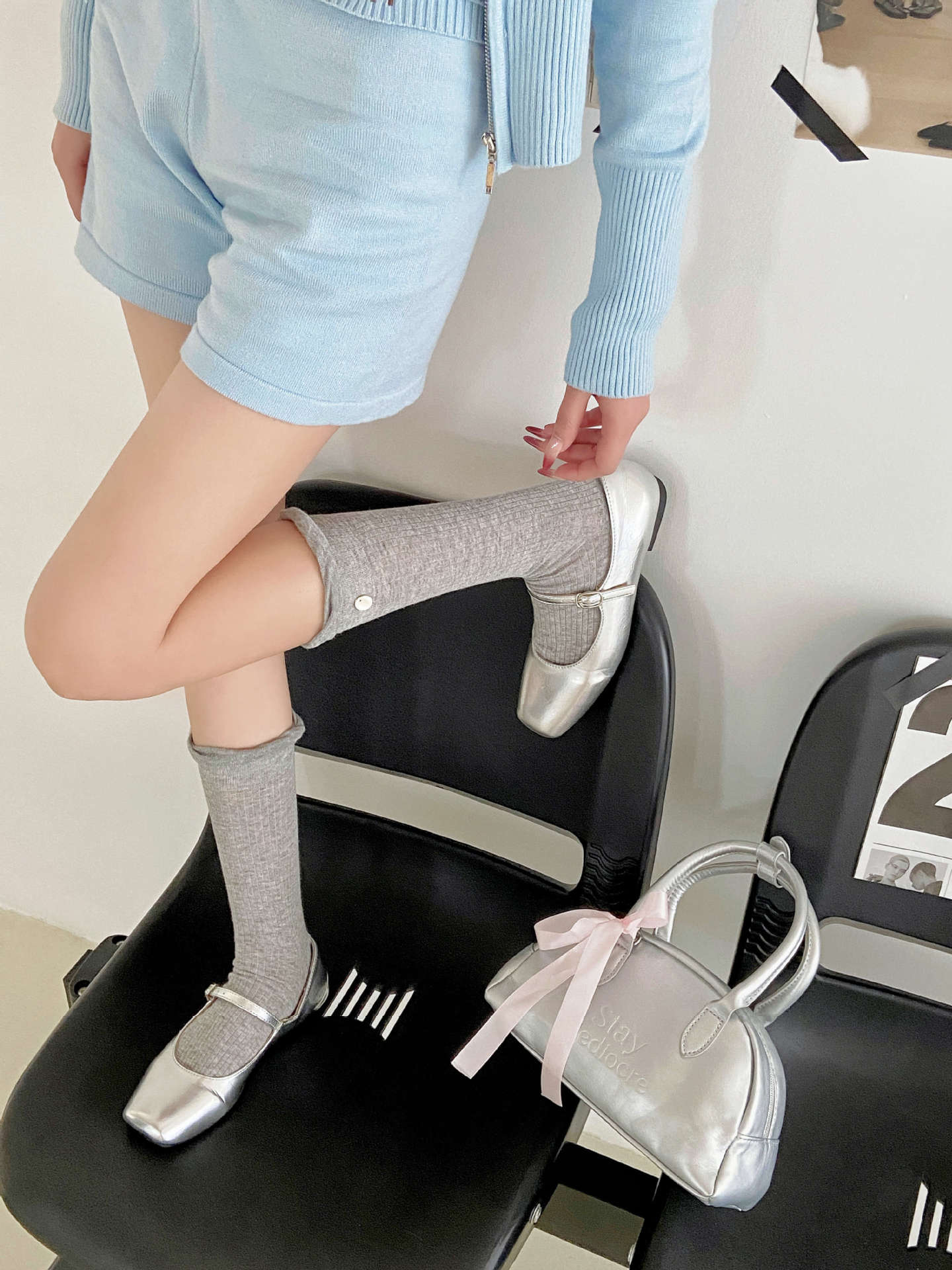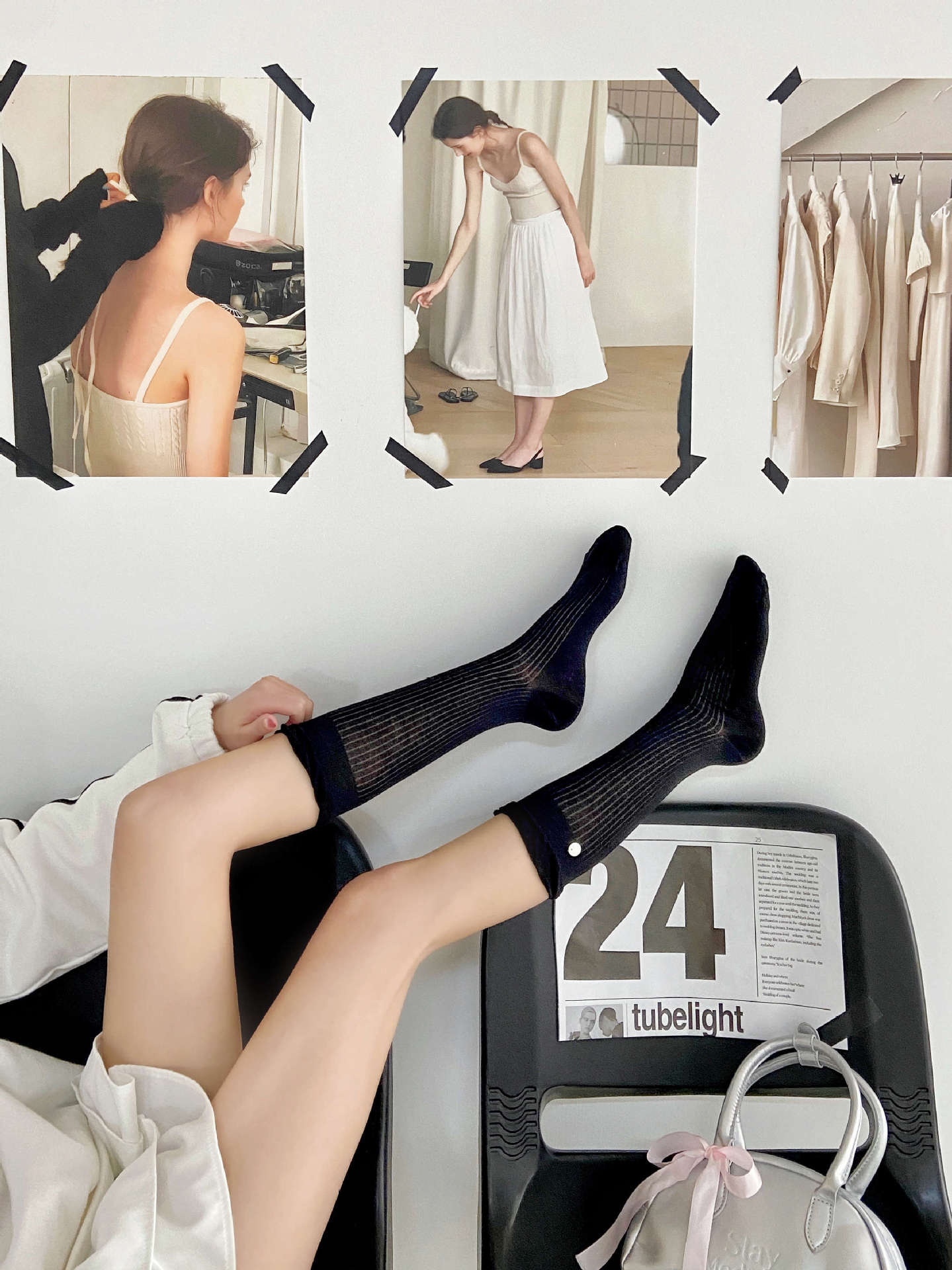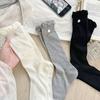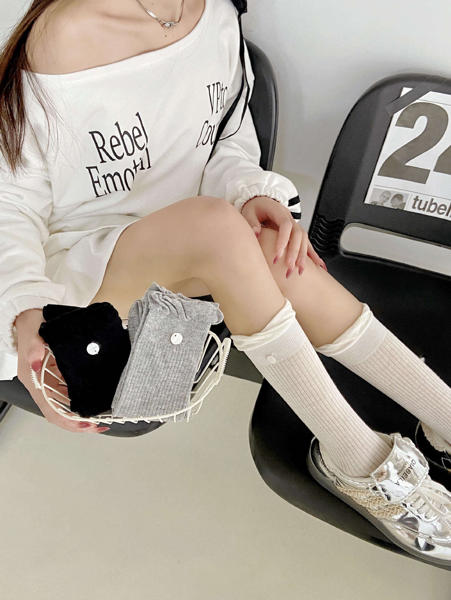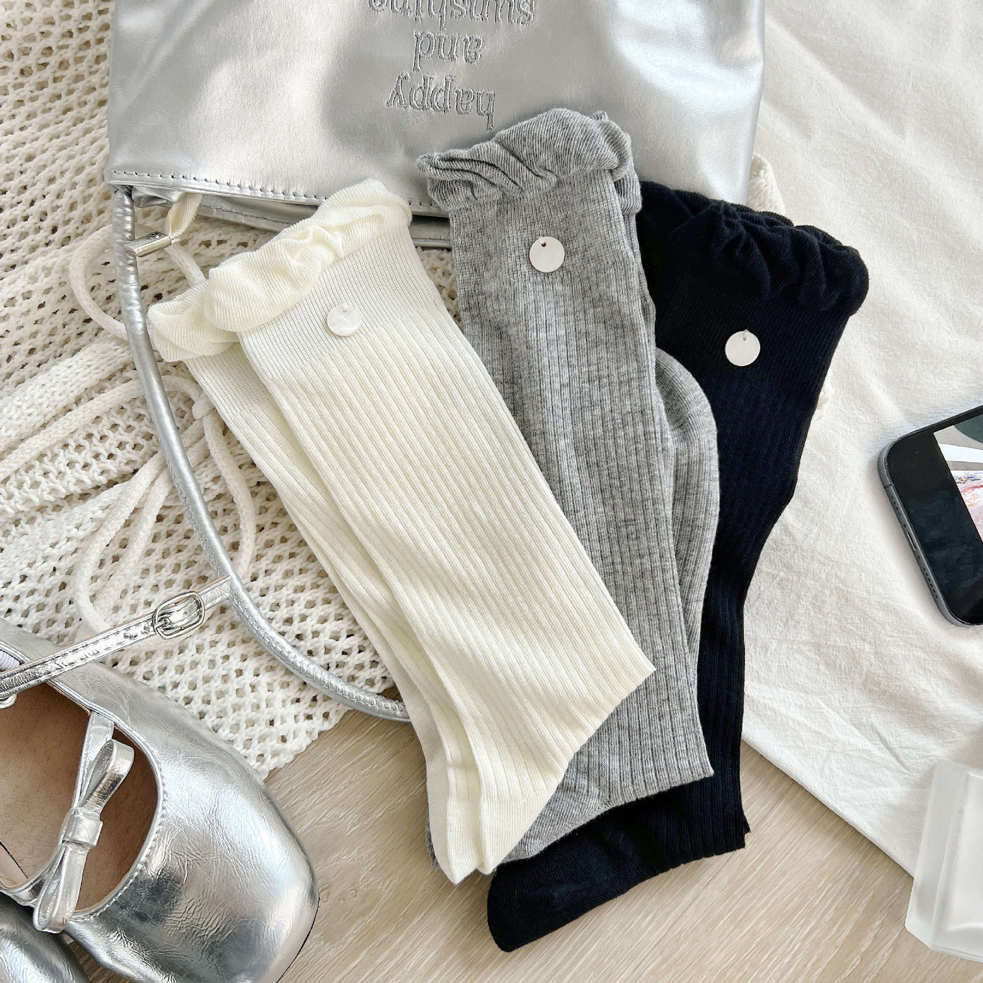Calcetines de primavera y verano, nuevos calcetines blancos con botones de concha, calcetines decorativos de color liso para mujer, calcetines de algodón estilo academia, calcetines de tubo medio para niña.