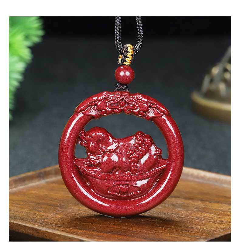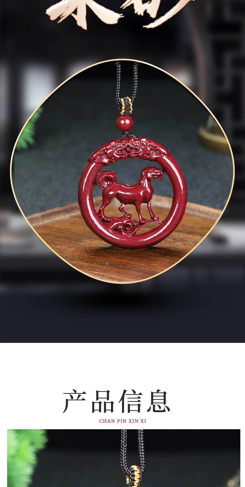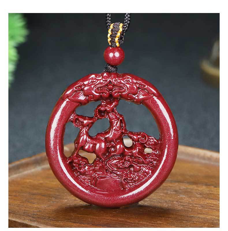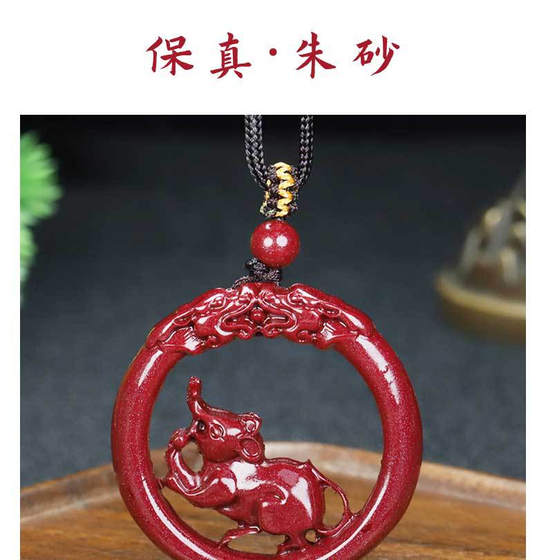Colgante de cinabrio natural de alto contenido en oro púrpura y arena del zodiaco, collar para hombre y mujer, cadena de lana Benmingnian