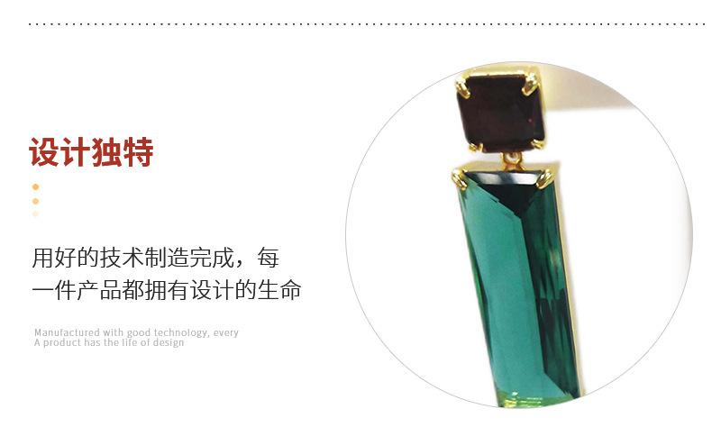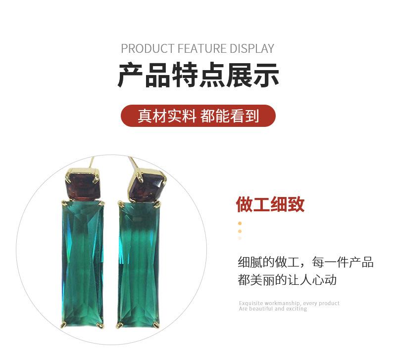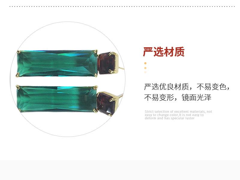 Joyería Transfronteriza de Amazon Personalizada por el Fabricante Púrpura Verde Transparente Vidrio K9 Cobre con Incrustaciones de Vidrio Joyería Aretes