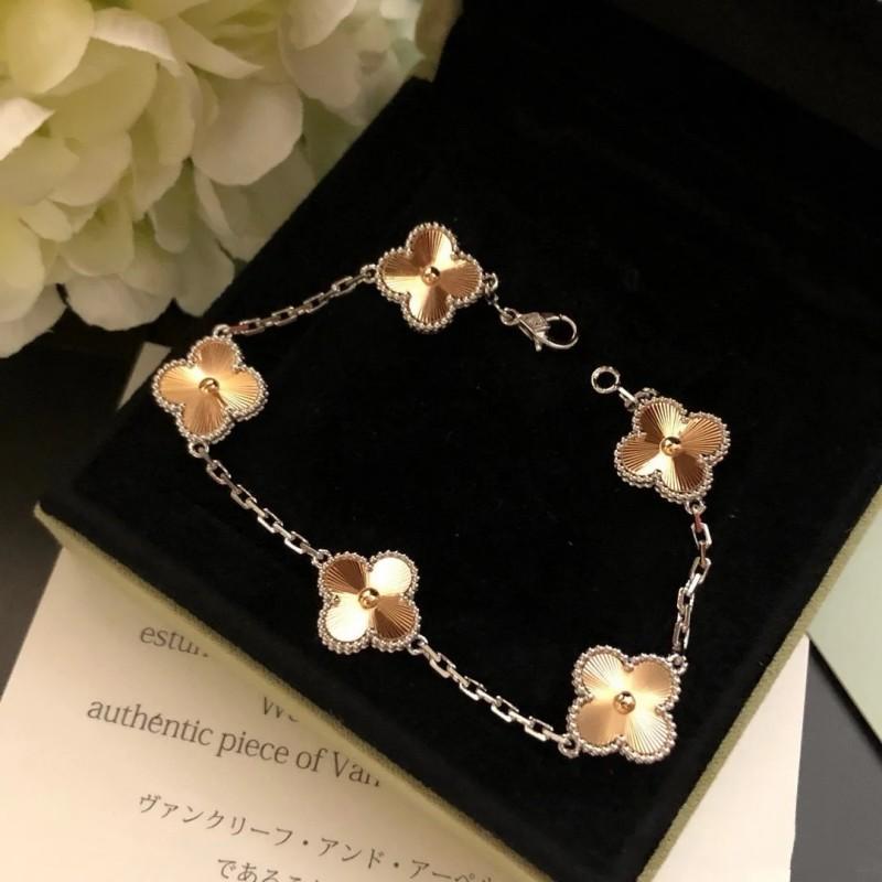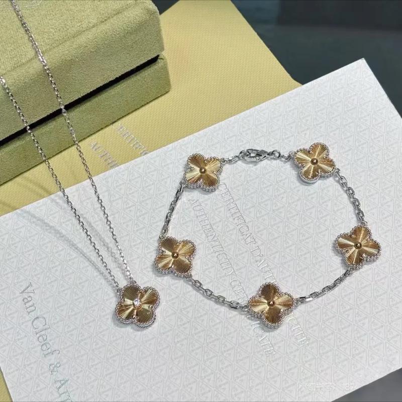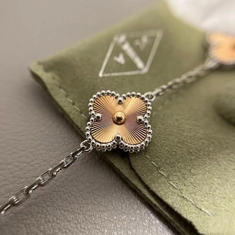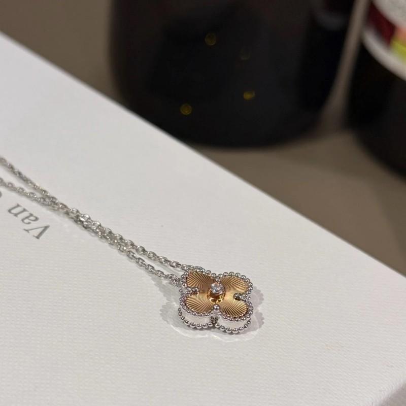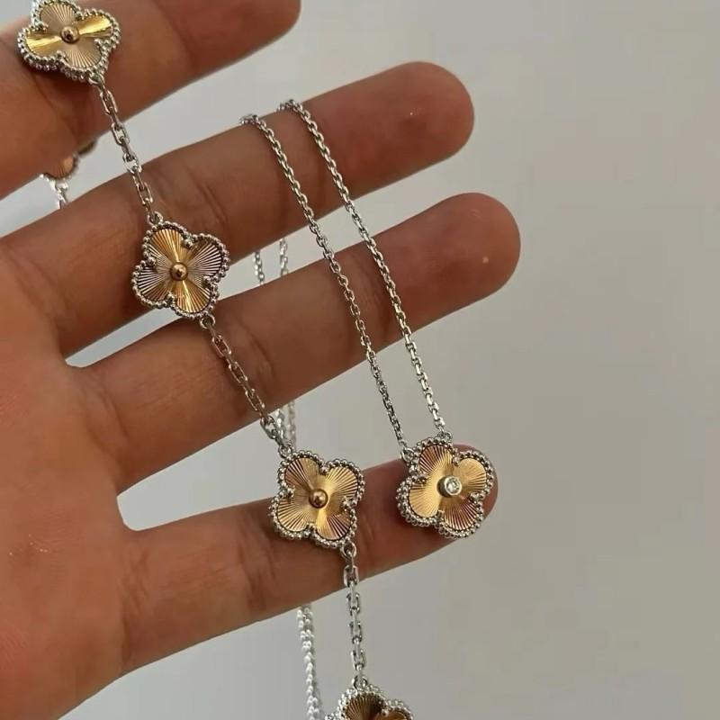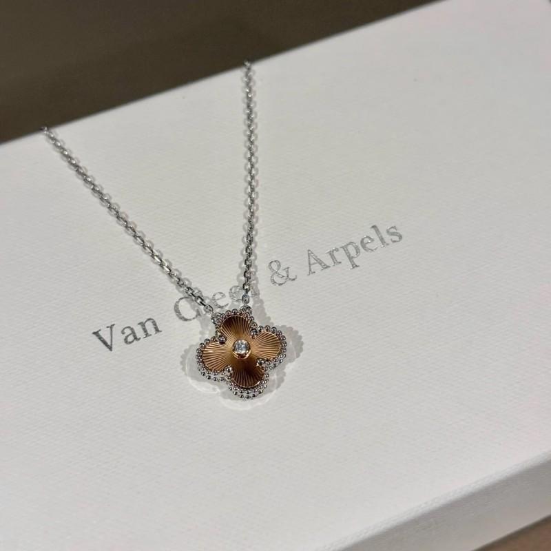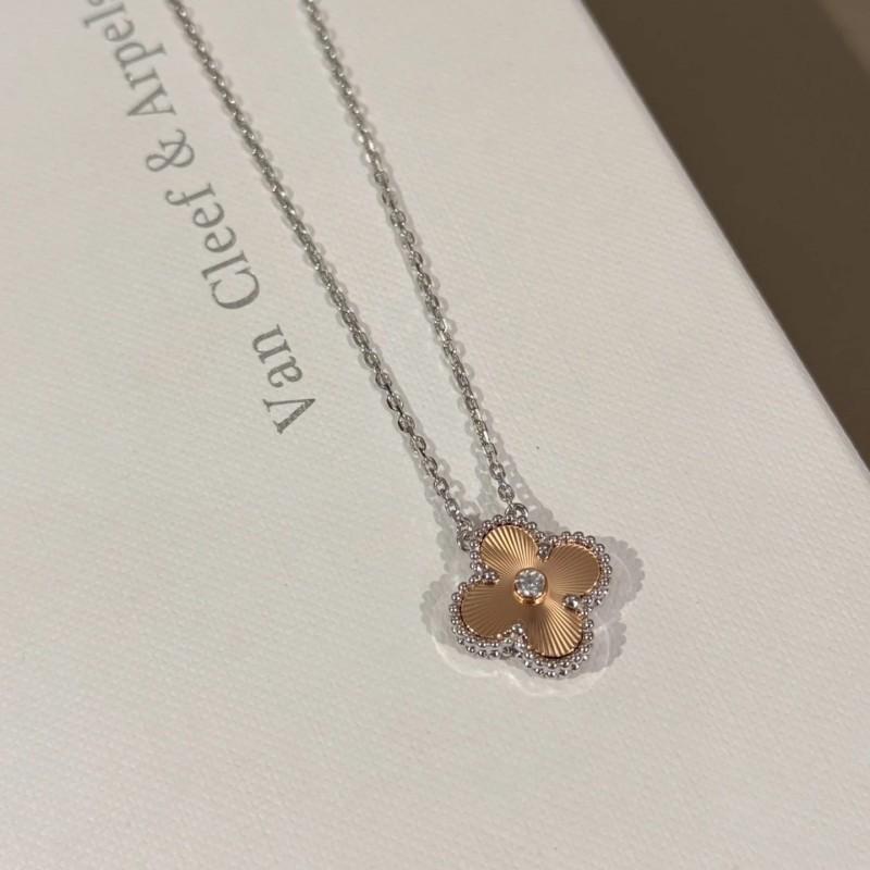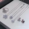 Collar de trébol láser navideño de edición limitada para mujer, chapado en oro rosa en V, sánscrito, para el hogar, 2024, nueva cadena de clavícula con una sola flor.