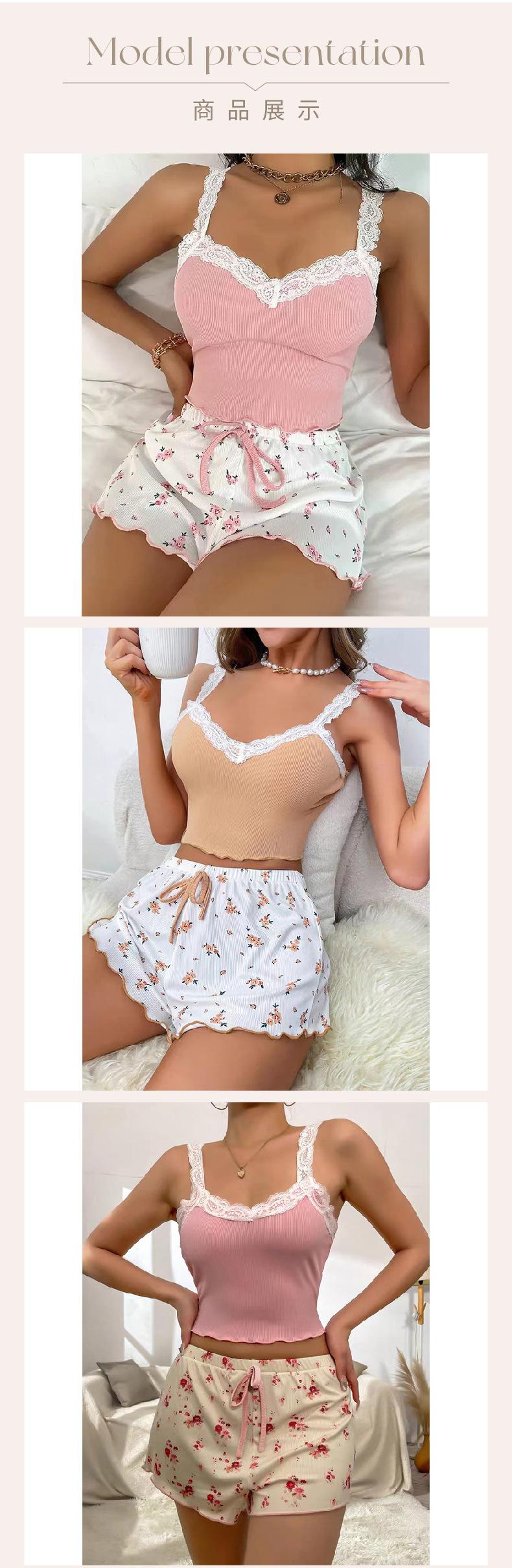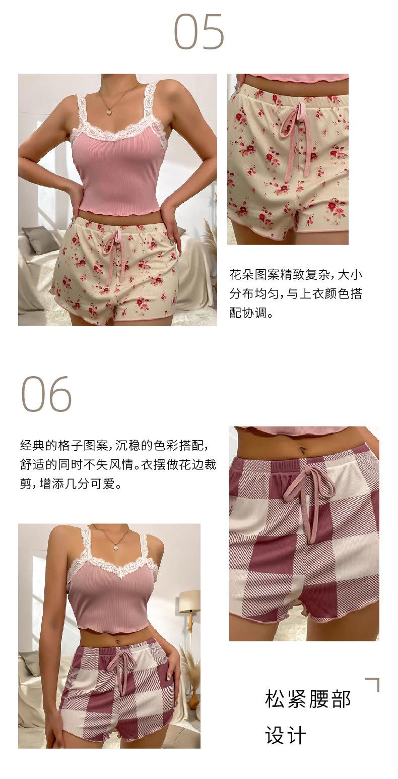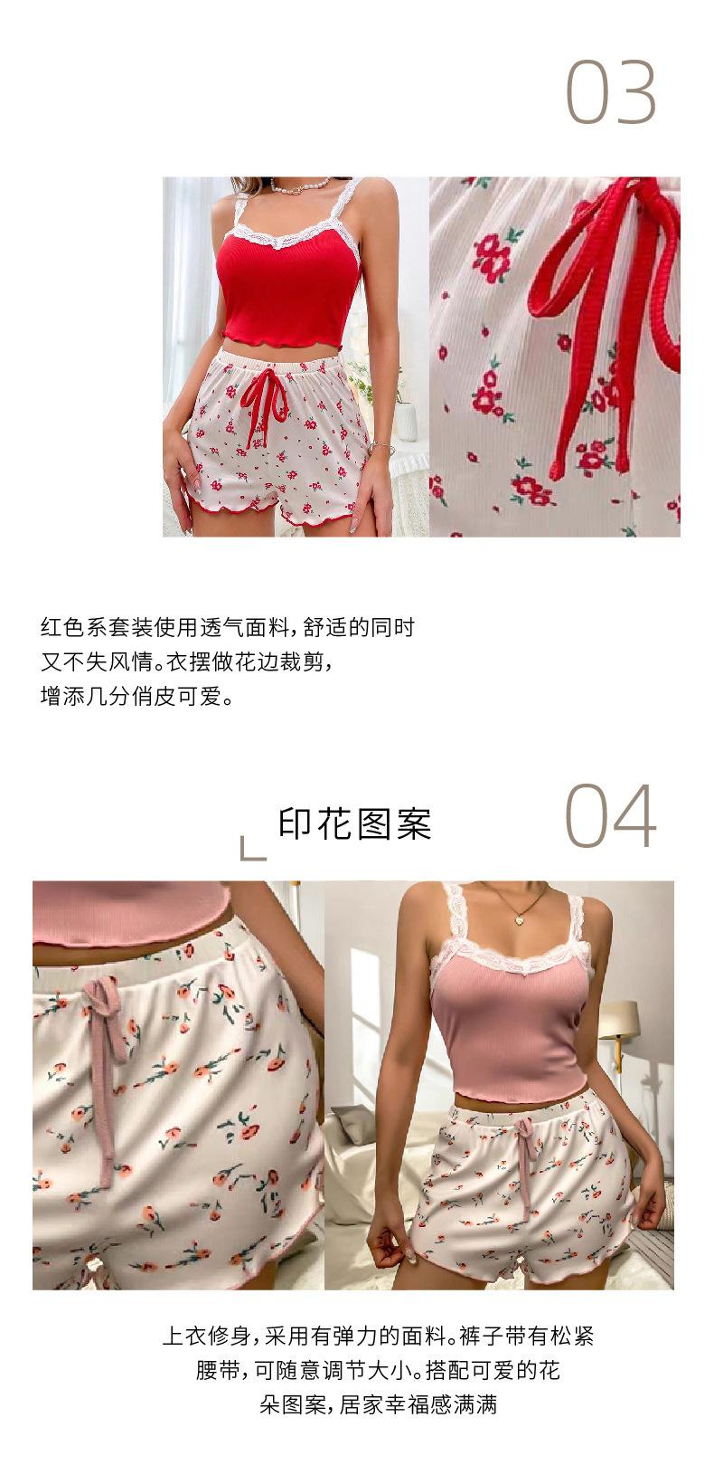 Pijamas de mujer para el hogar, ropa de casa transfronteriza europea y americana, pantalones cortos con tirantes de encaje, cómodos y elásticos, ropa informal para el hogar