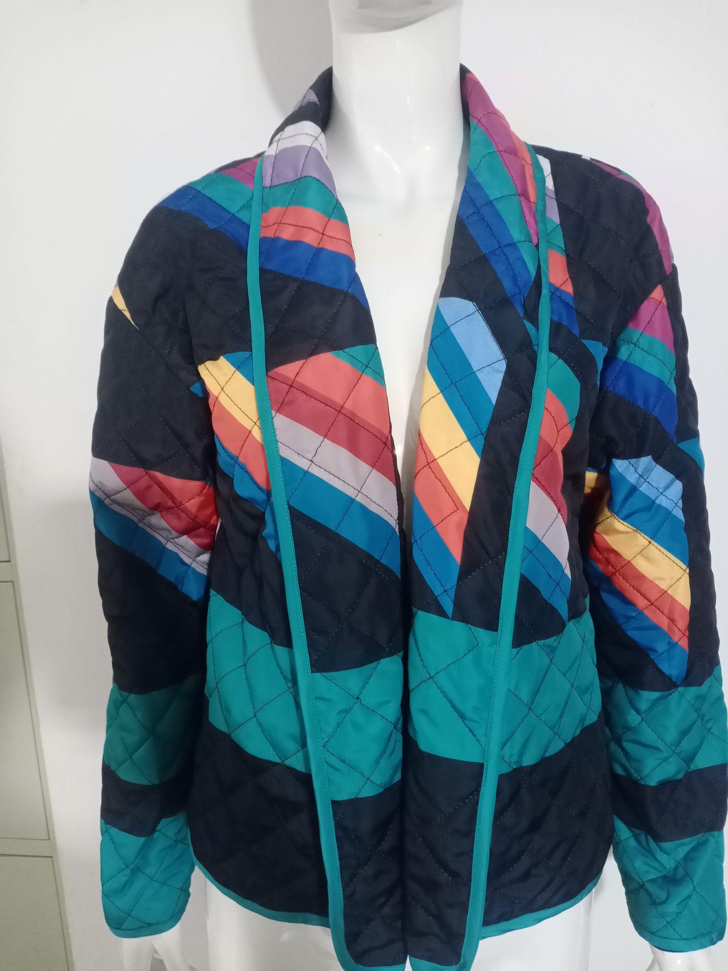 Ropa de mujer transfronteriza 2024 otoño e invierno nuevo moda callejera europea y americana estampado talla grande holgado costuras chamarra abrigo acolchado de algodón