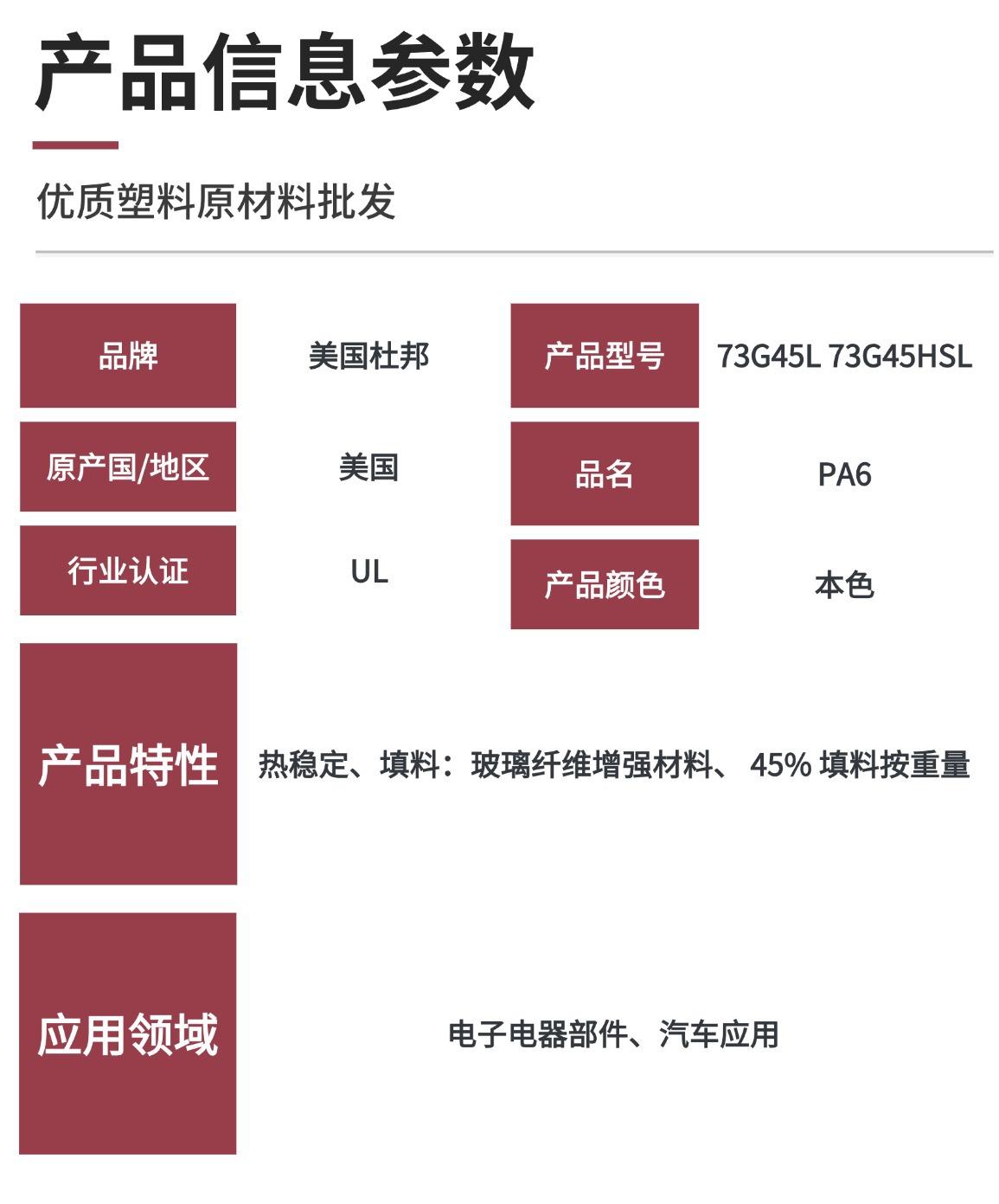 PA6 American DuPont 73G45L 73G45HSL reforzado con fibra de vidrio 45% estable al calor resistente a altas temperaturas piezas de automóvil
