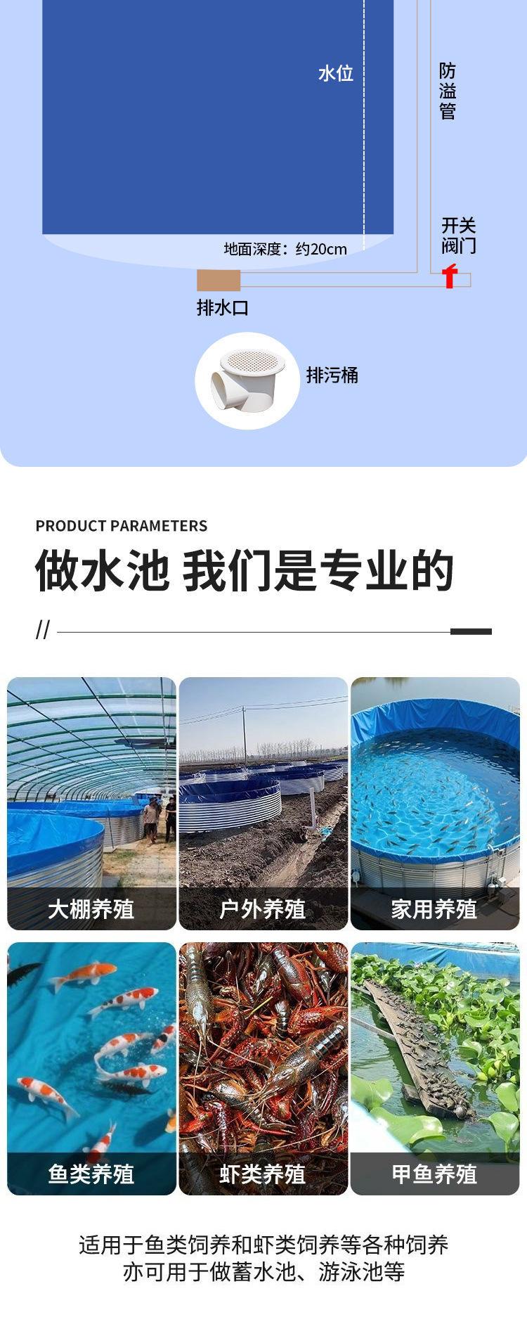 Estanque de peces de lona galvanizada de gran tamaño para acuicultura al aire libre de alta densidad, depósito de placa de hierro ensamblada redonda y espesada.