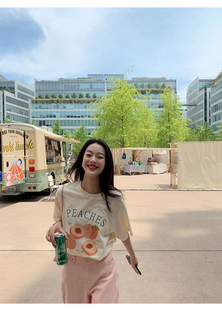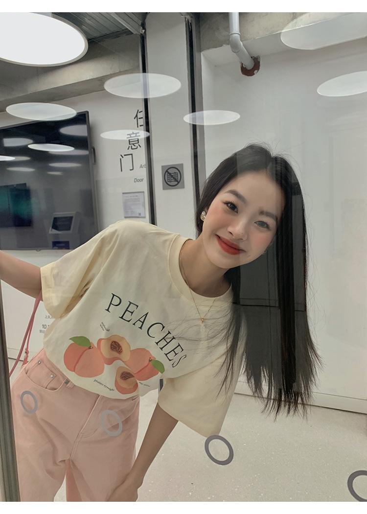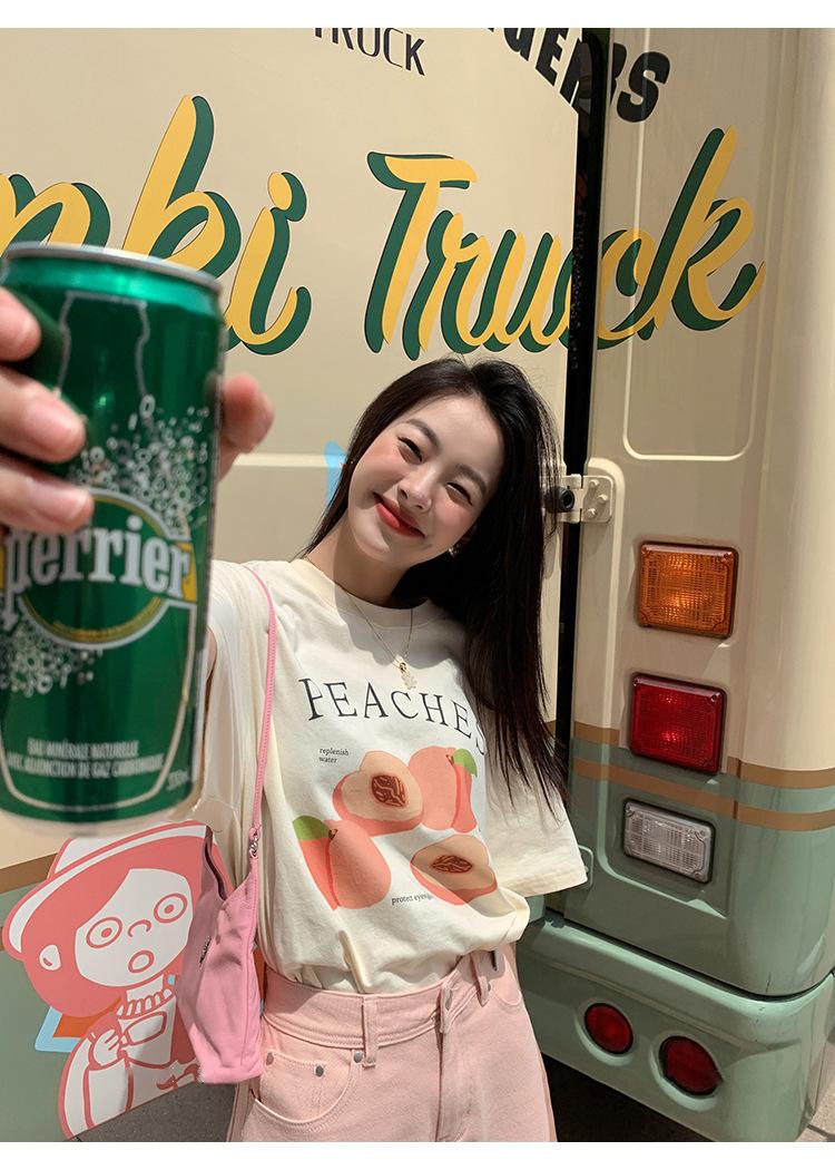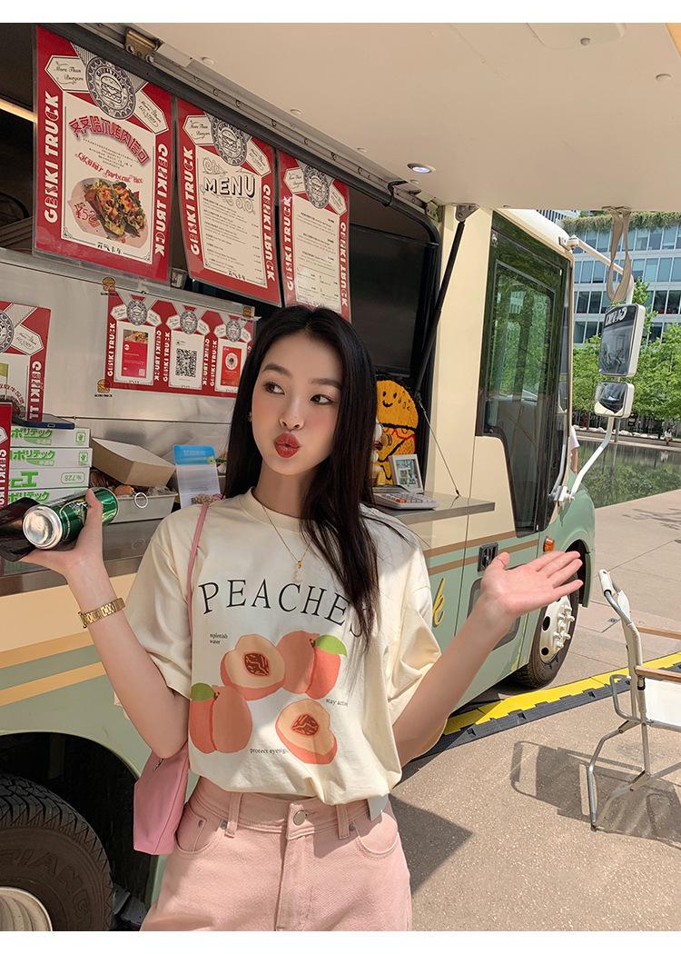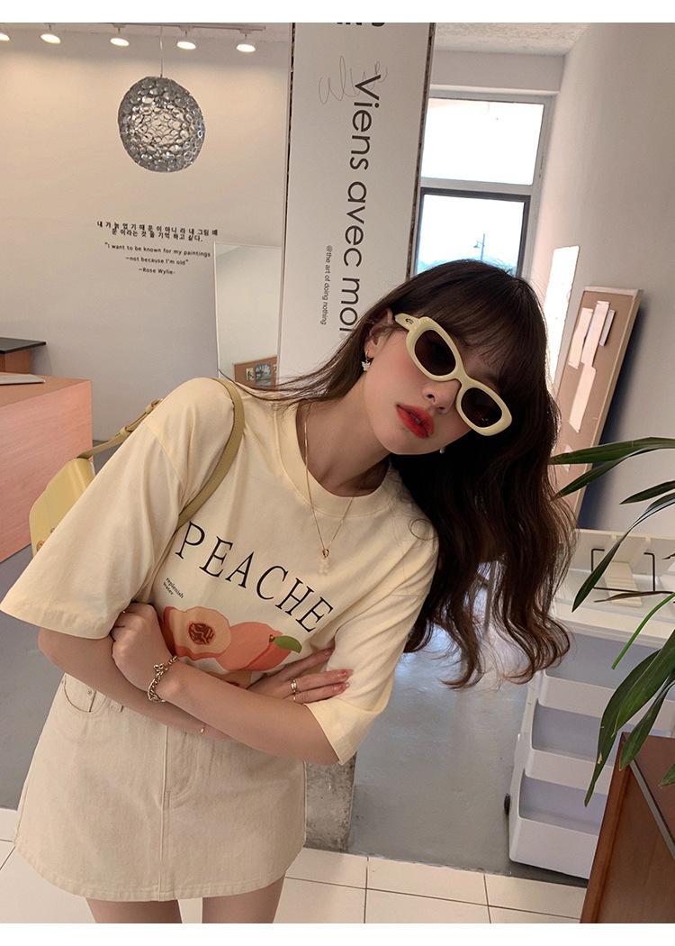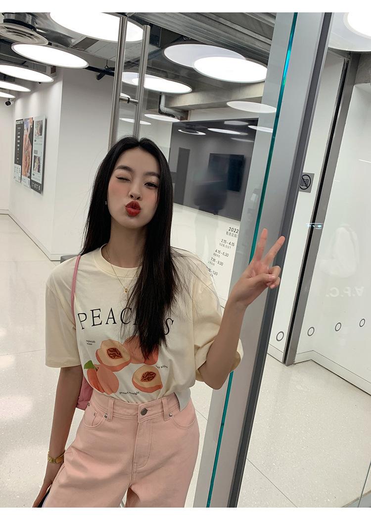 Camiseta de manga corta con letras sueltas y estampado estilo coreano para mujer, diseño de verano 2025, top informal de media manga con sentido de la moda