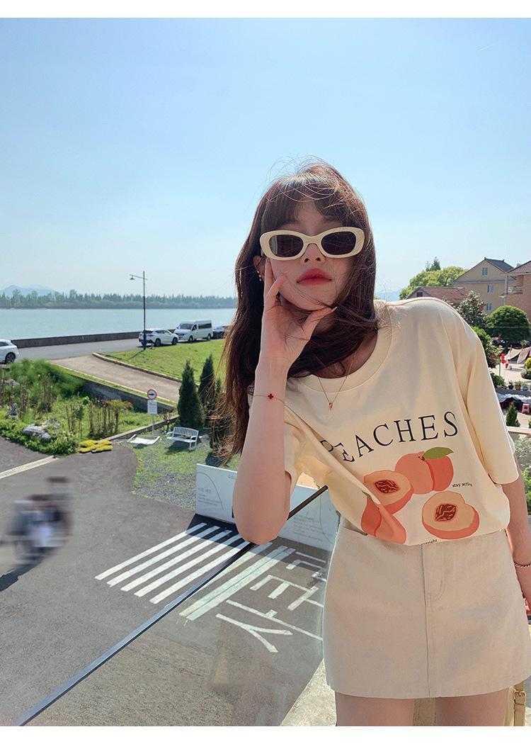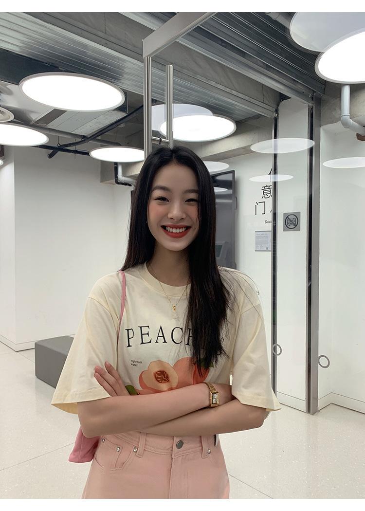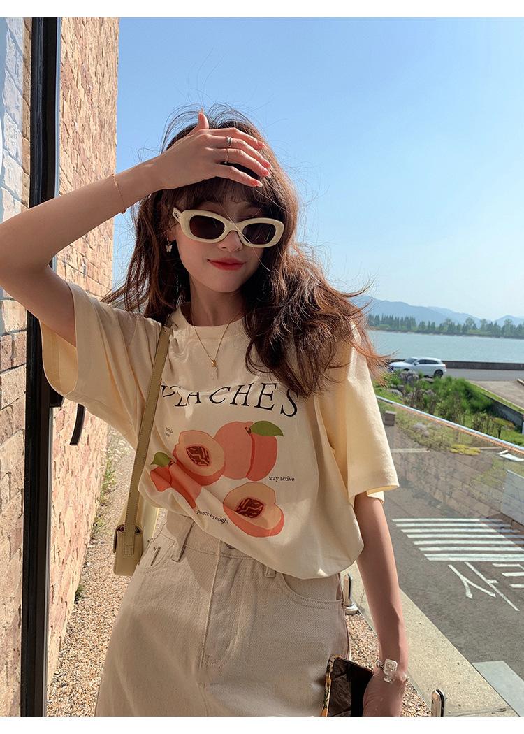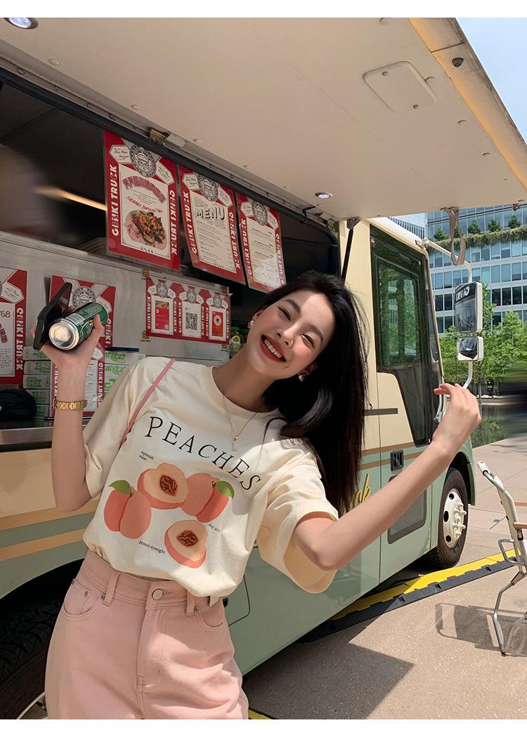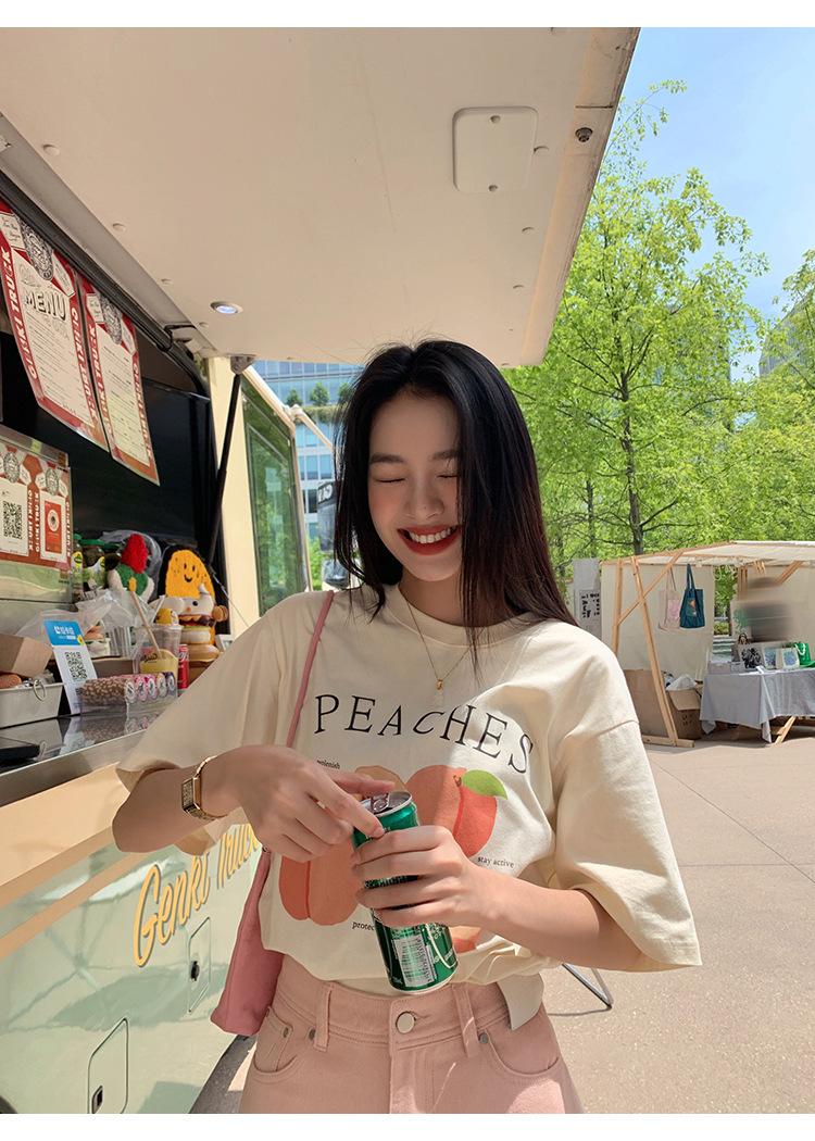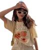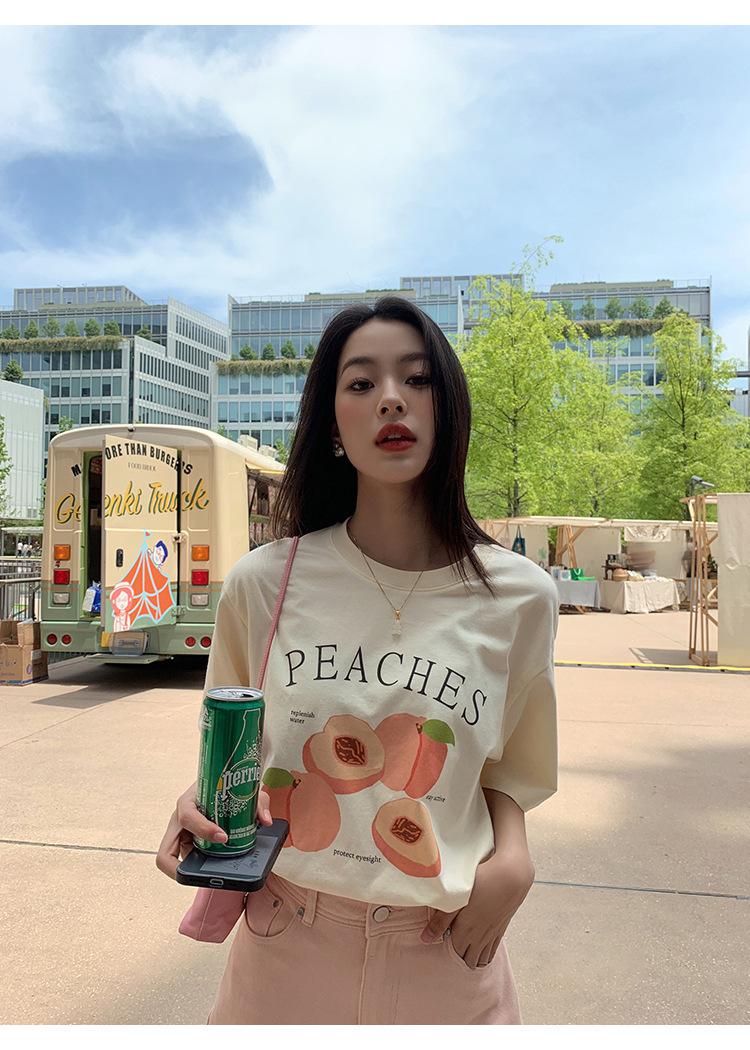 Camiseta de manga corta con letras sueltas y estampado estilo coreano para mujer, diseño de verano 2025, top informal de media manga con sentido de la moda