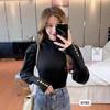 Suéter de Punto con Mangas Abullonadas Nuevo Estilo Otoño 2026 para Mujer, Versión Coreana Ajustado, Elegante Top Básico de Cuello Medio, Tendencia
